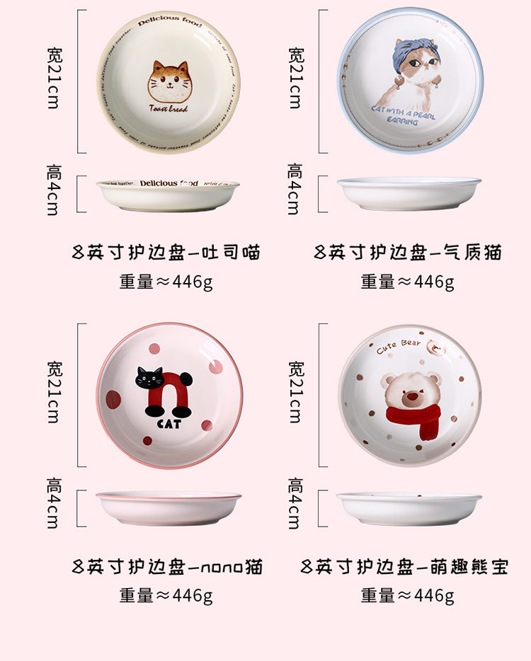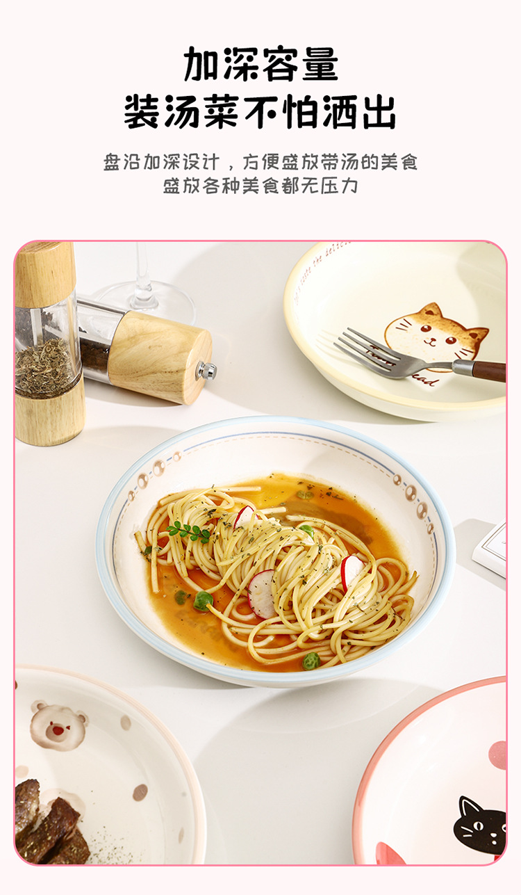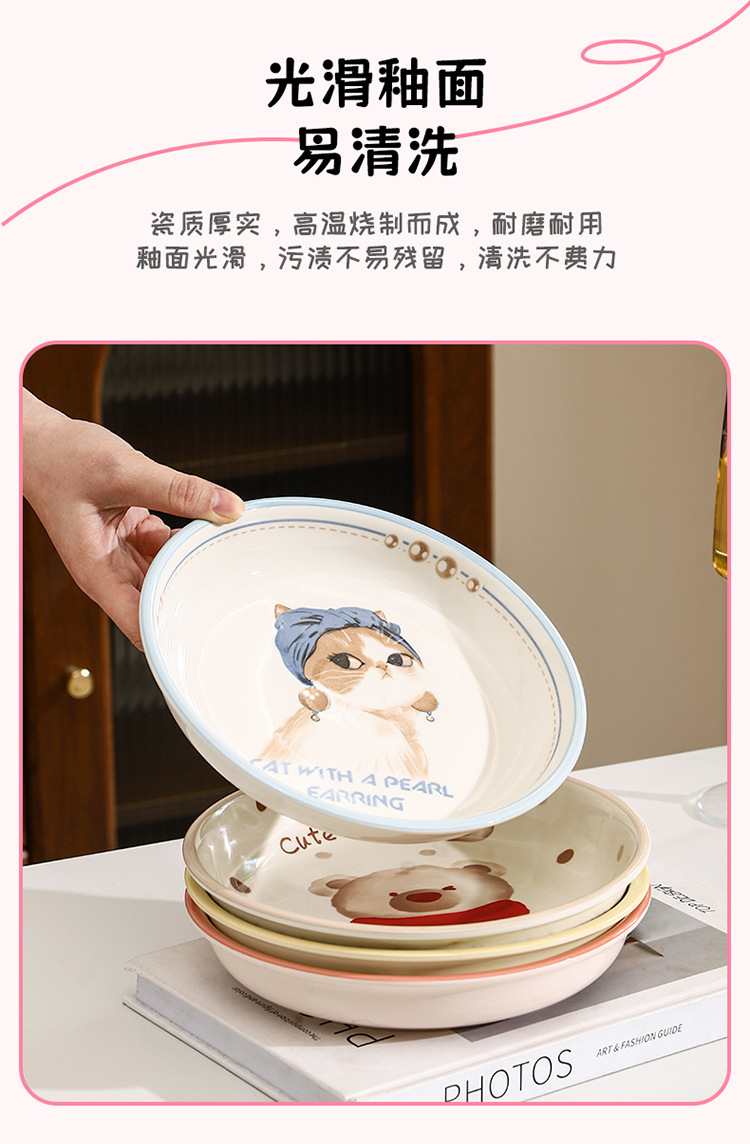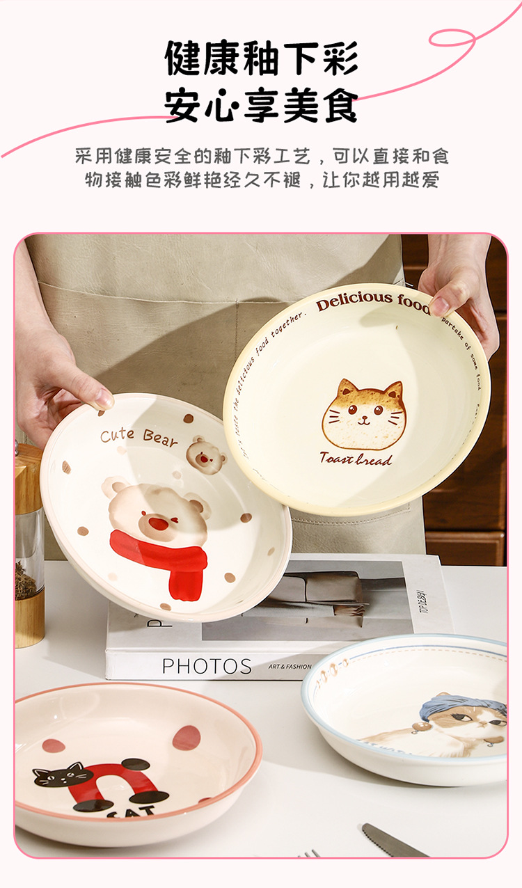 새로운 세라믹 식기 언더 유약 컬러 가정용 세라믹 플레이트 8 인치 디스크 접시 깊은 접시 창조적 인 만화 귀여운 재미