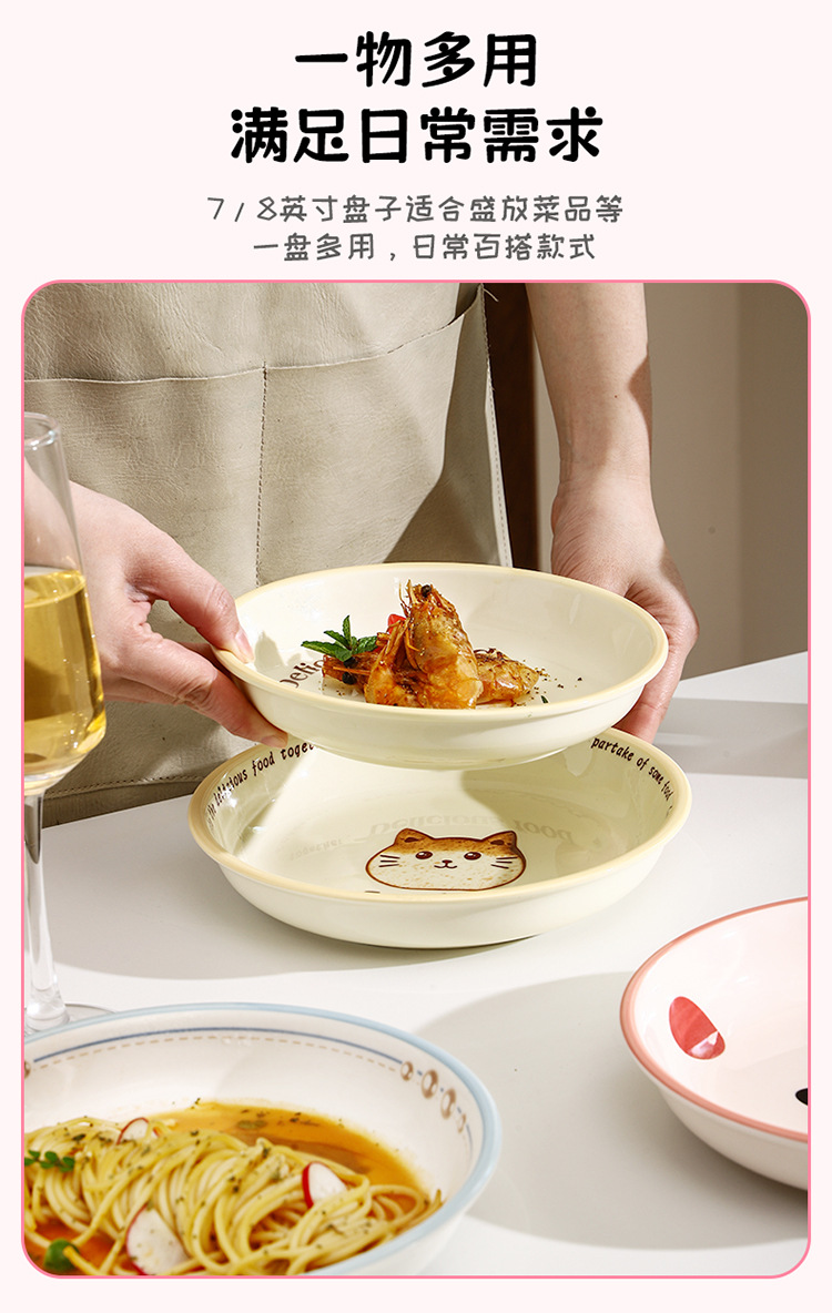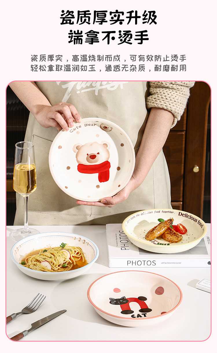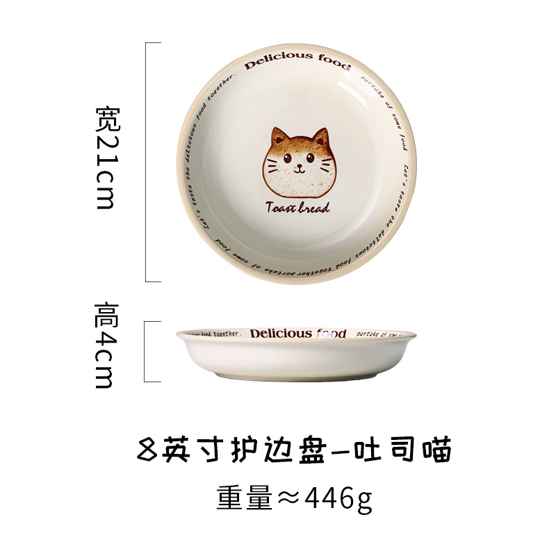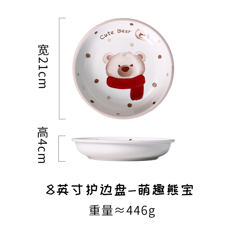 새로운 세라믹 식기 언더 유약 컬러 가정용 세라믹 플레이트 8 인치 디스크 접시 깊은 접시 창조적 인 만화 귀여운 재미