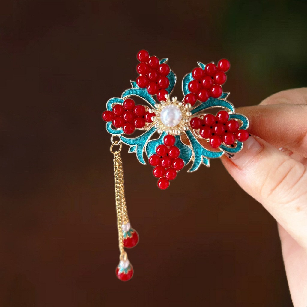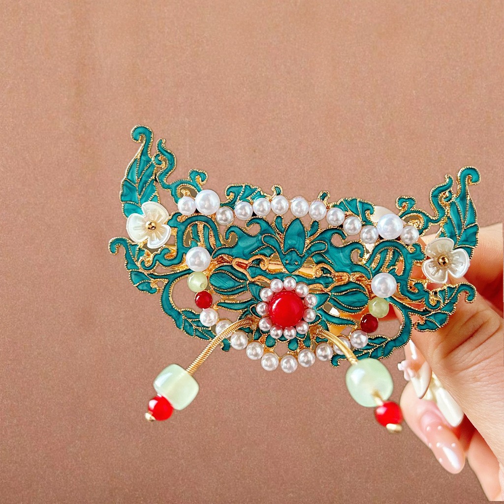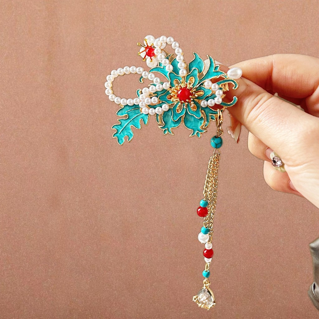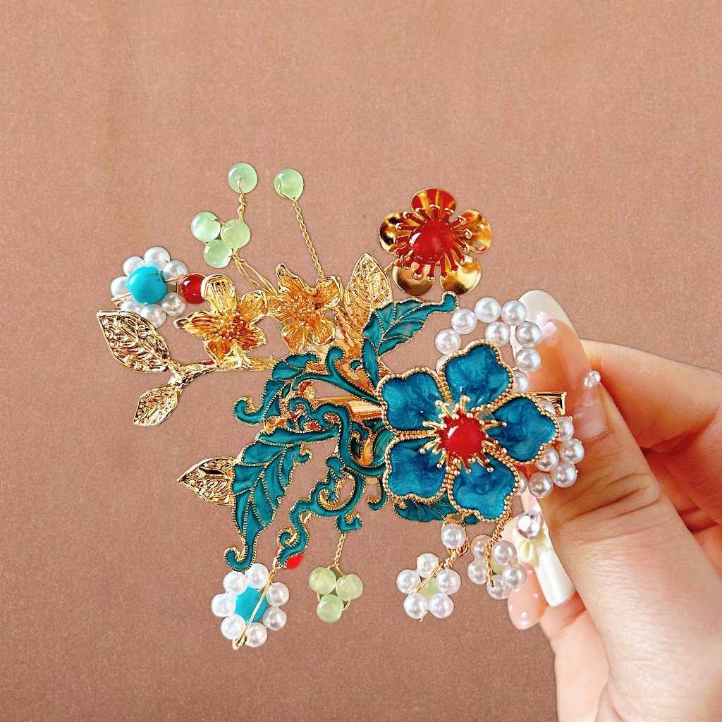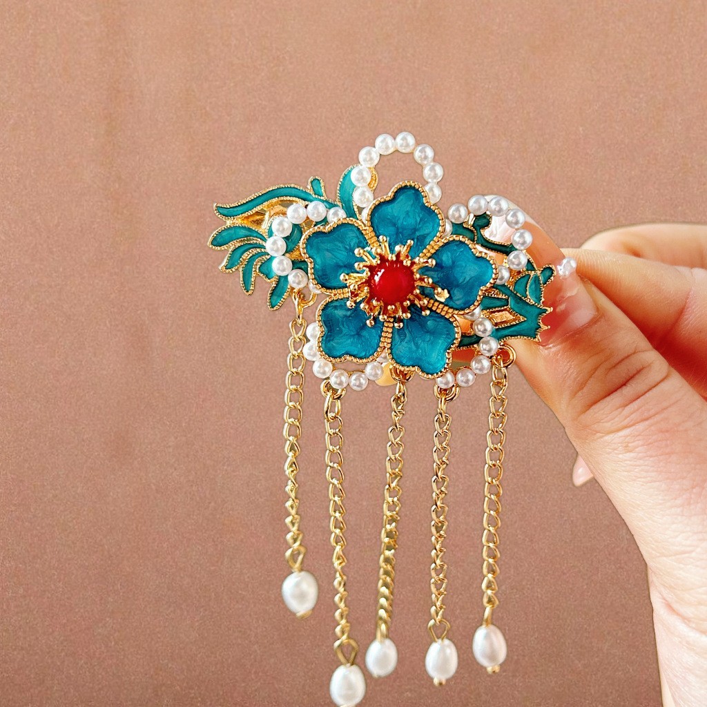 골동품 스타일 불타는 푸른 구름 진주 머리핀 새로운 중국 술 사이드 클립 고급 센스 클립 헤어 액세서리 헤드웨어 헤어 클립스토어 가기