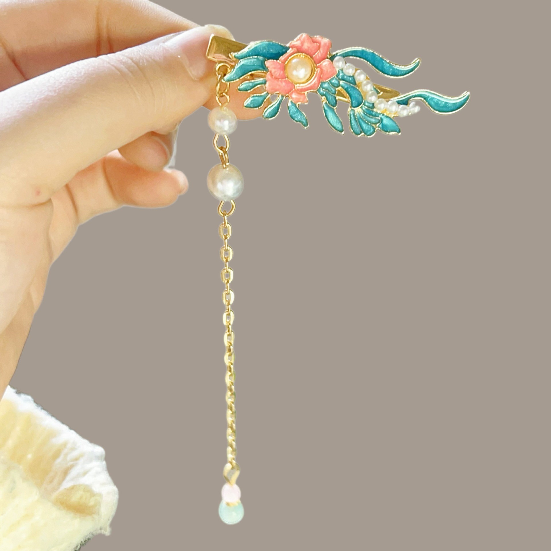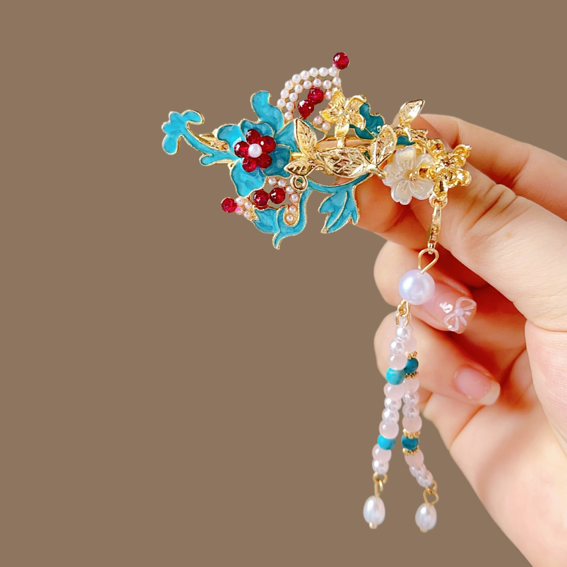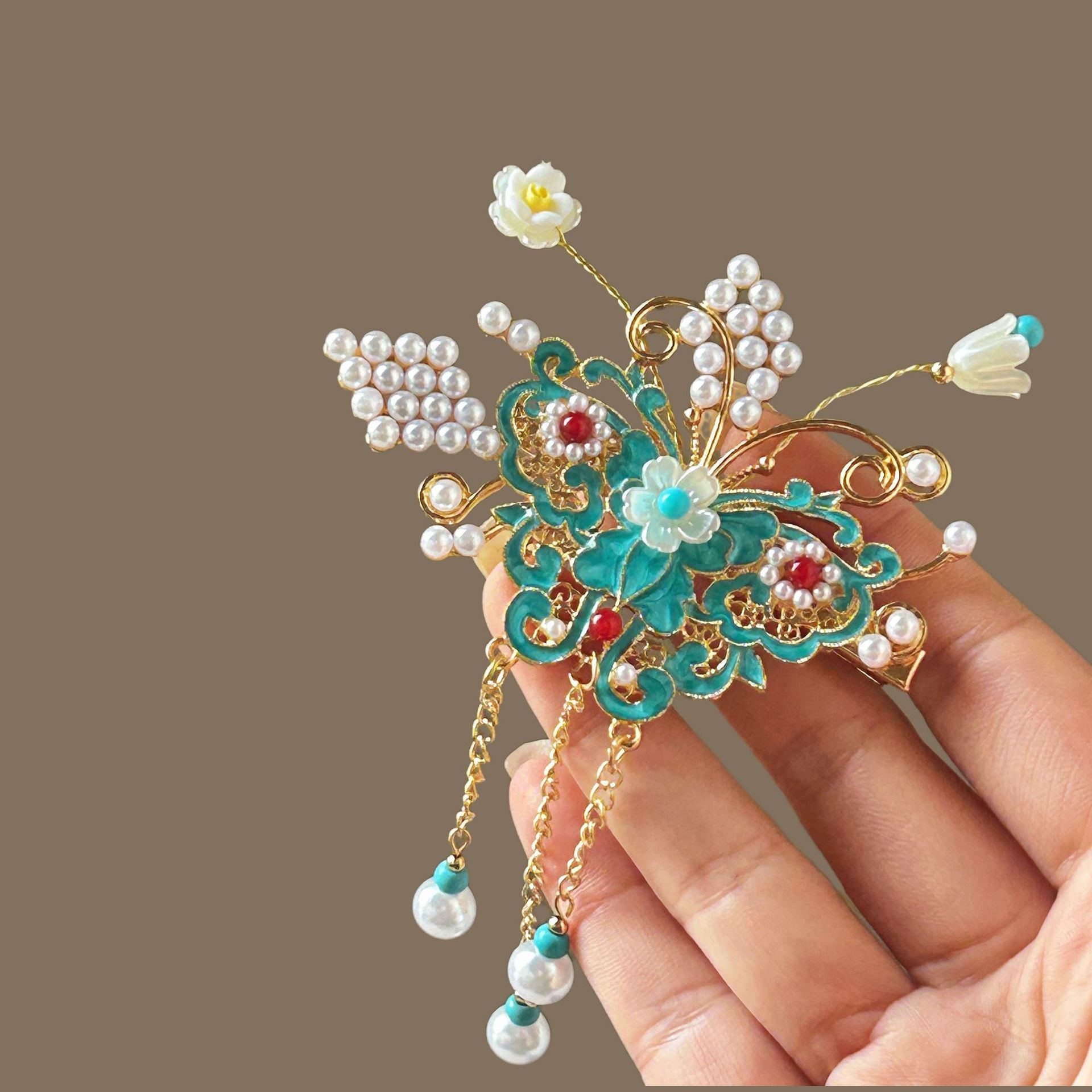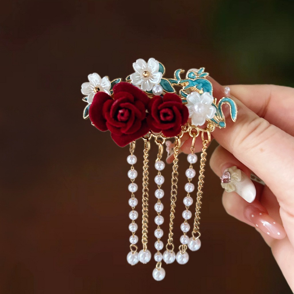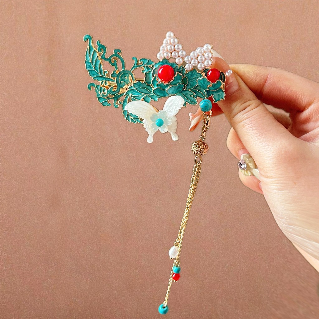 골동품 스타일 불타는 푸른 구름 진주 머리핀 새로운 중국 술 사이드 클립 고급 센스 클립 헤어 액세서리 헤드웨어 헤어 클립스토어 가기