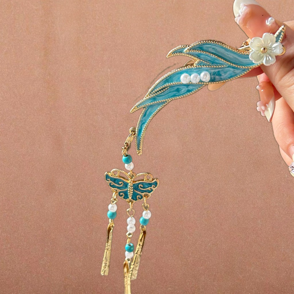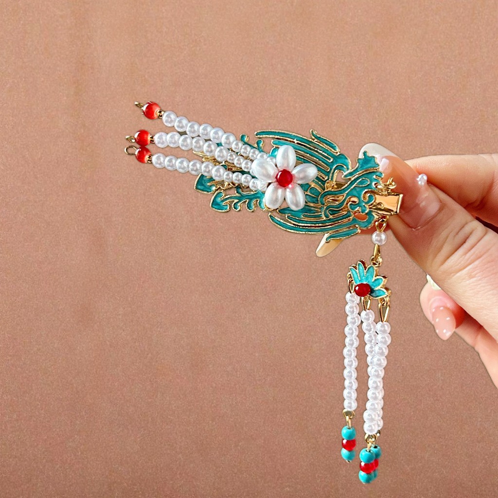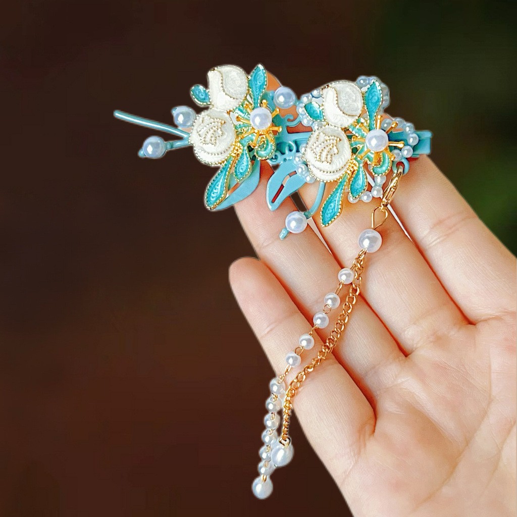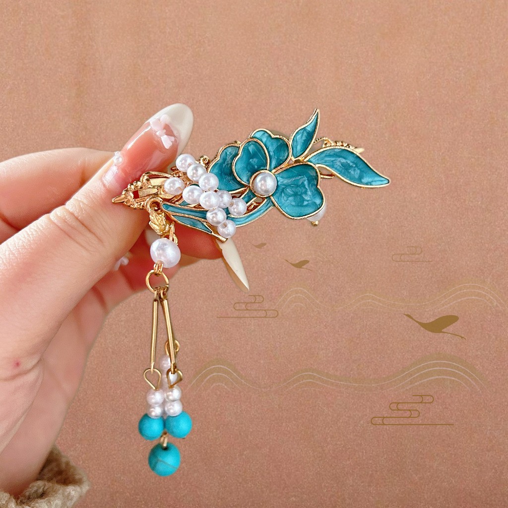 골동품 스타일 불타는 푸른 구름 진주 머리핀 새로운 중국 술 사이드 클립 고급 센스 클립 헤어 액세서리 헤드웨어 헤어 클립