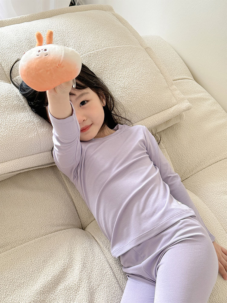 봄과 여름 큰 어린이 소년과 소녀 모달 속옷 세트 긴팔 단색 가정 의류 세트스토어 가기