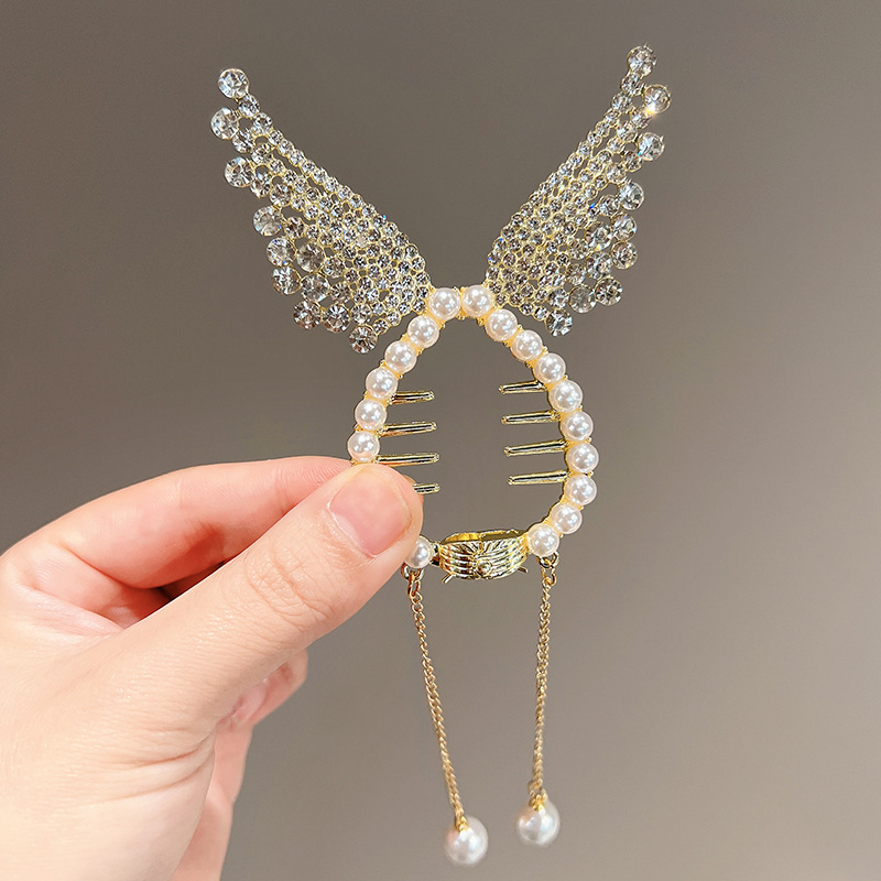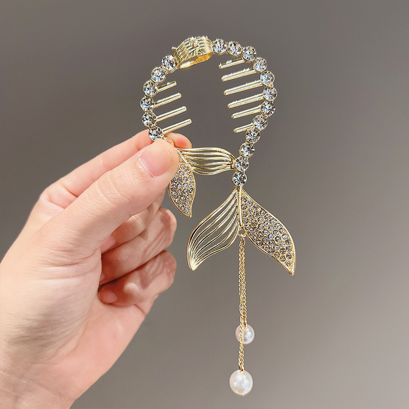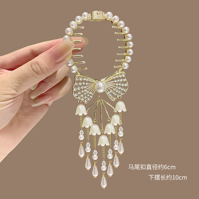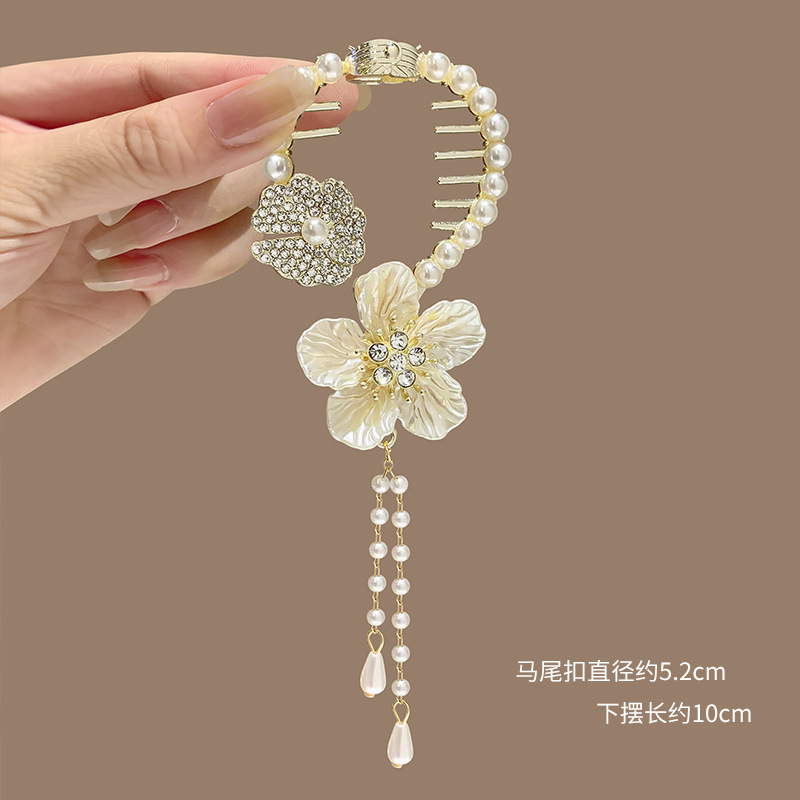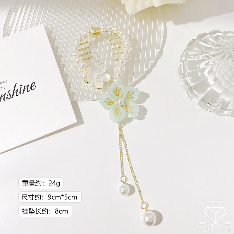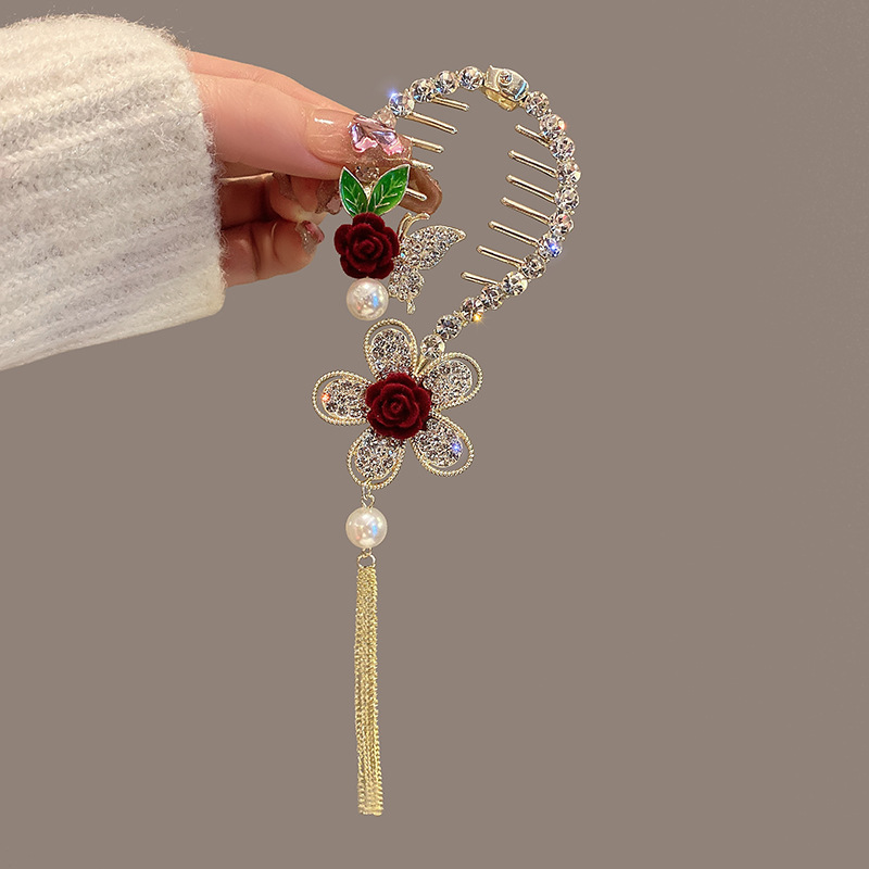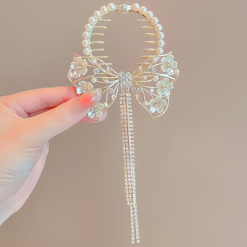 • 반짝이는 다이아몬드 플라워 태슬 헤어 클립