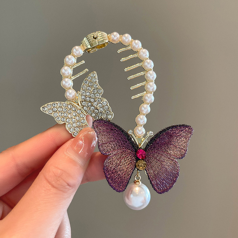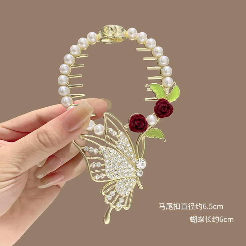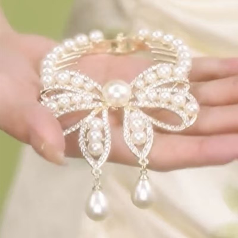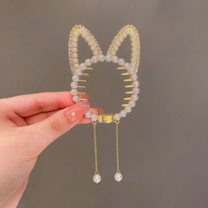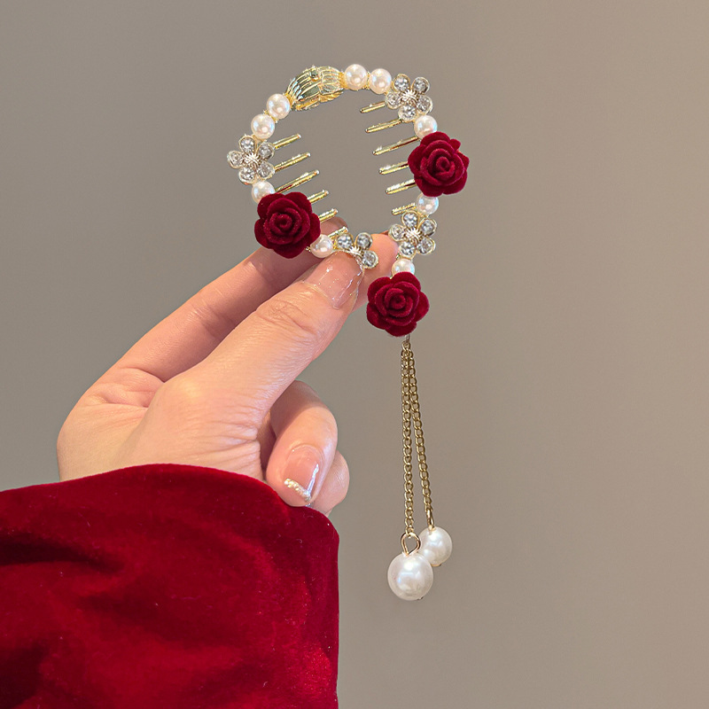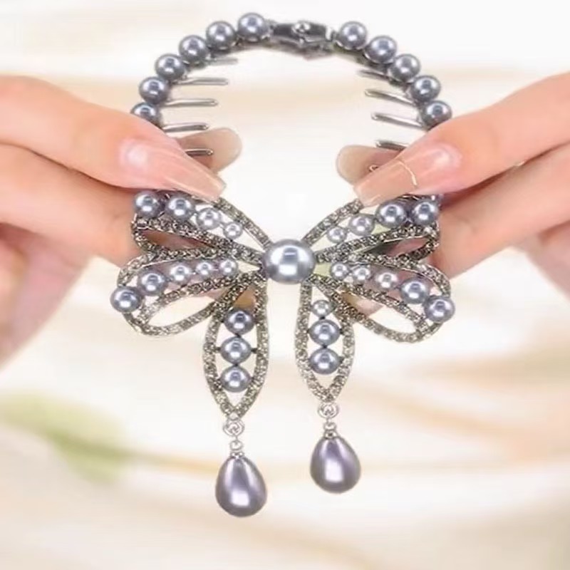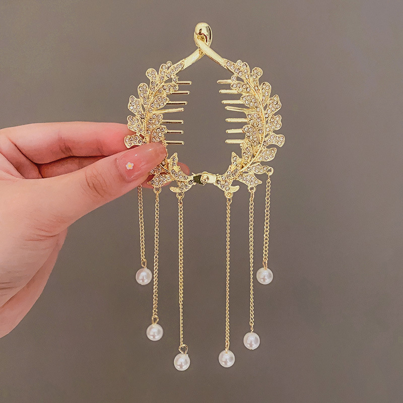 • 반짝이는 다이아몬드 플라워 태슬 헤어 클립