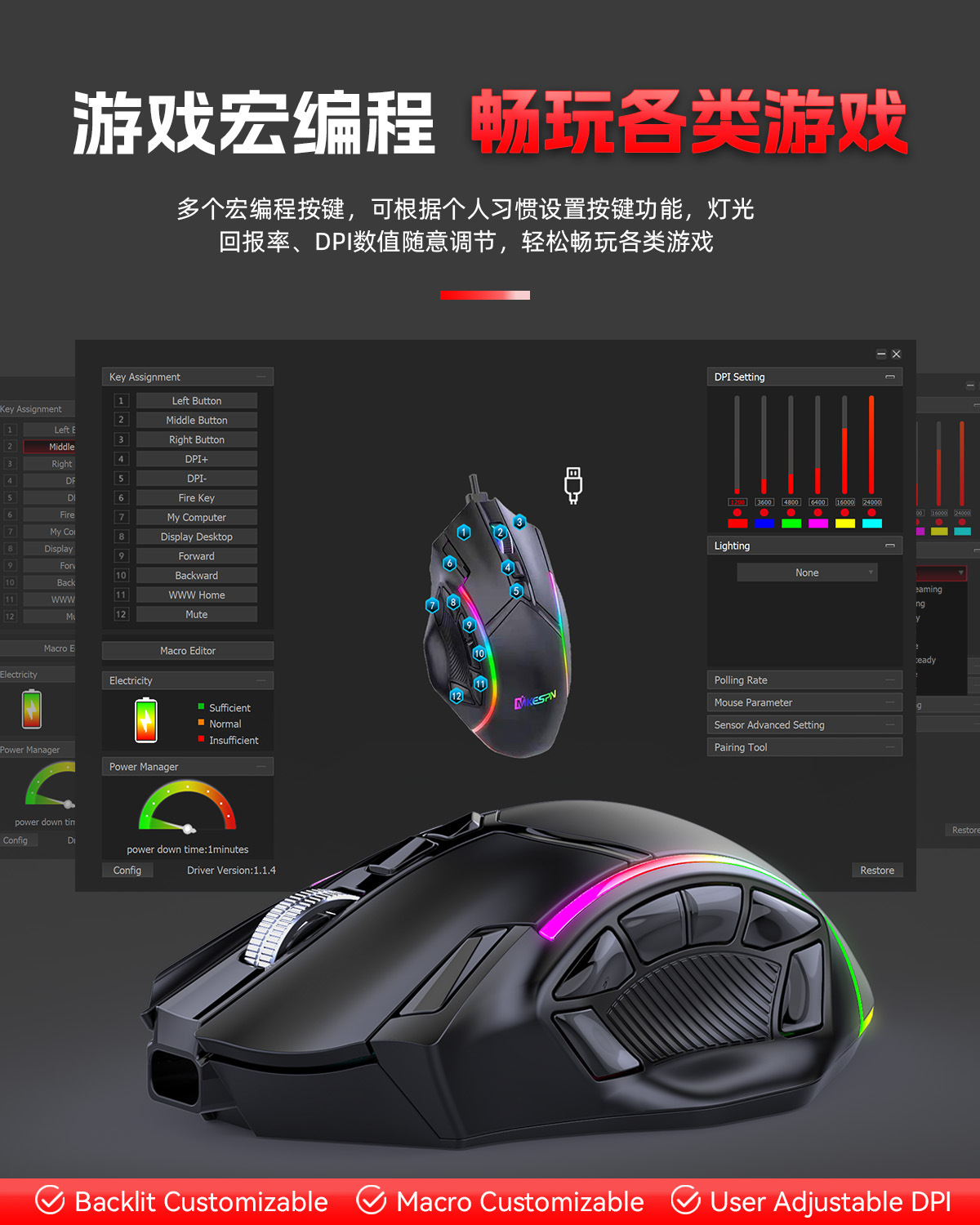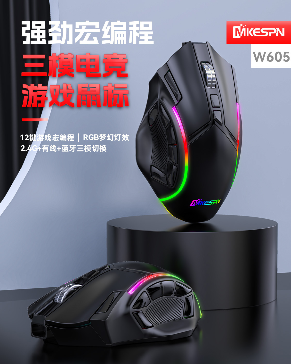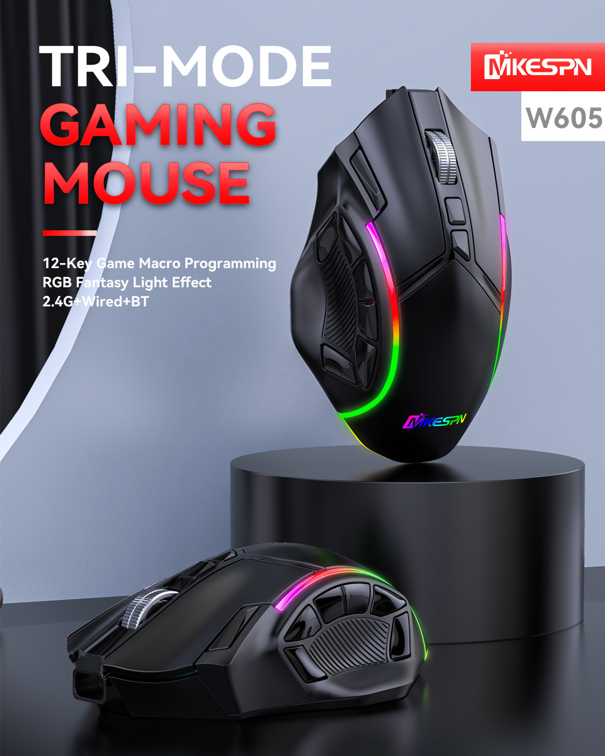 전체 속도 12 키 24000DPI 무선 3 모드 매크로 정의 게임 마우스 컴퓨터 액세서리의 일괄 배송