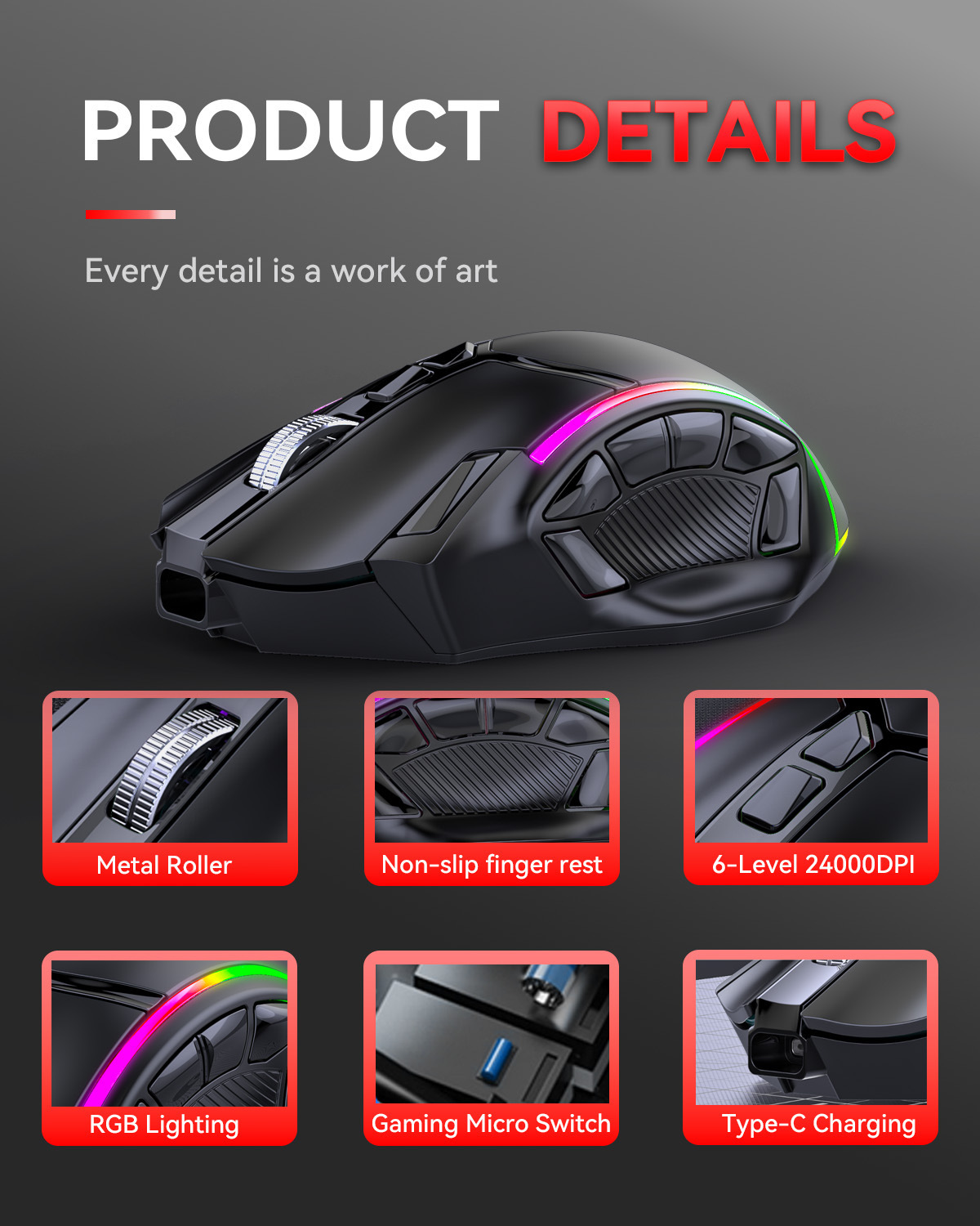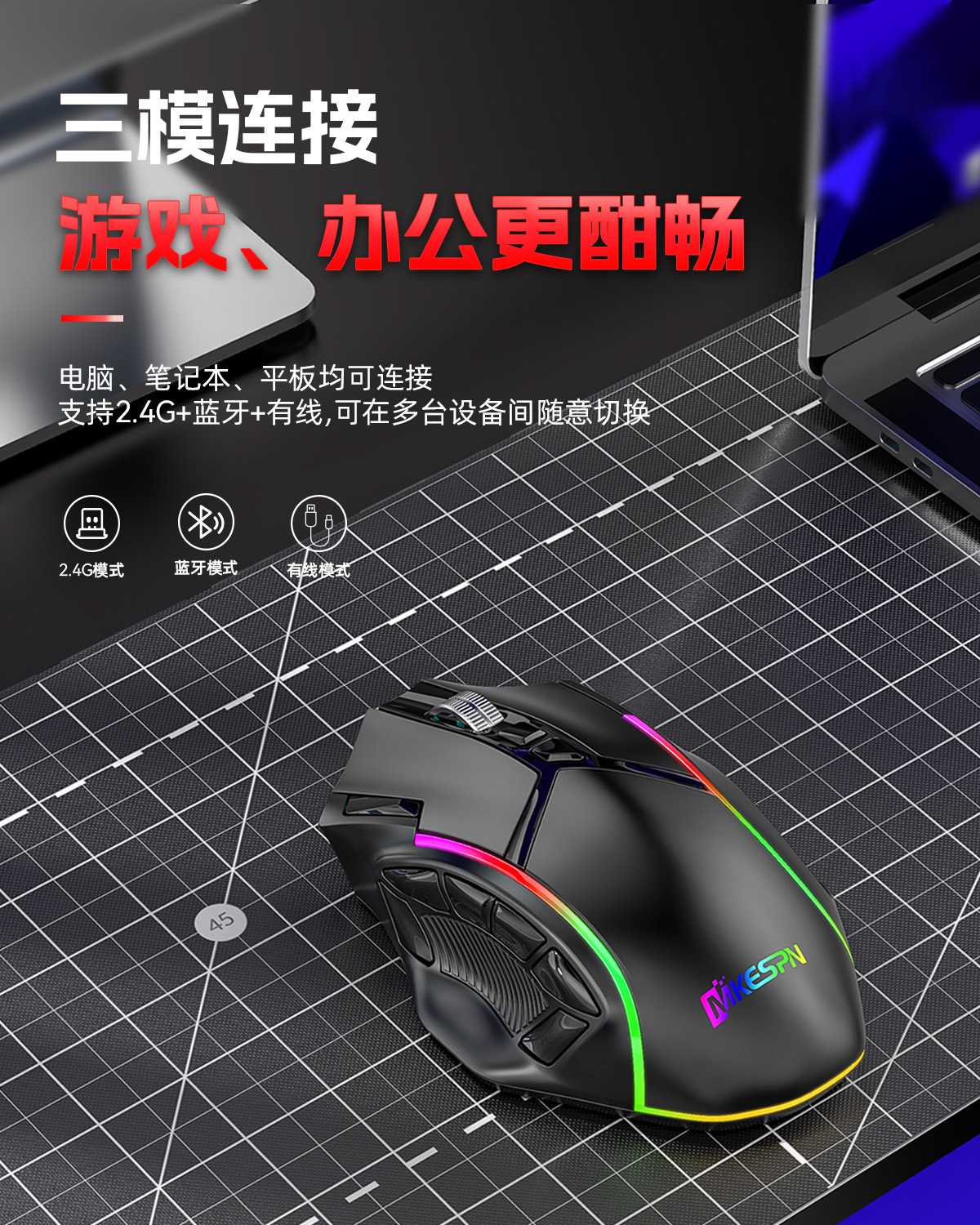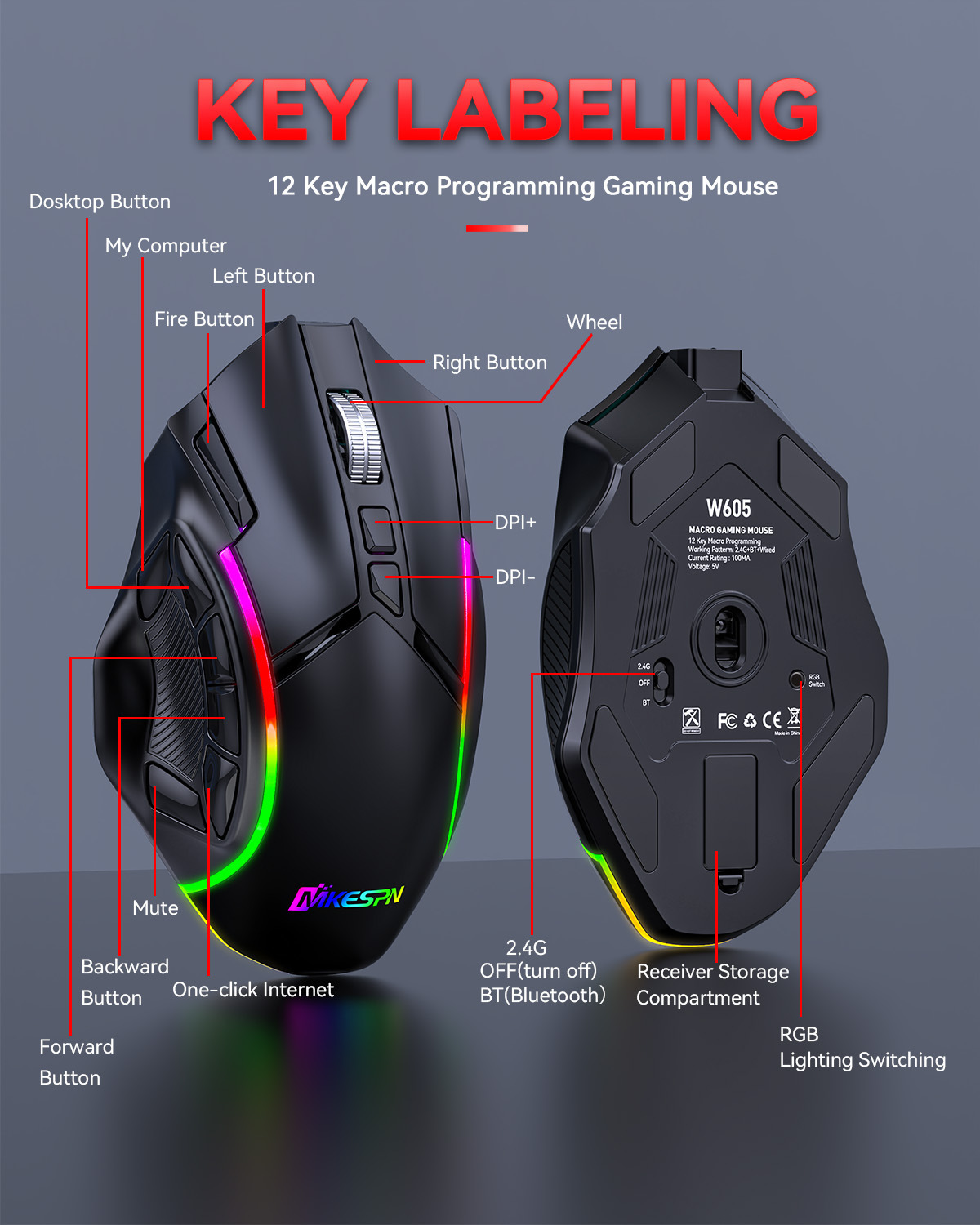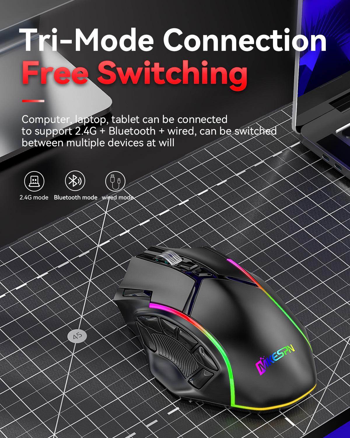 전체 속도 12 키 24000DPI 무선 3 모드 매크로 정의 게임 마우스 컴퓨터 액세서리의 일괄 배송