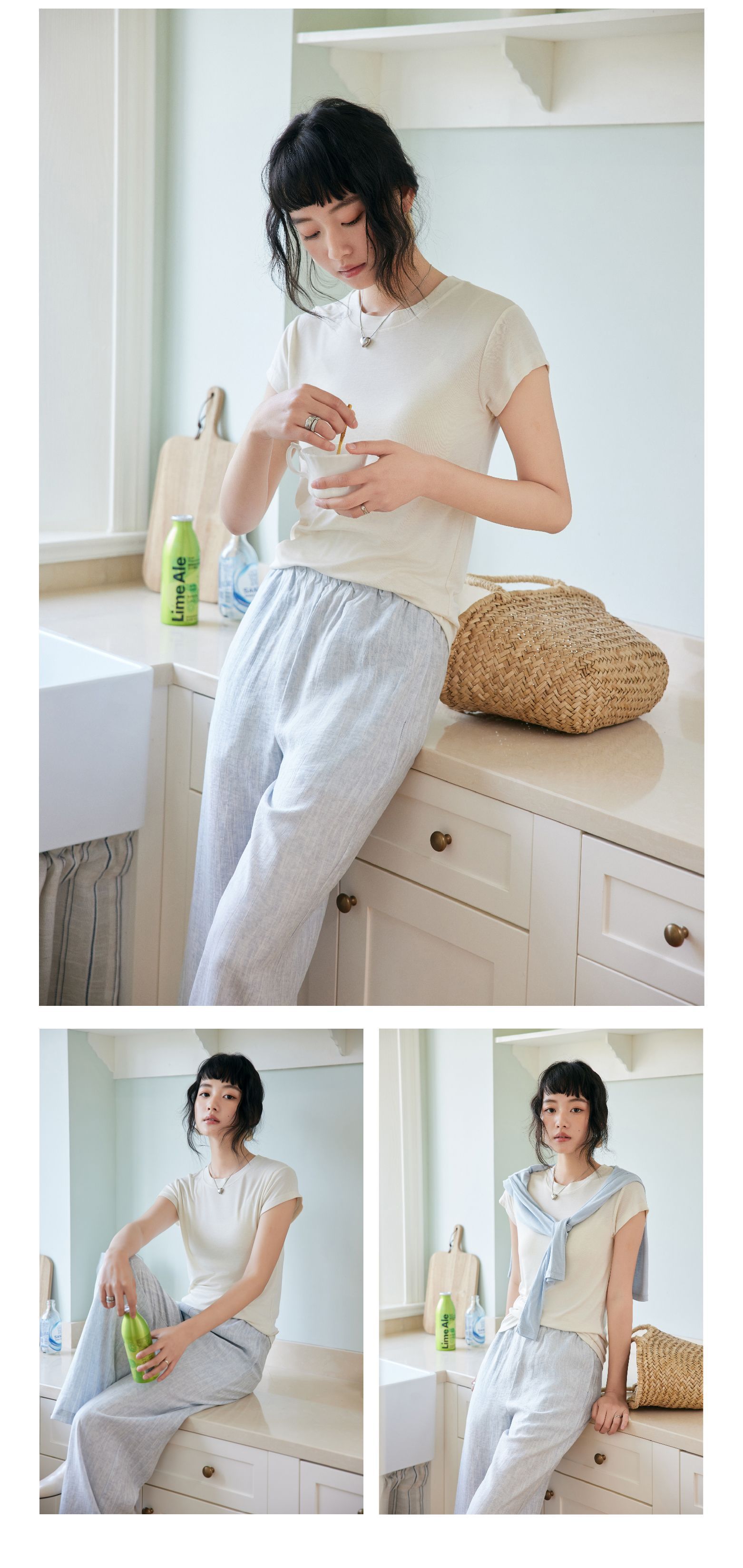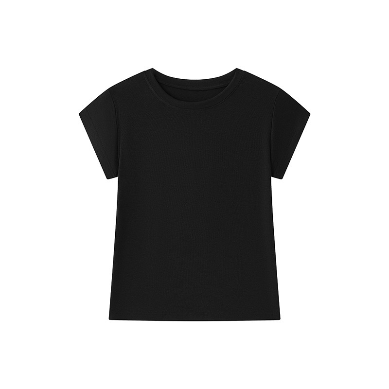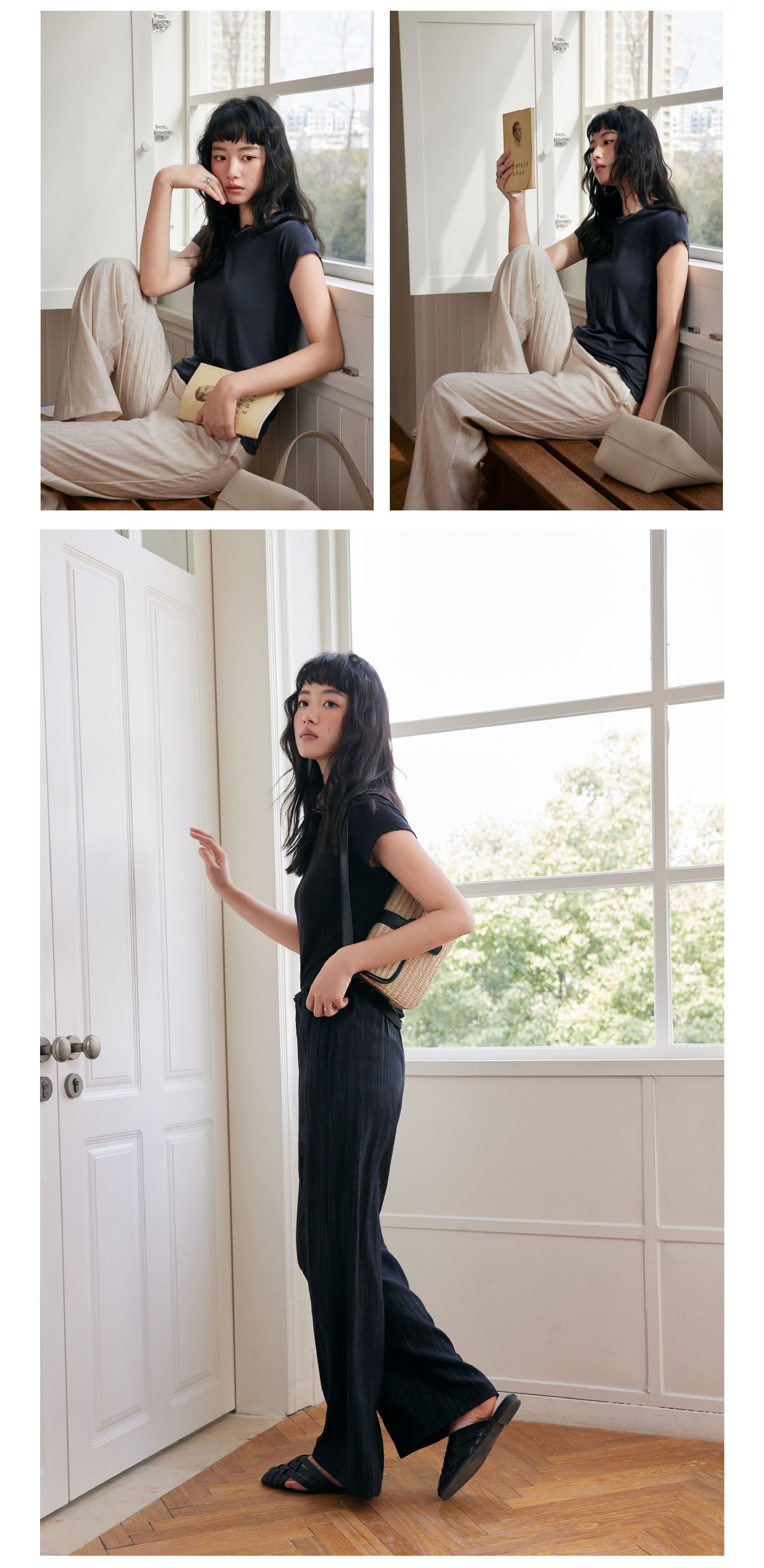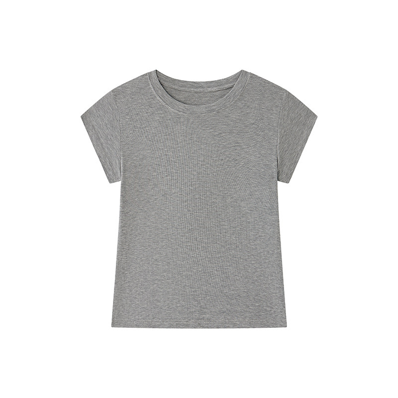 텐셀 울 반팔 티셔츠 여성용 슬림핏 라운드넥 어깨가 드러나는 작은 날개 소매 얇은 탑 예술적인 스타일 반팔 티셔츠