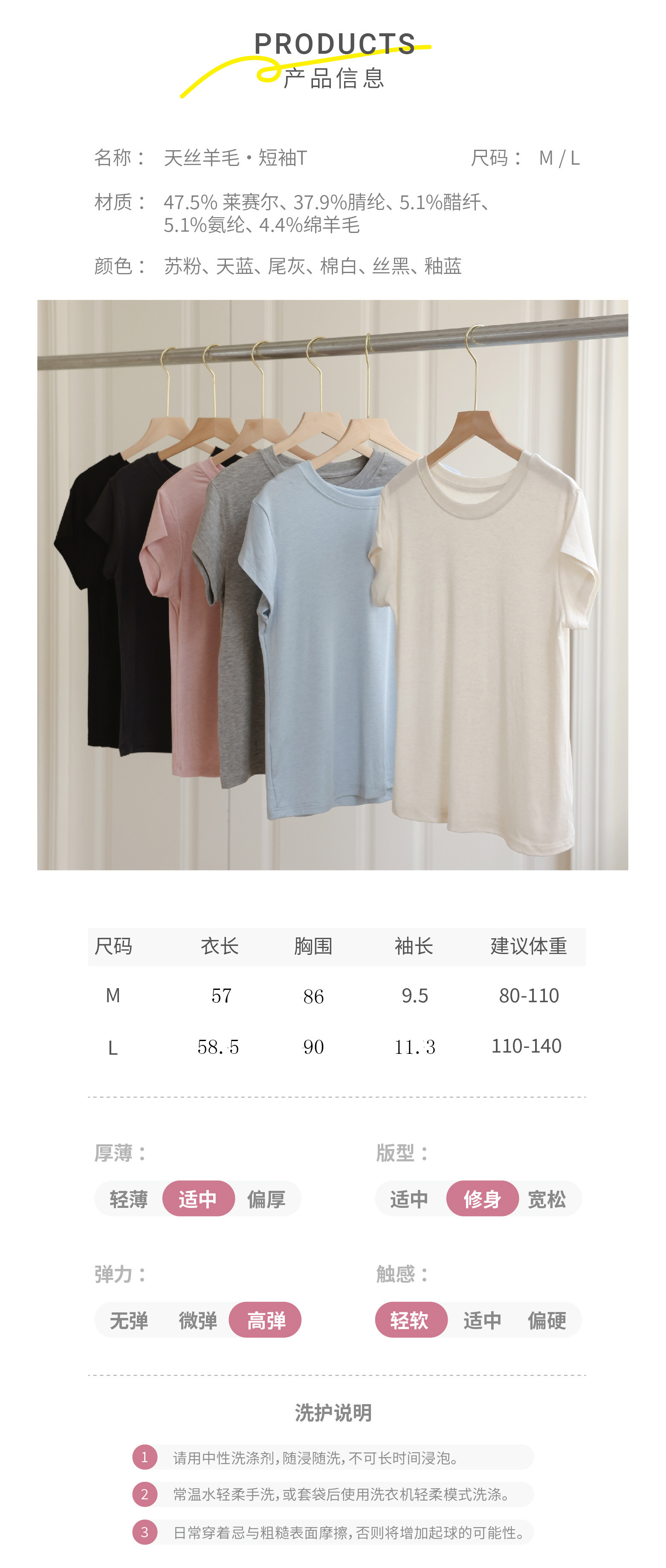 텐셀 울 반팔 티셔츠 여성용 슬림핏 라운드넥 어깨가 드러나는 작은 날개 소매 얇은 탑 예술적인 스타일 반팔 티셔츠스토어 가기