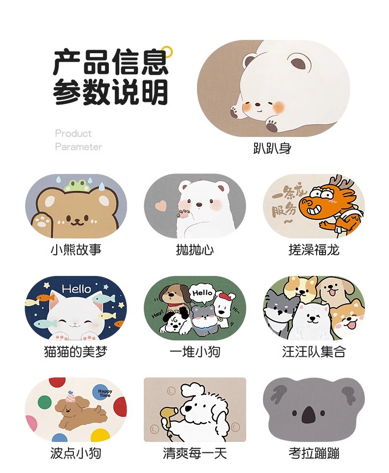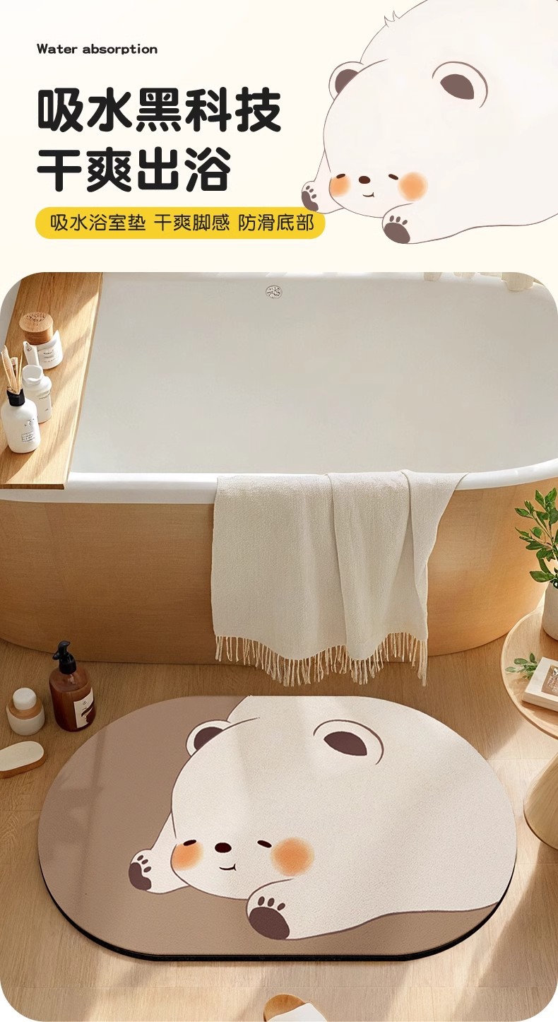 귀여운 동물 Diatom 진흙 매트 샤워 룸 미끄럼 방지 풋 매트 화장실 도어 착용 방지 더러운 도어 매트