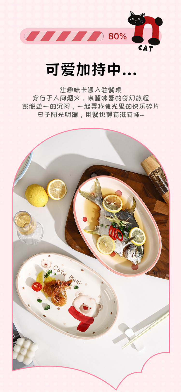 새로운 세라믹 식기 언더 유약 컬러 세라믹 플레이트 12.5 인치 타원형 생선 접시 스시 플레이트 만화 귀여운 재미스토어 가기