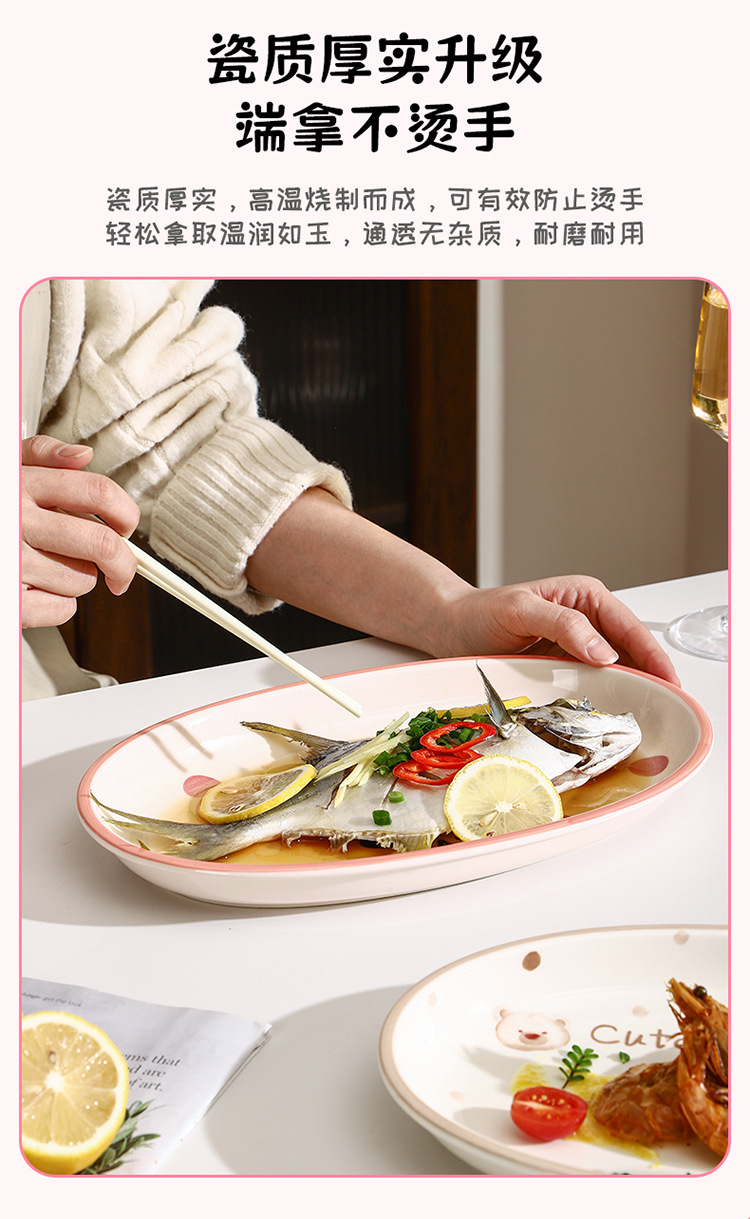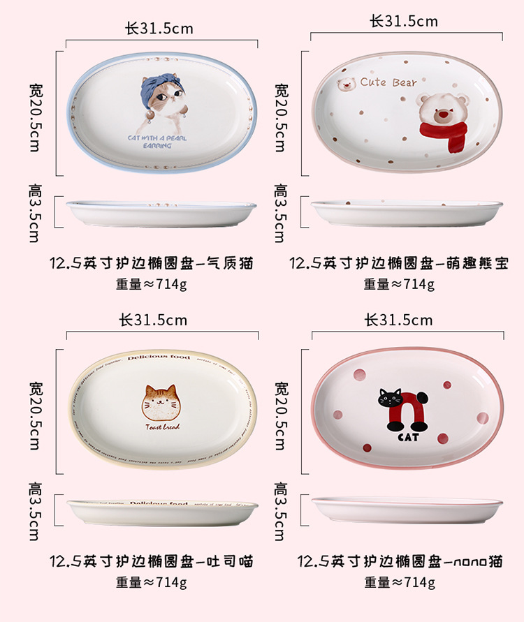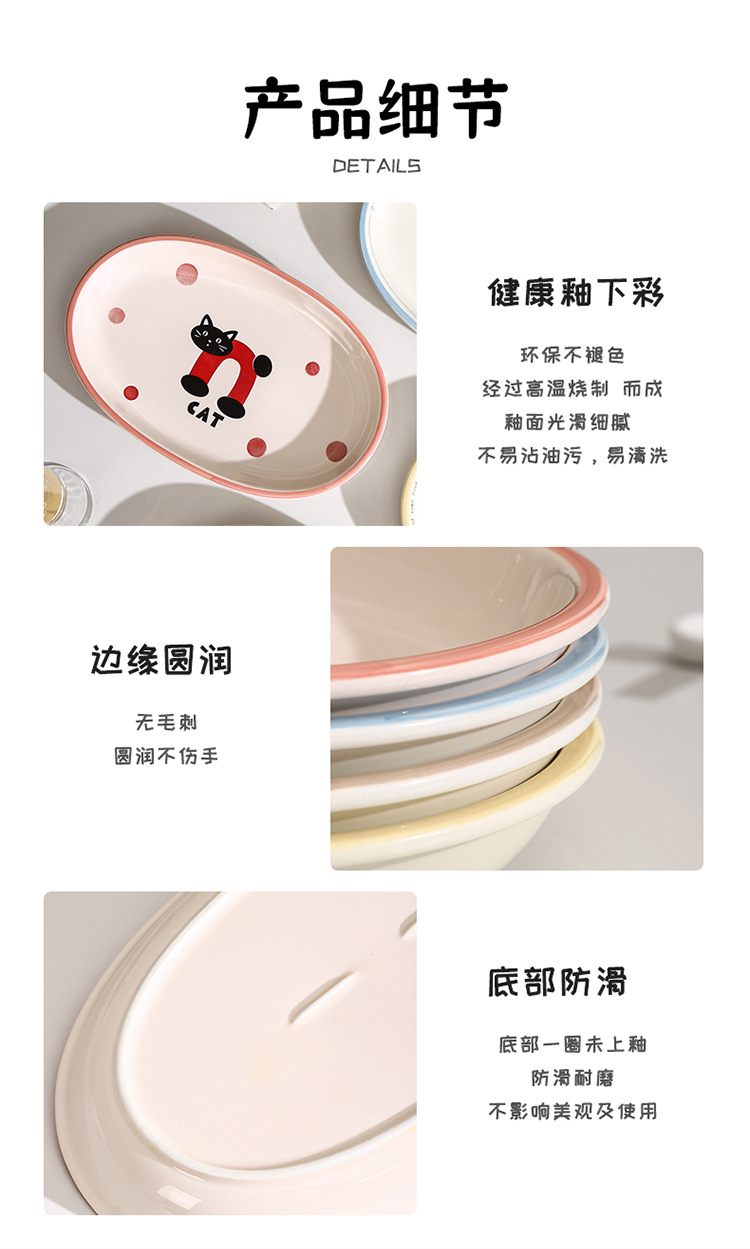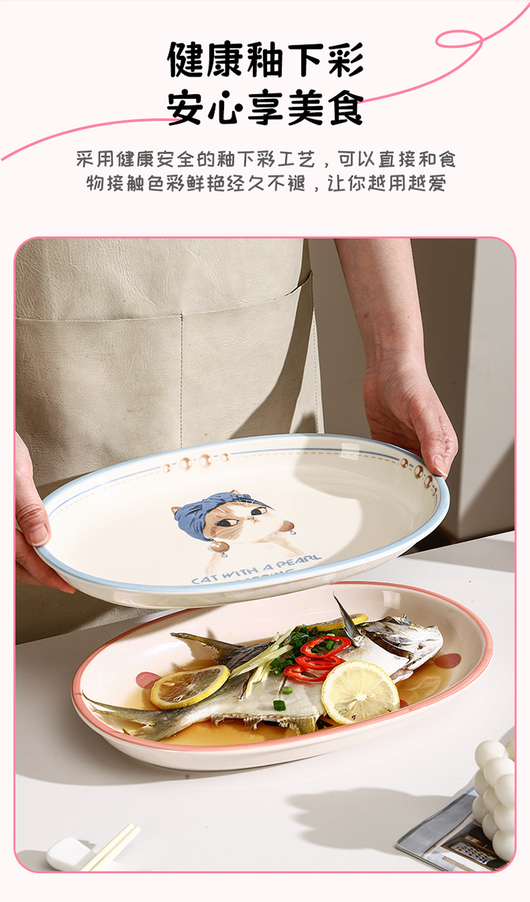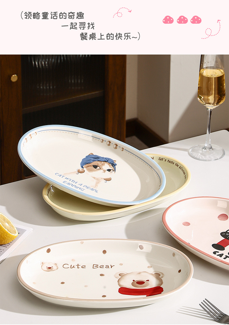 새로운 세라믹 식기 언더 유약 컬러 세라믹 플레이트 12.5 인치 타원형 생선 접시 스시 플레이트 만화 귀여운 재미