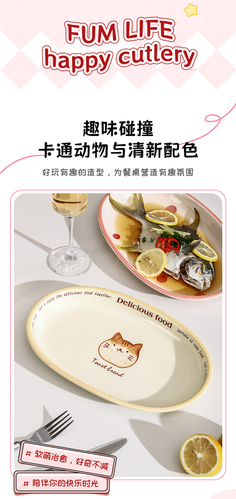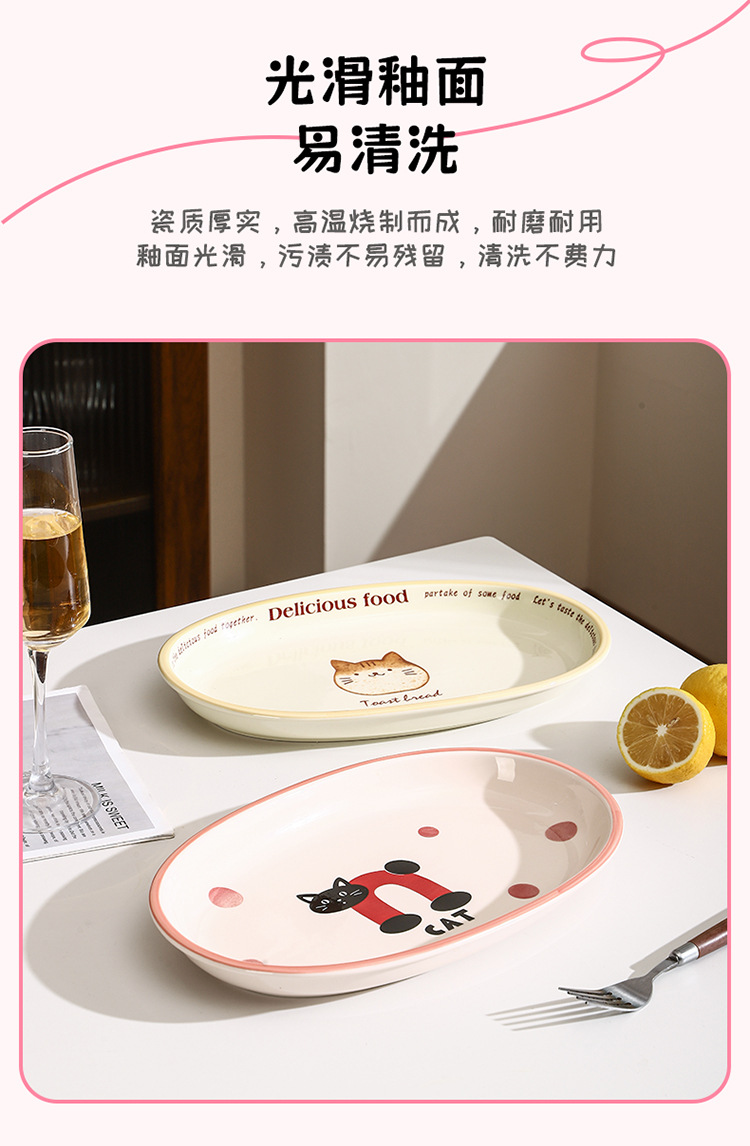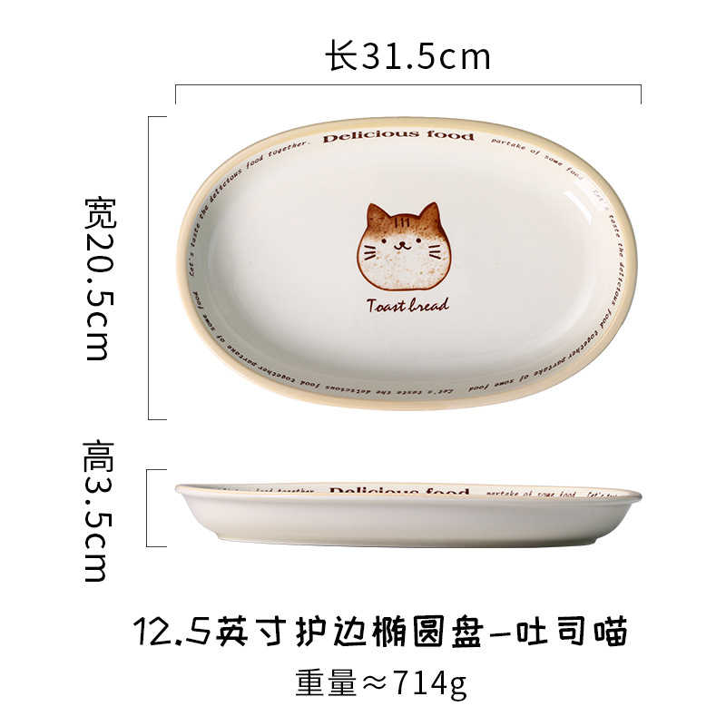 • 12.5inch 엣지 보호 타원형 플레이트 - 토스트야옹