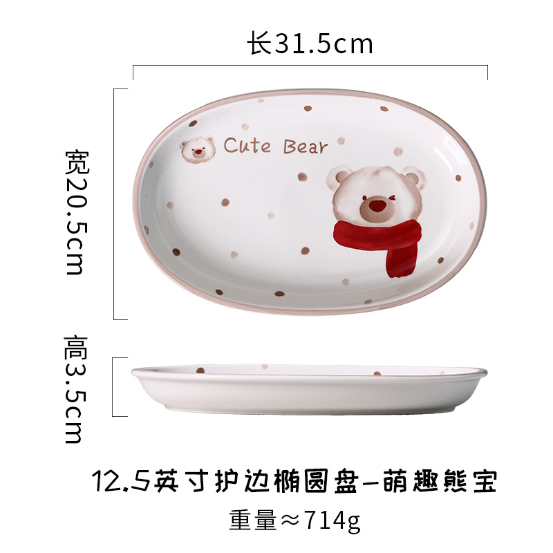 • 12.5inch 가장자리 보호 타원형 플레이트 - 귀여운 곰 보물