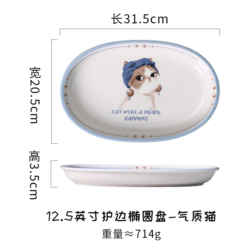 • 12.5inch 엣지 보호 타원형 플레이트 - 변덕스러운 고양이