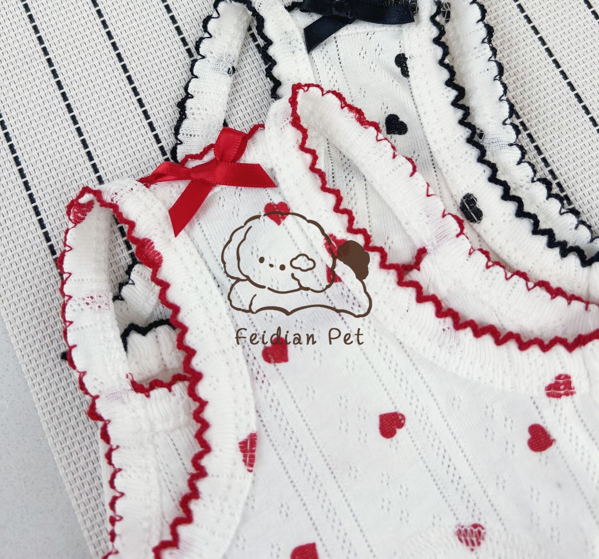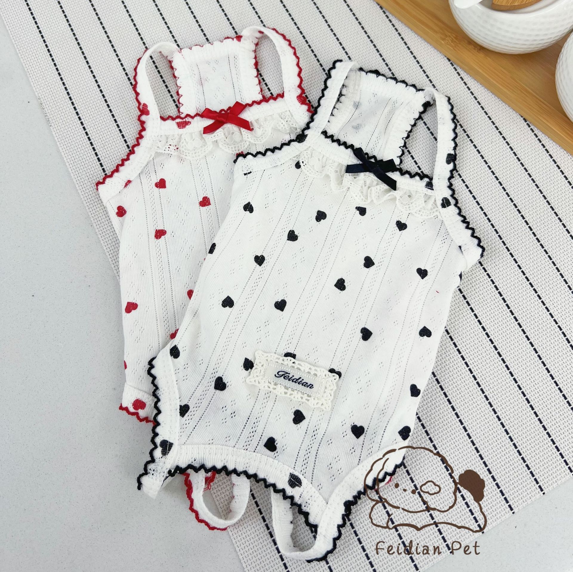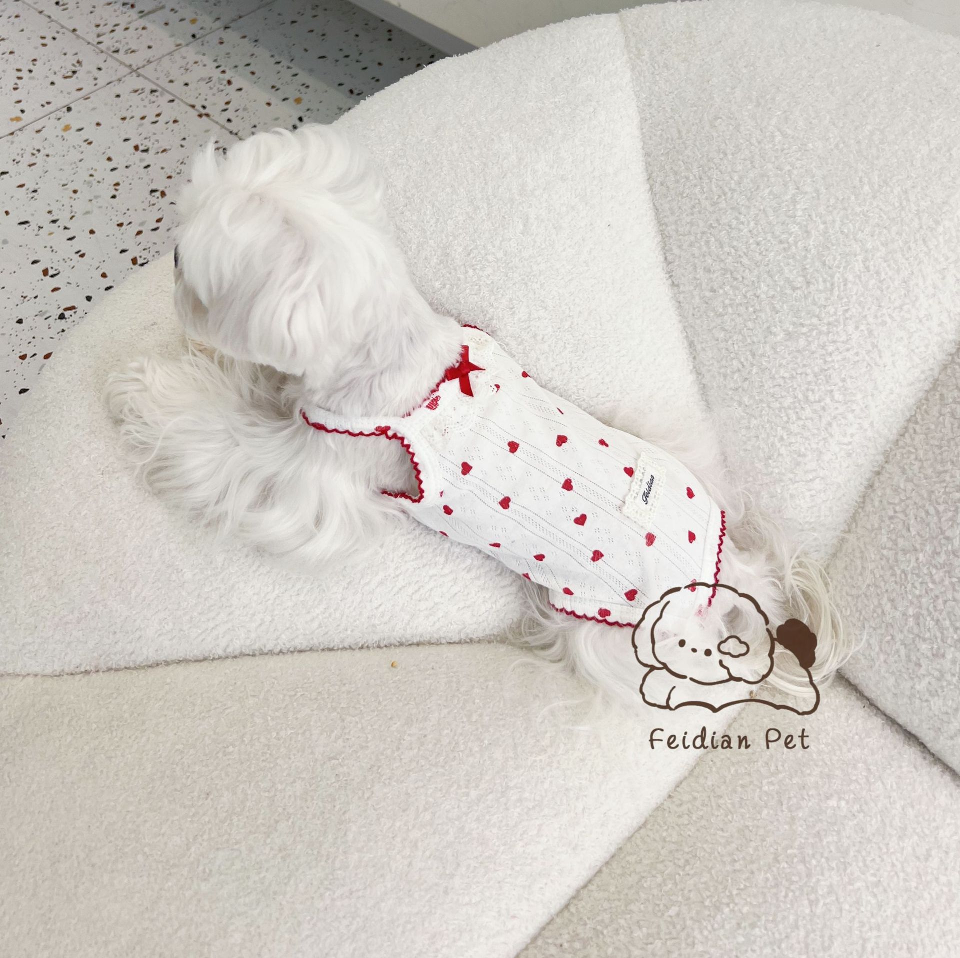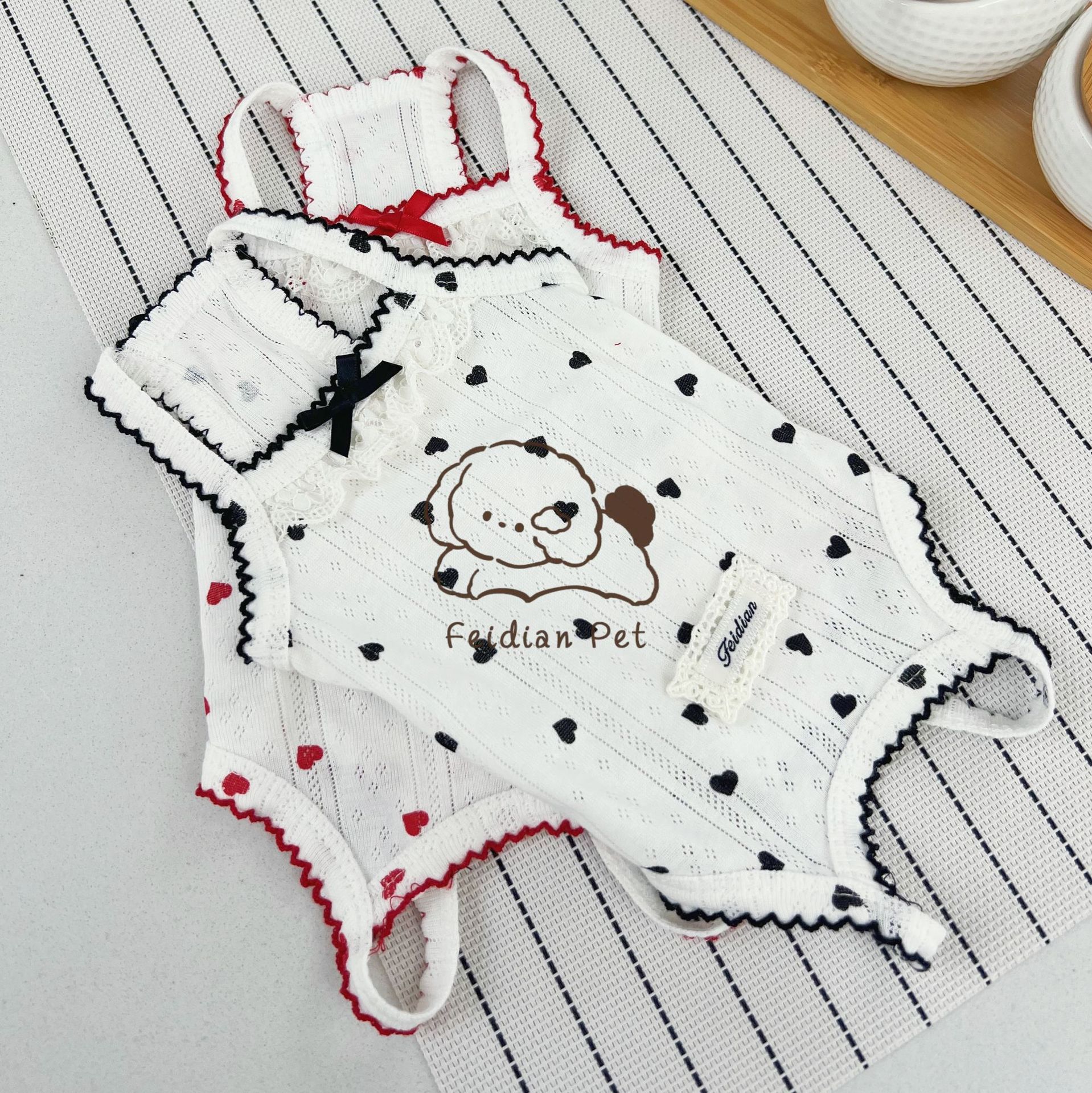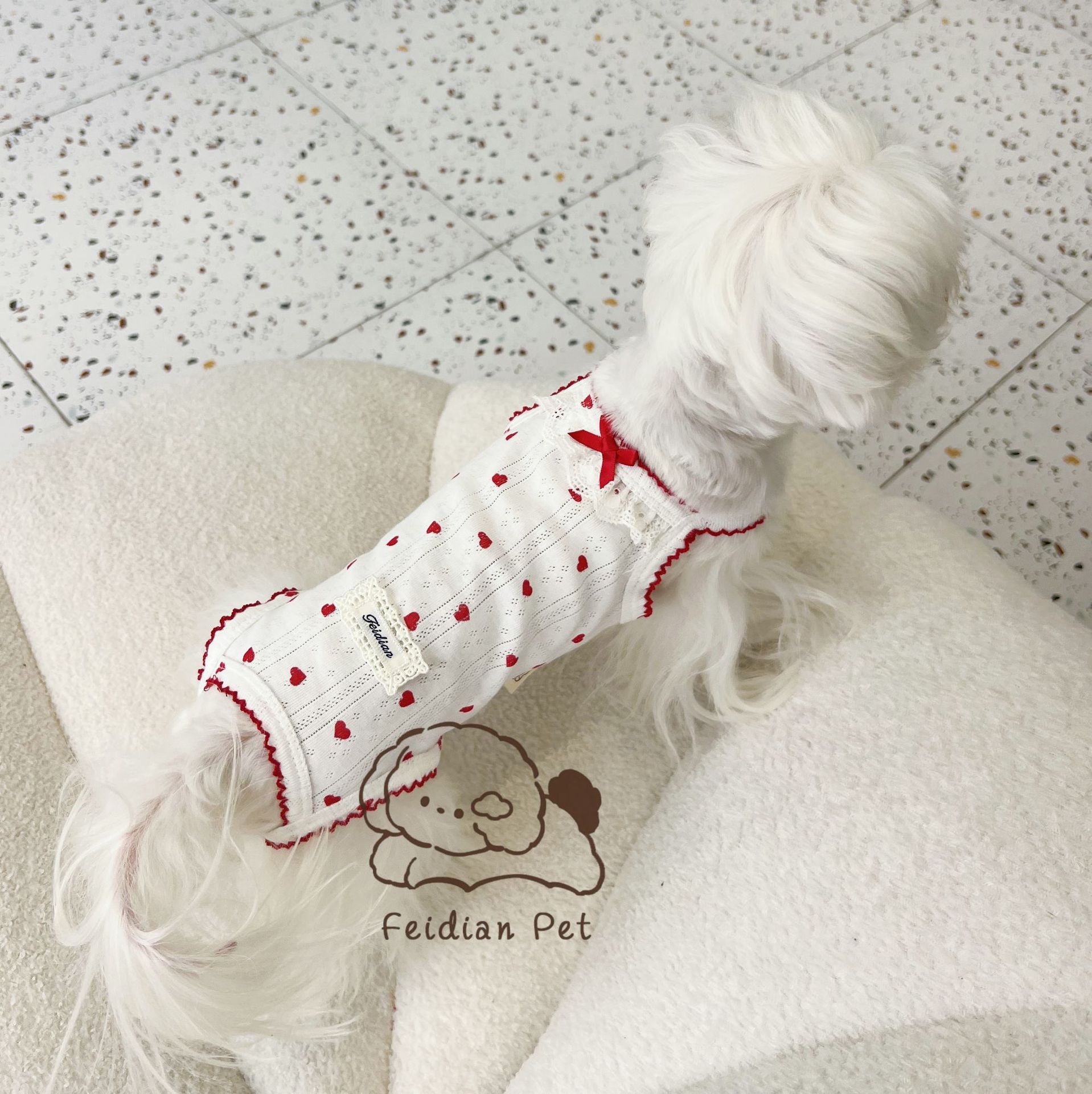 봄과 여름 새로운면 사랑 인쇄 레이스 가방 배꼽 스트랩 조끼 개 고양이 머리 방지 통기성 여름스토어 가기