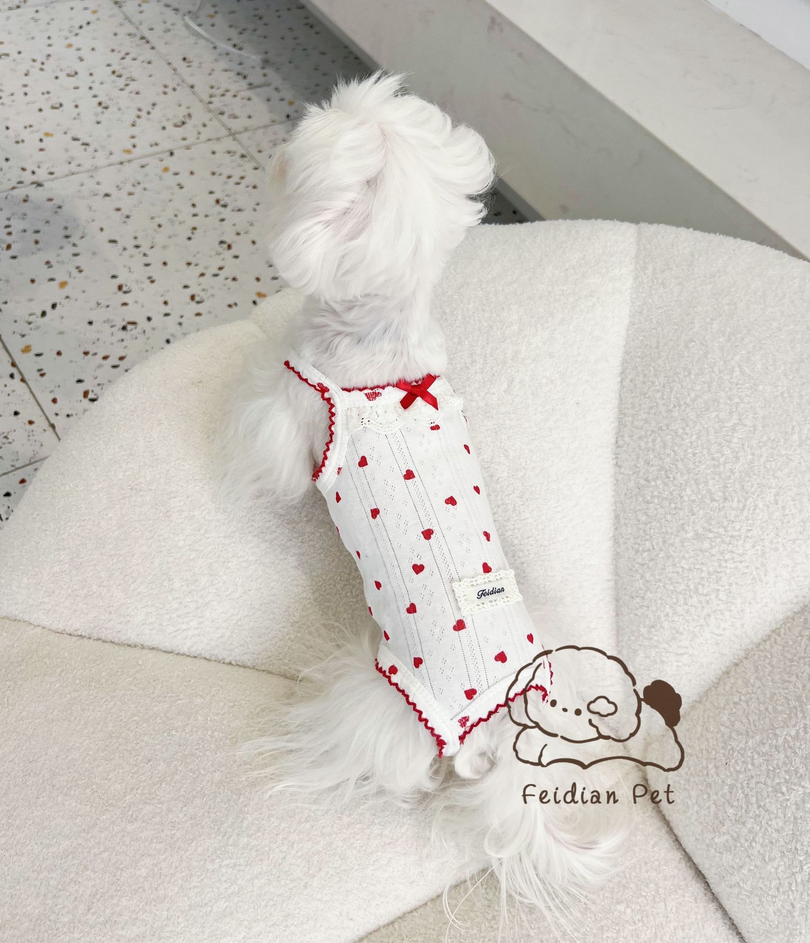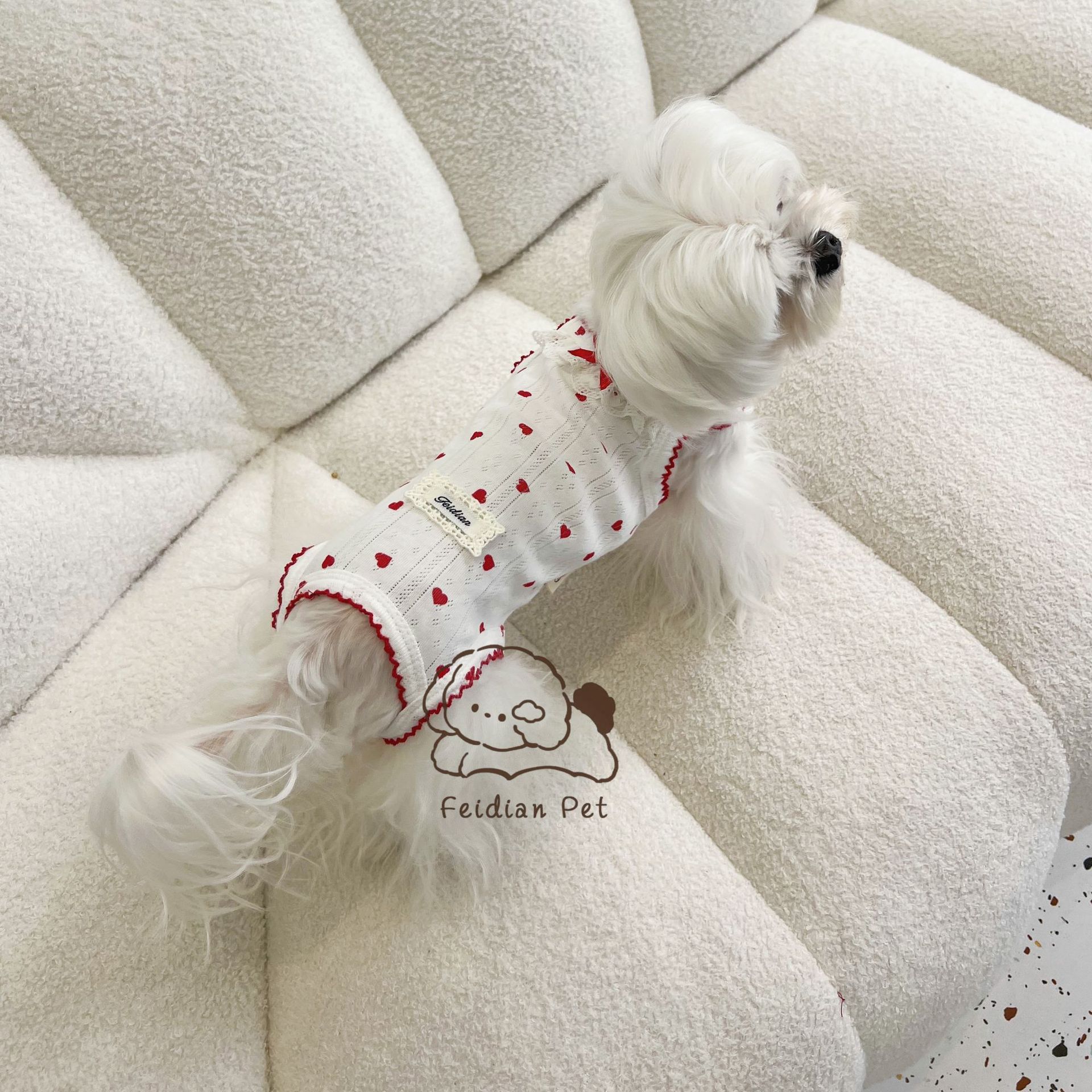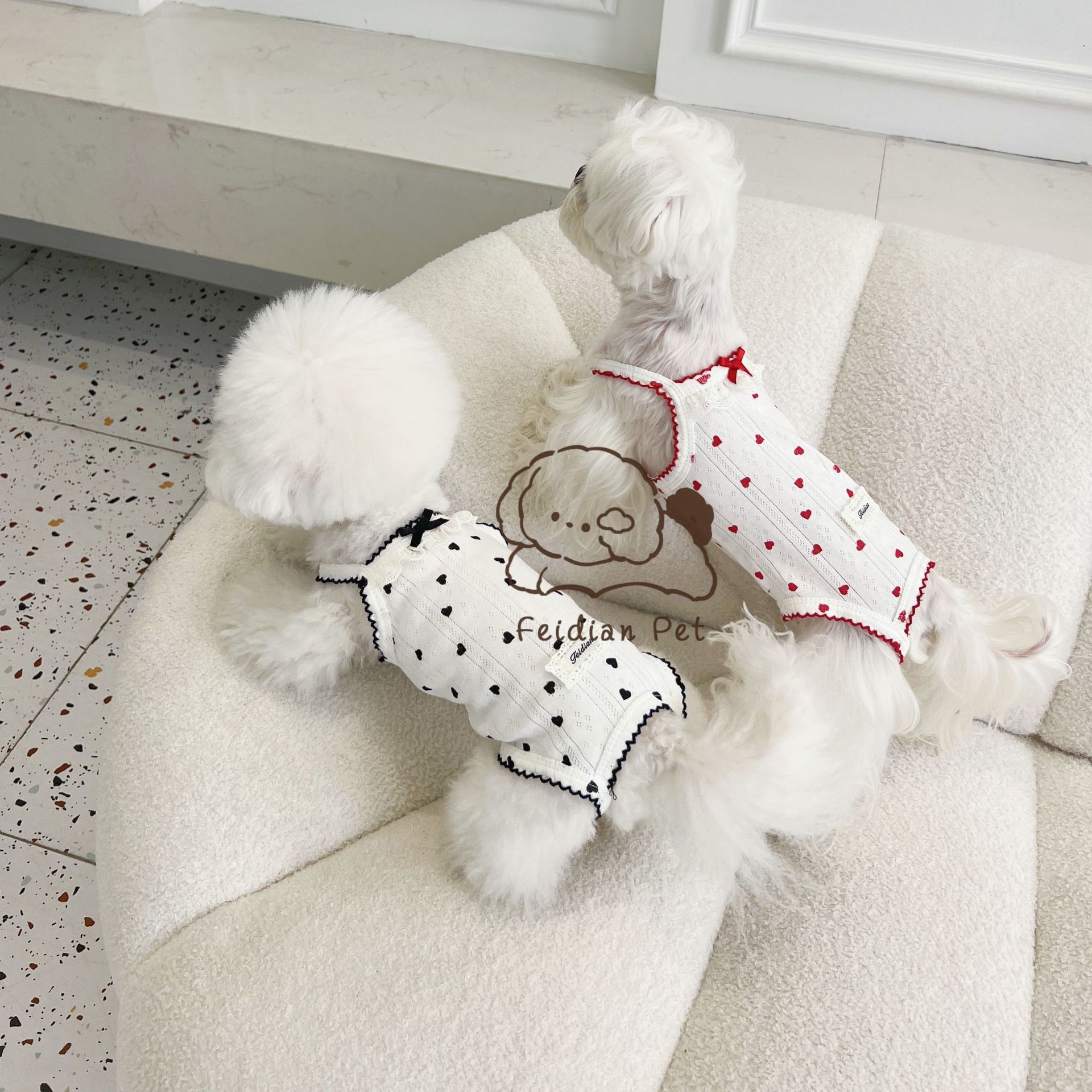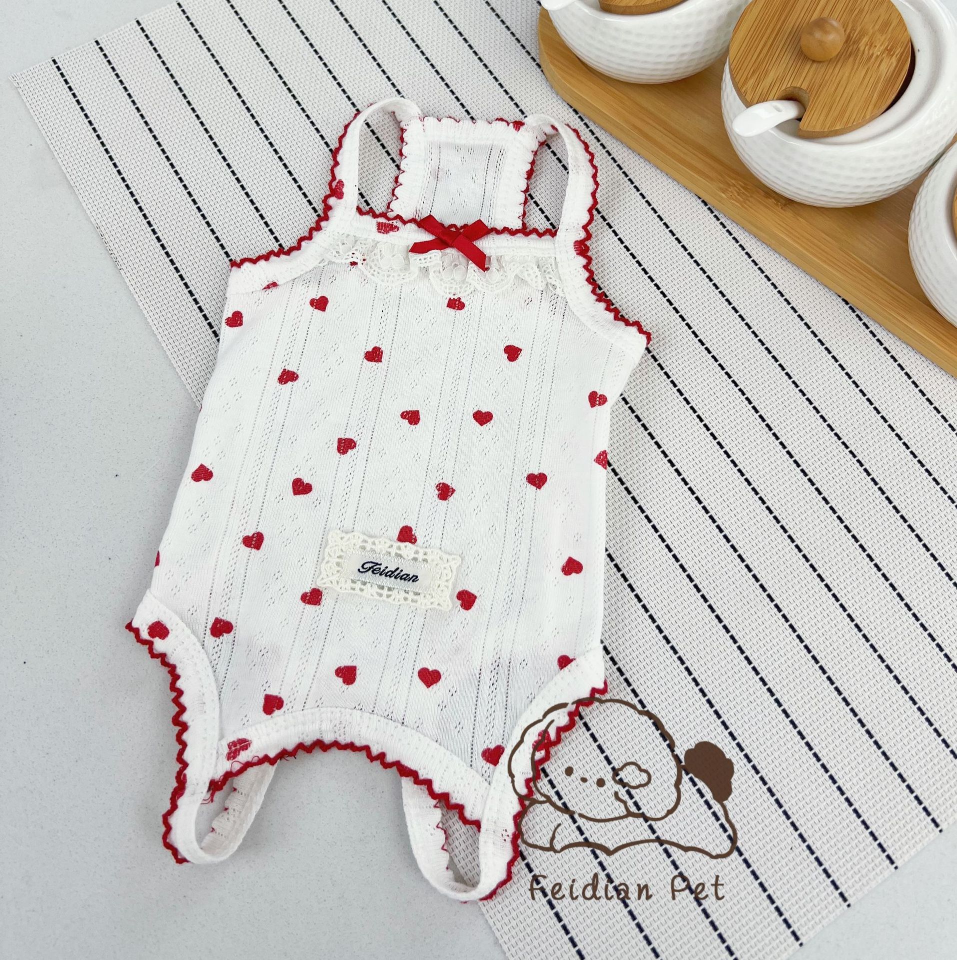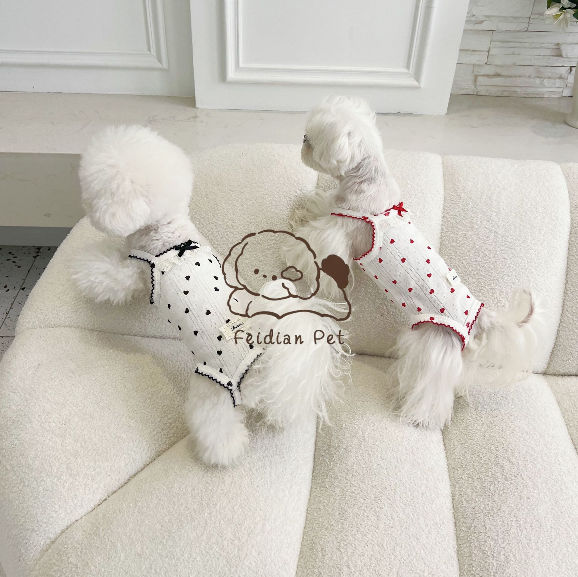 봄과 여름 새로운면 사랑 인쇄 레이스 가방 배꼽 스트랩 조끼 개 고양이 머리 방지 통기성 여름스토어 가기