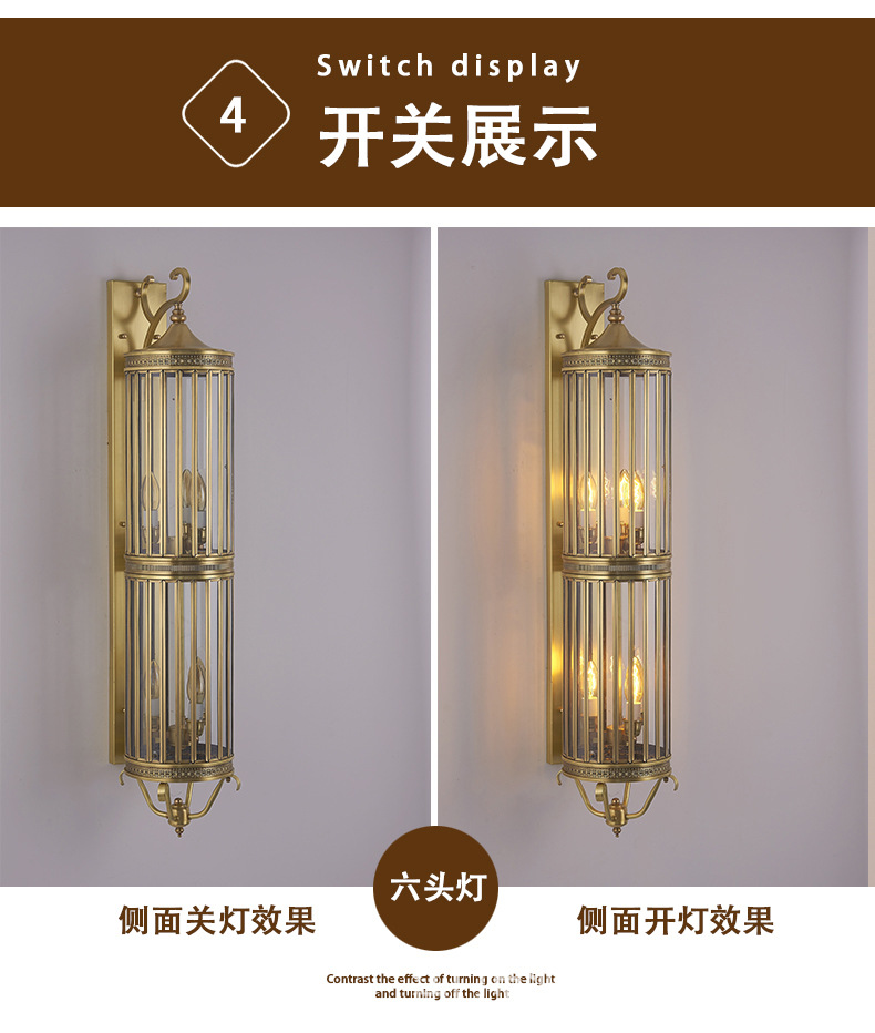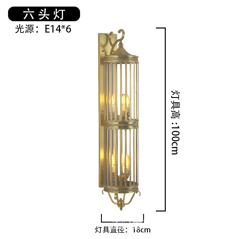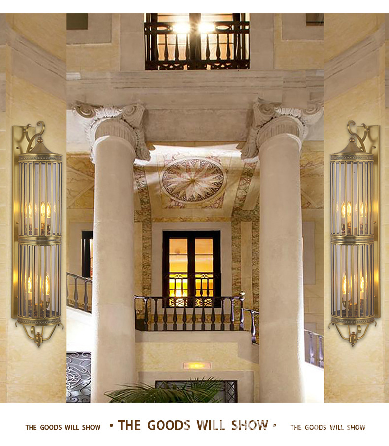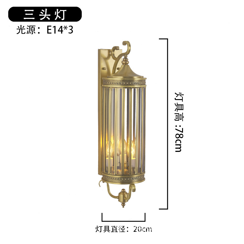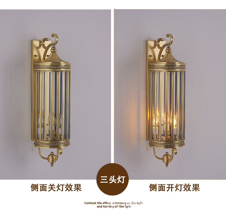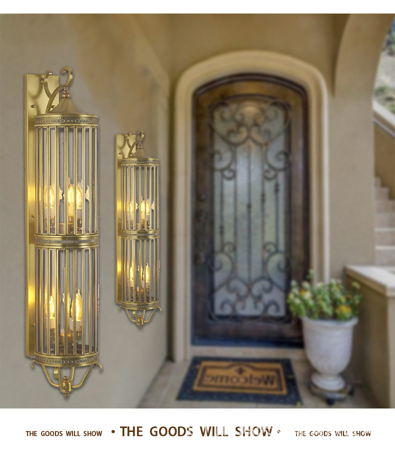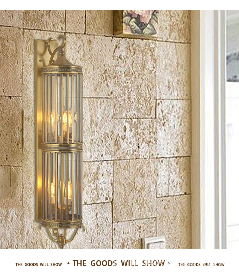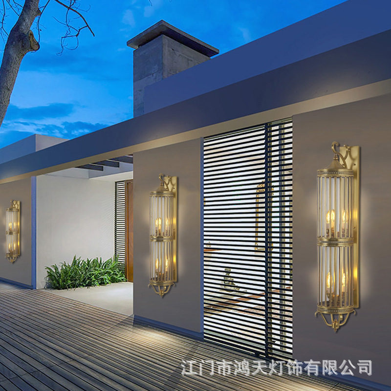 야외 벽 램프 유럽 스타일의 전체 구리 빌라 문 양쪽에 안뜰 벽 야외 방수 계단 통로 긴 램프