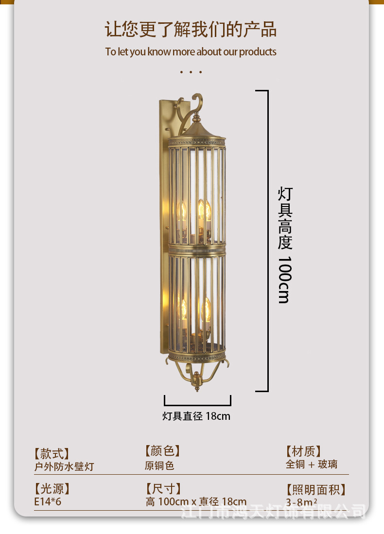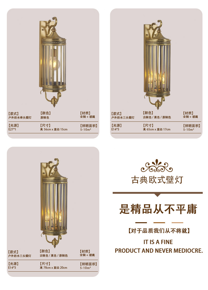 야외 벽 램프 유럽 스타일의 전체 구리 빌라 문 양쪽에 안뜰 벽 야외 방수 계단 통로 긴 램프스토어 가기