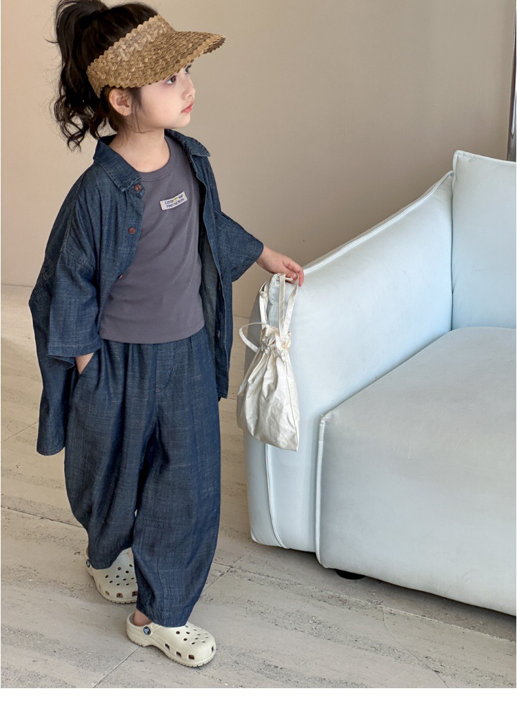 샤오홍위 여아 아이스 실크 청바지 여름 얇은 모델 2026 신상 바지 아동 모기 방지 바지 루즈핏 여름 패션 트렌드스토어 가기