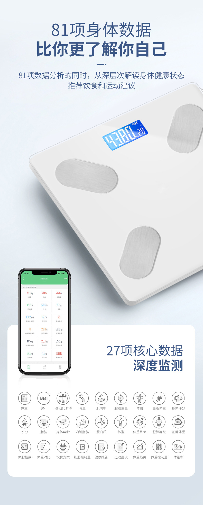 체중계, 가정용 전자 체지방 측정기, 충전식, 고정밀, 소형 기숙사 체중계, 좋은 품질, 지방 감량 전용스토어 가기