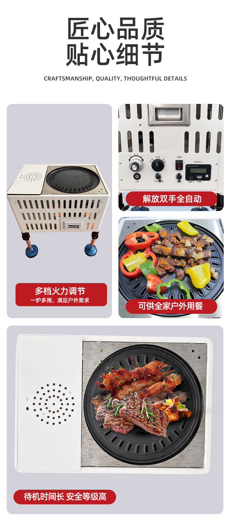 2025 새로운 야외 휴대용 다기능 바베큐 그릴, 환경 친화적이고 에너지 절약형 야외 피크닉 화덕 그릴