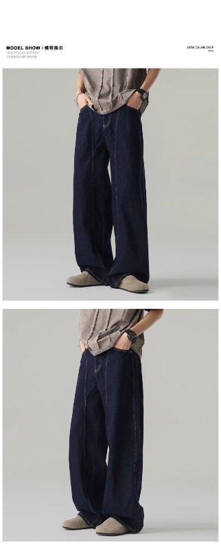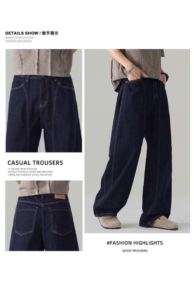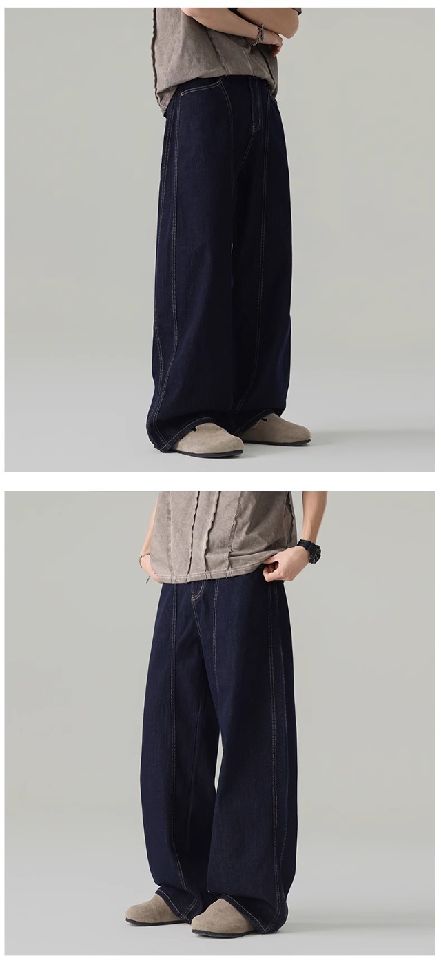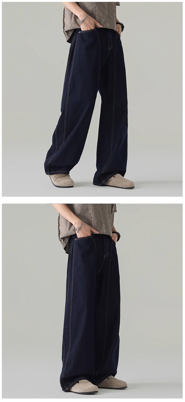 새로운 스트레이트 오리지널 컬러 데님 블루 세이버 바지 봄 여름 새로운 와이드 레그 아메리칸 레트로 루즈 청바지 남성용스토어 가기
