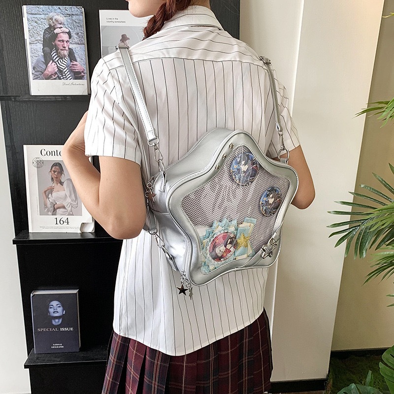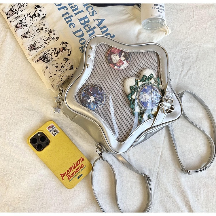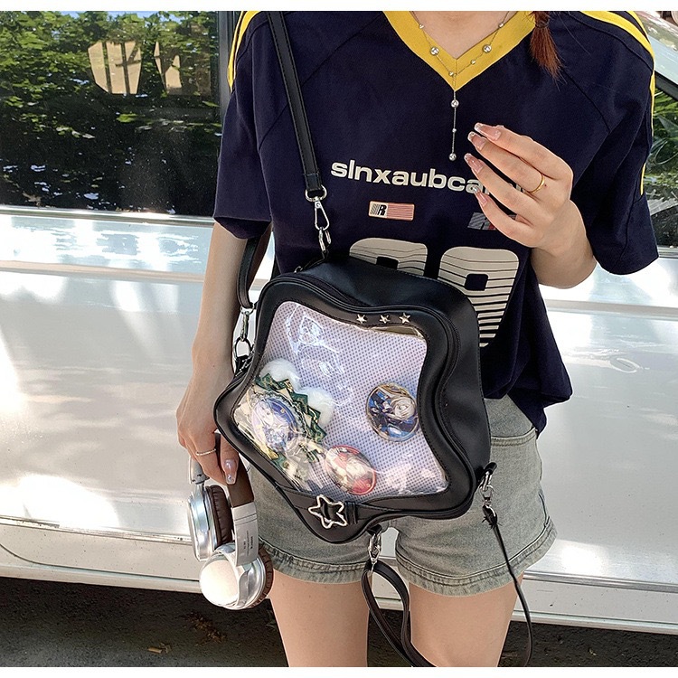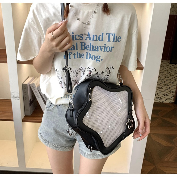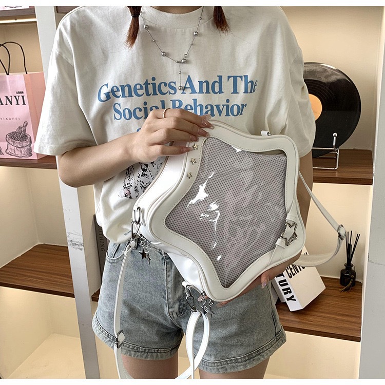 일본 스타일 귀여운 밀레 투명 통증 가방 스타 배낭 패션 달콤한 쿨 작은 음식 볼륨 오점 스타 크로스 바디 백스토어 가기