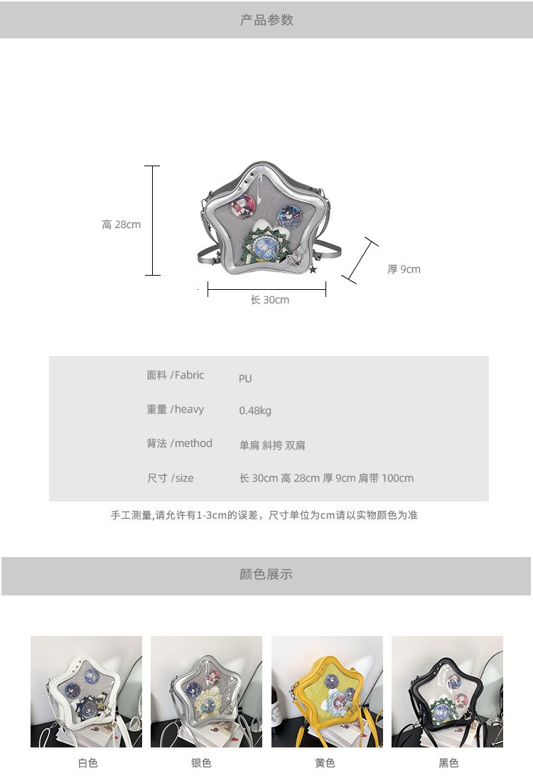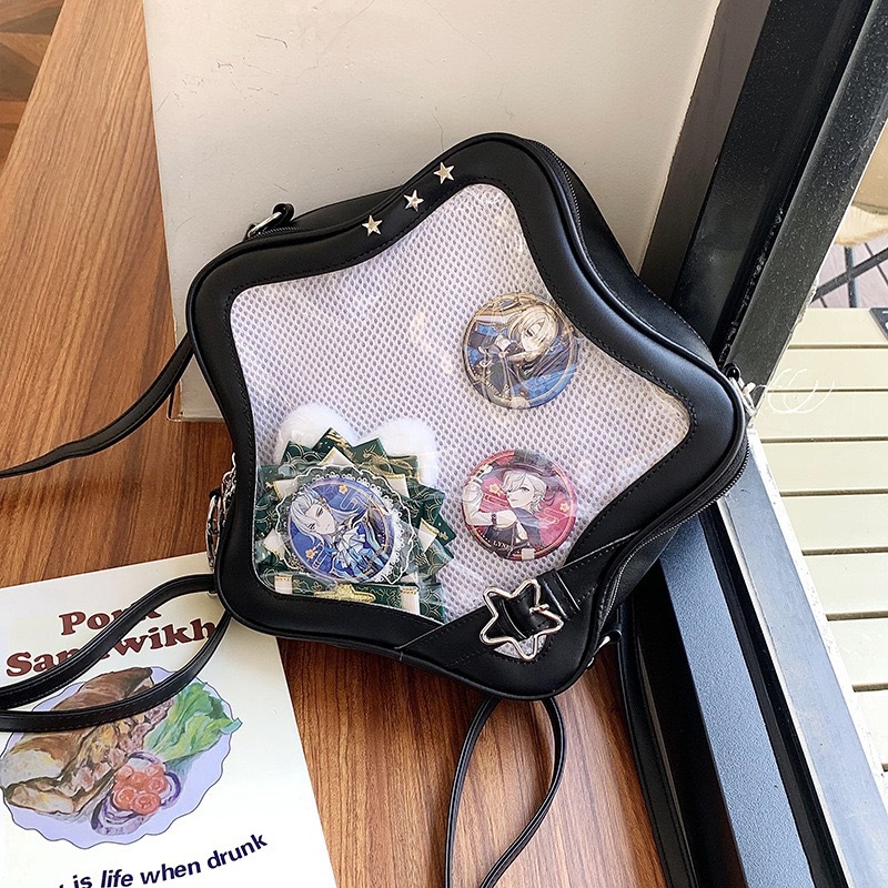 일본 스타일 귀여운 밀레 투명 통증 가방 스타 배낭 패션 달콤한 쿨 작은 음식 볼륨 오점 스타 크로스 바디 백