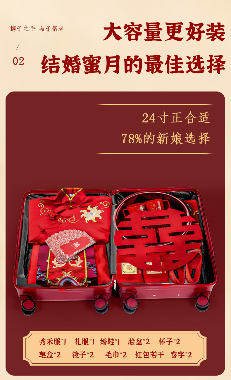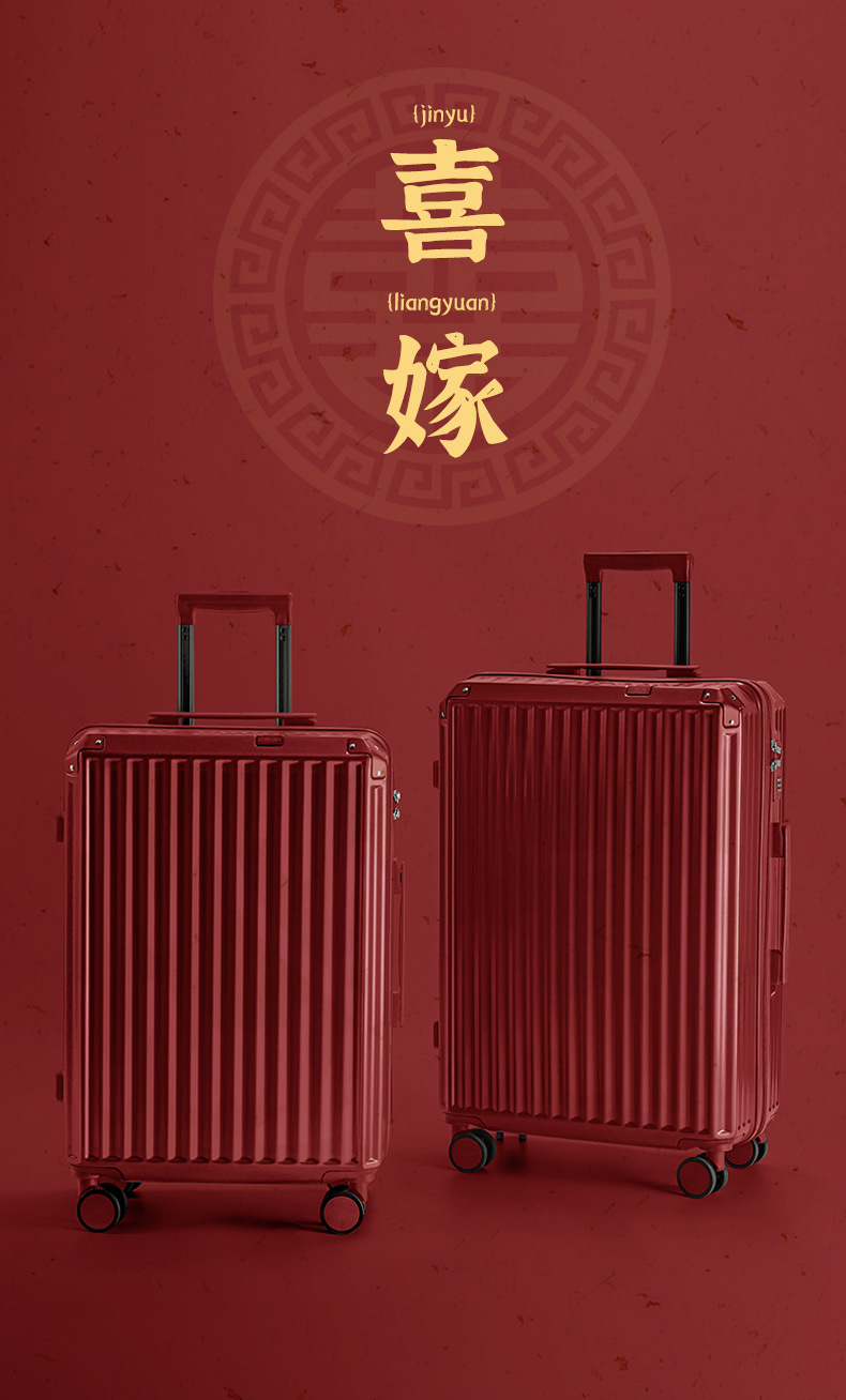 결혼식 수하물 호위 상자 여성 빨간 트롤리 케이스 신부 지참금 상자 결혼식 비밀번호 가죽 상자 24 인치 20스토어 가기