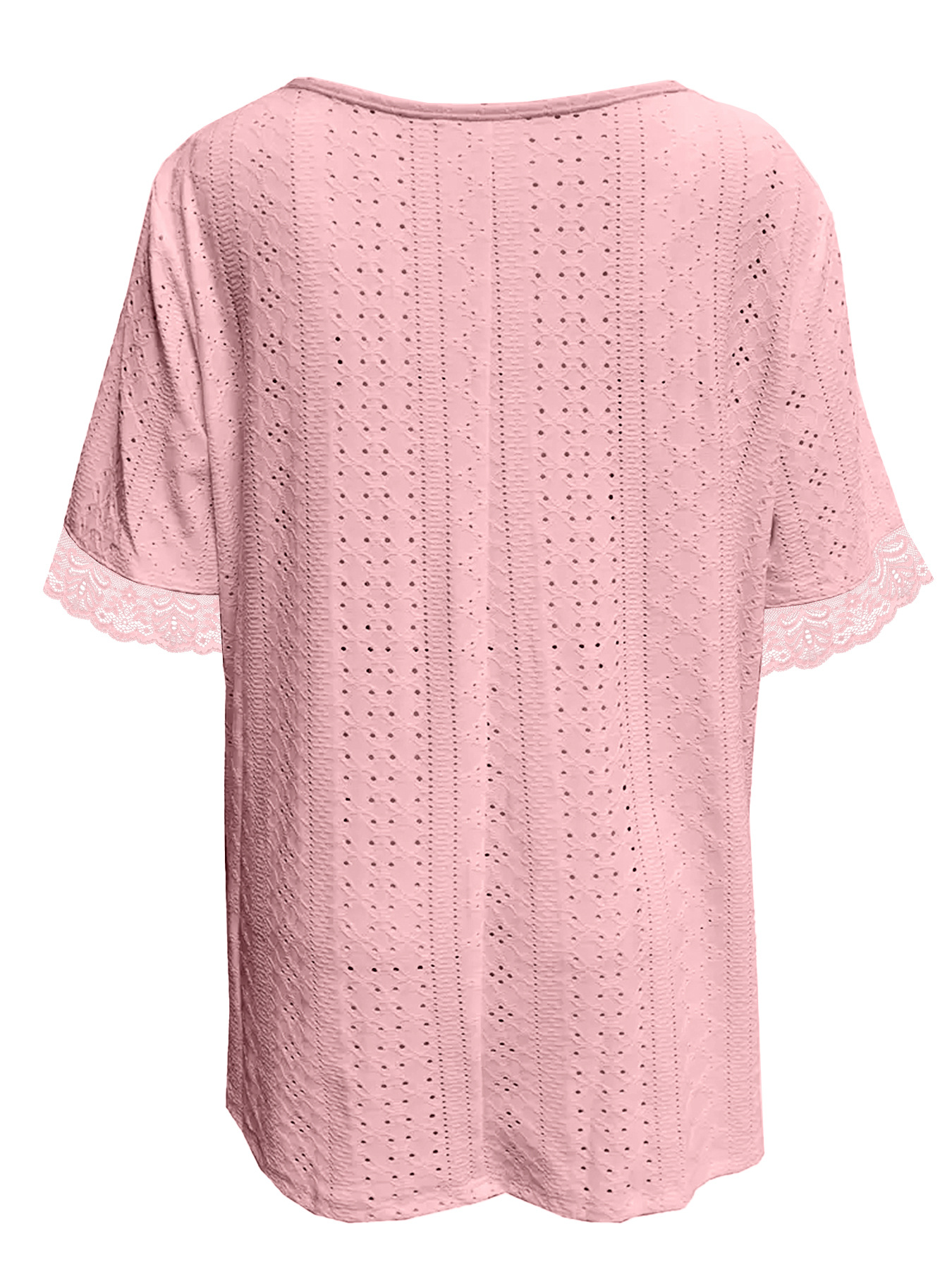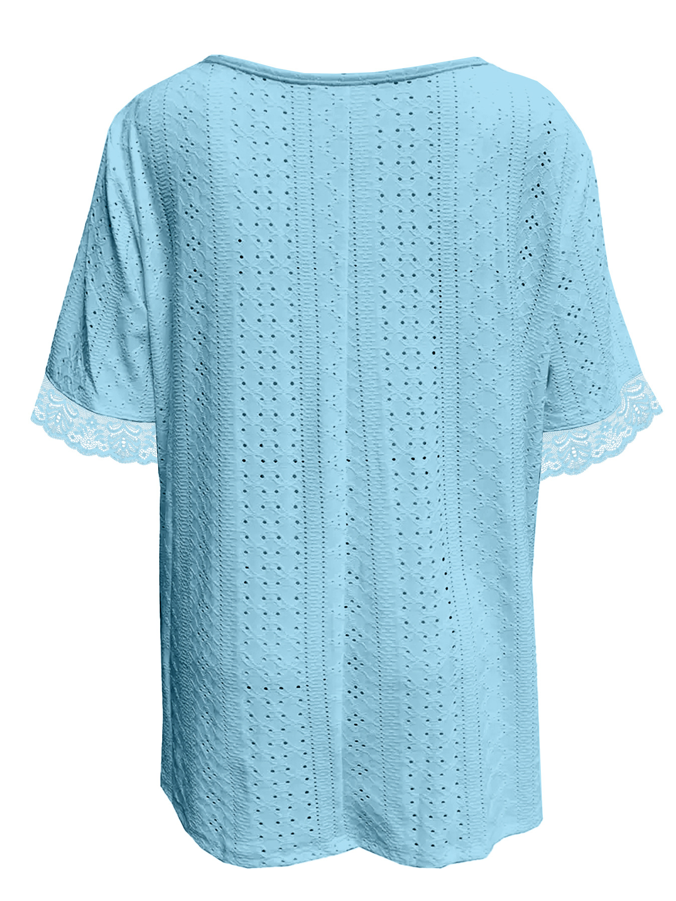 2025 유럽과 미국의 대외 무역 여성 v 넥 중공 니트 탑 레이스 스플 라이스 반팔 티셔츠 여성