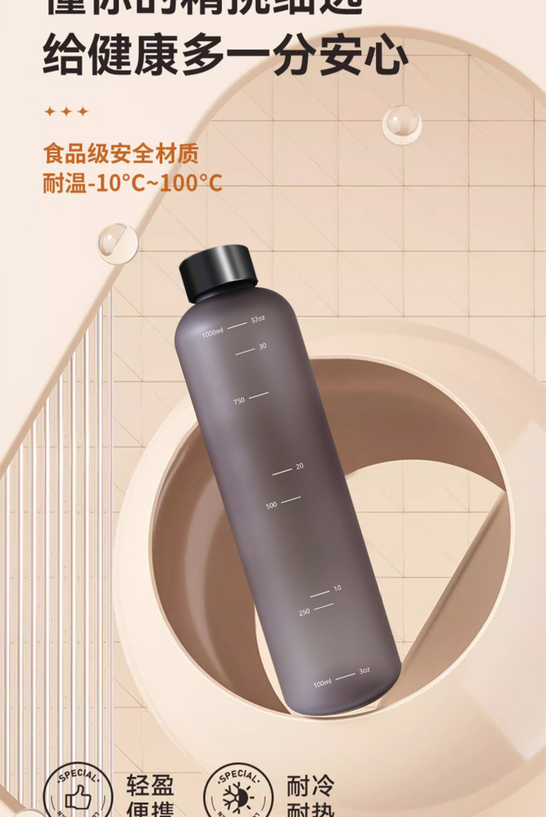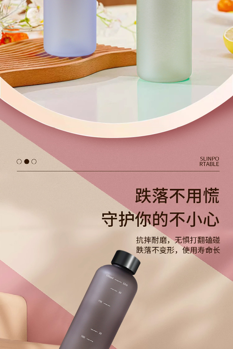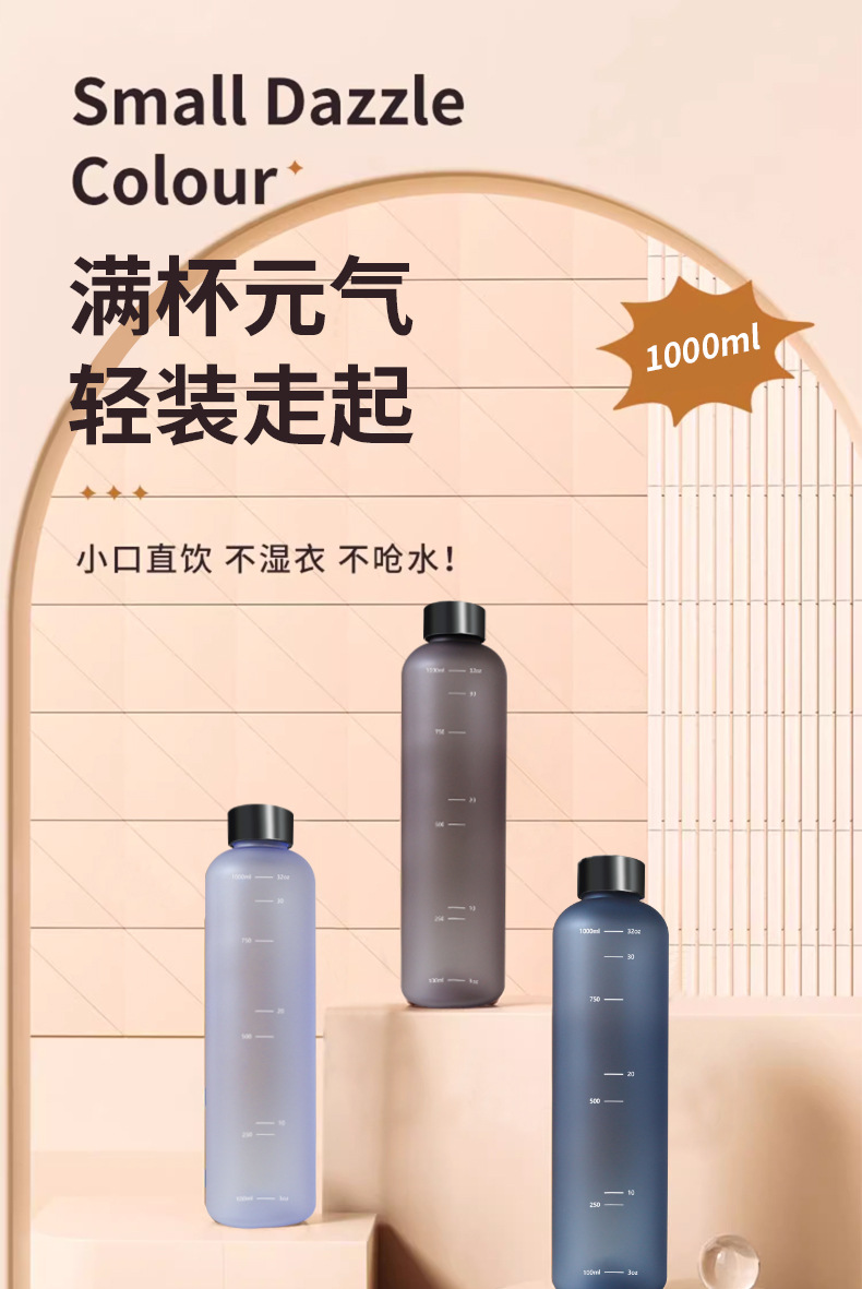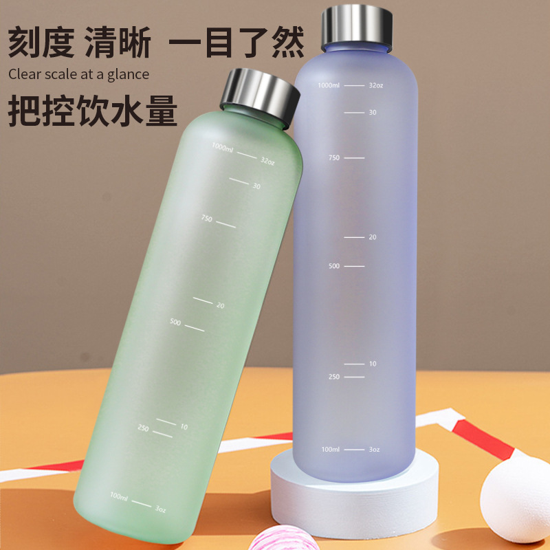 국경 간 1000ml 시간 눈금 물 컵 젖빛 그라데이션 32OZ 스테인레스 스틸 커버 공간 컵 스트레이트 영감 물 컵