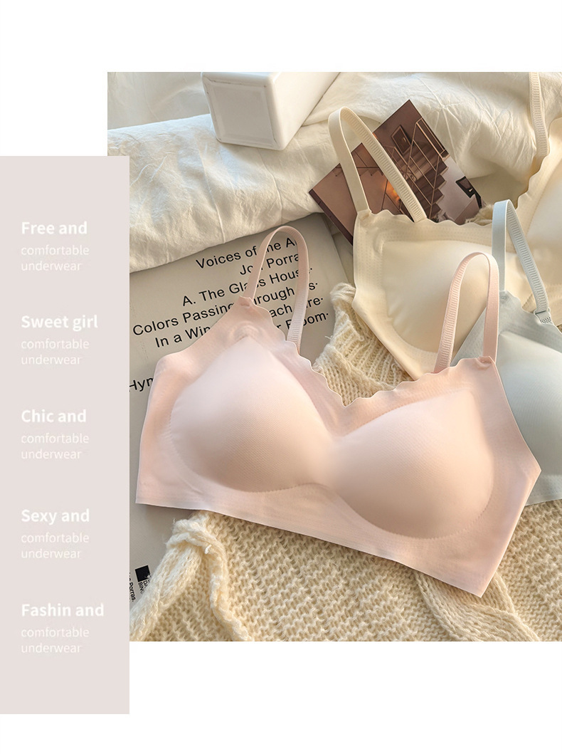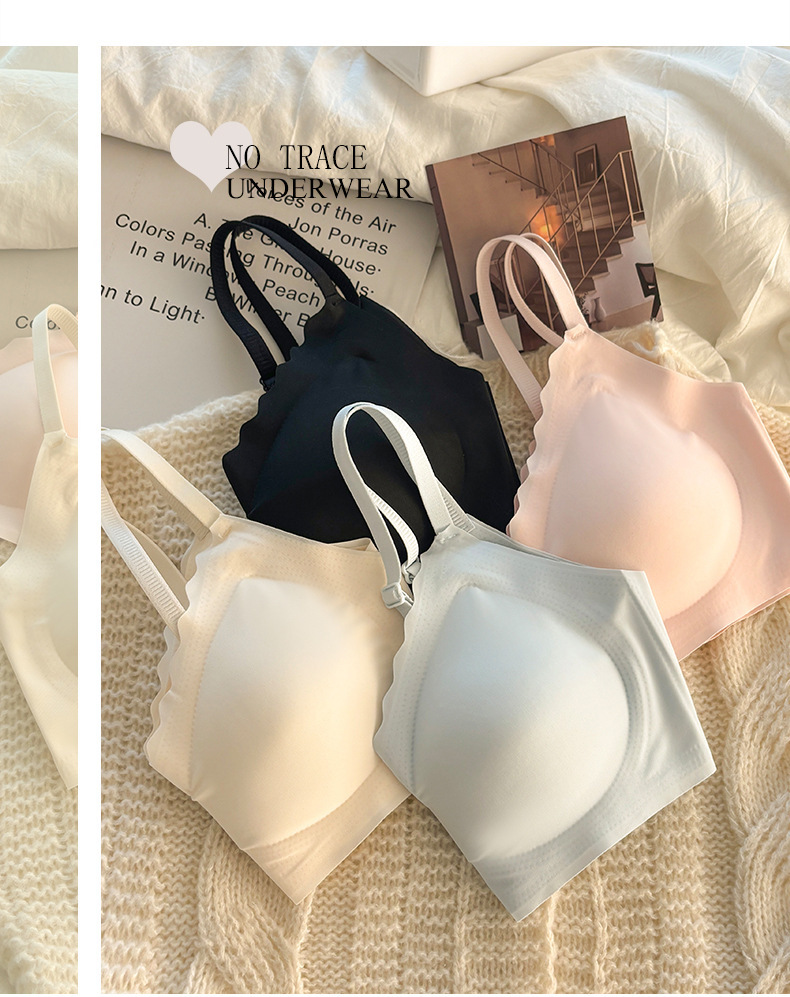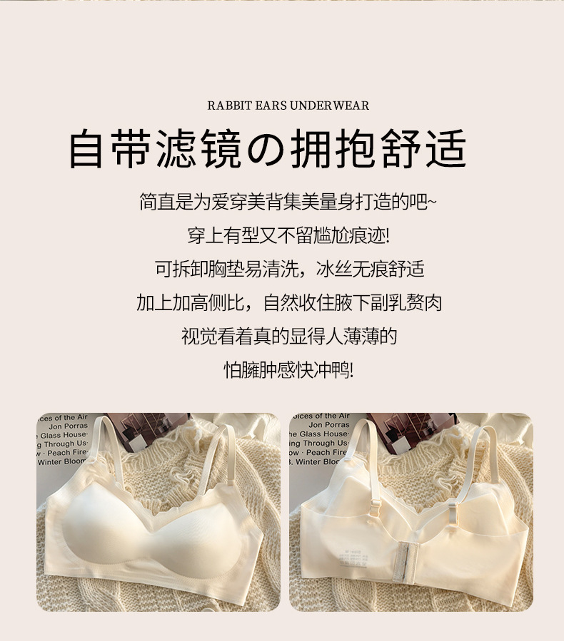 여름 얇은 얼음 실크 tracless 속옷 여성의 비 강철 반지 작은 가슴 수집 안티 처지 스포츠 아름다운 뒷브라 젤리스토어 가기