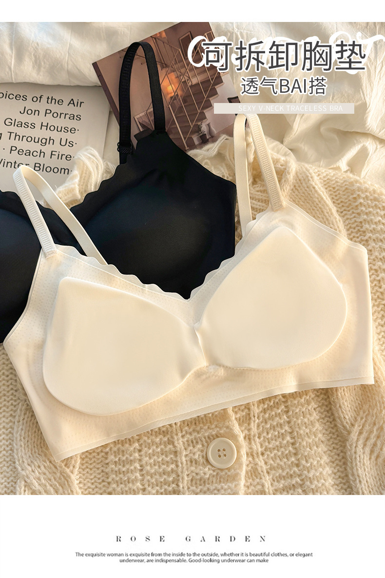 여름 얇은 얼음 실크 tracless 속옷 여성의 비 강철 반지 작은 가슴 수집 안티 처지 스포츠 아름다운 뒷브라 젤리