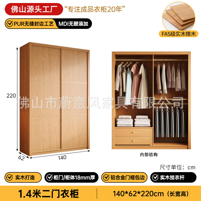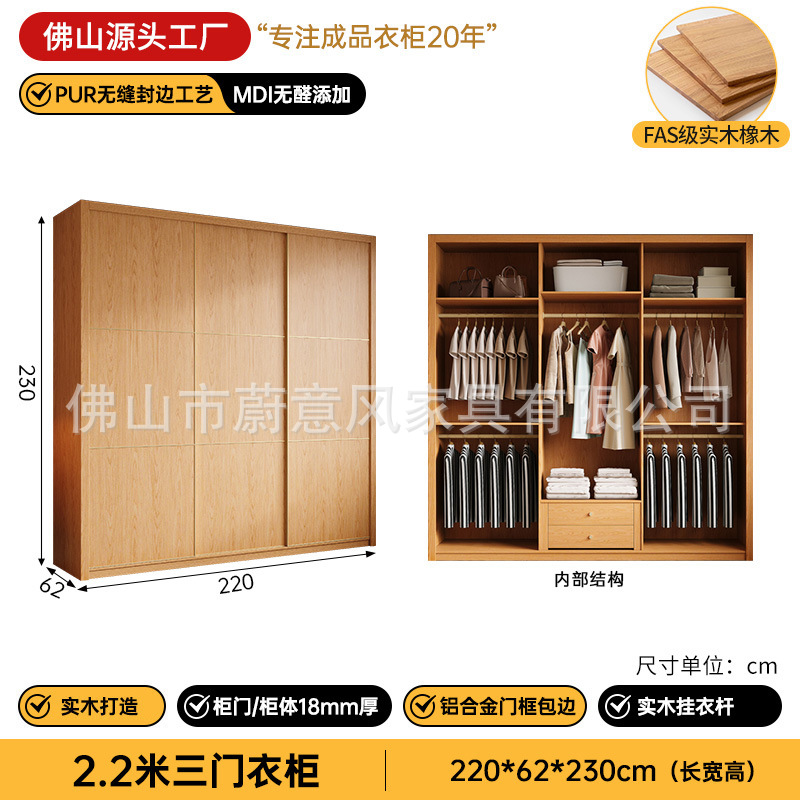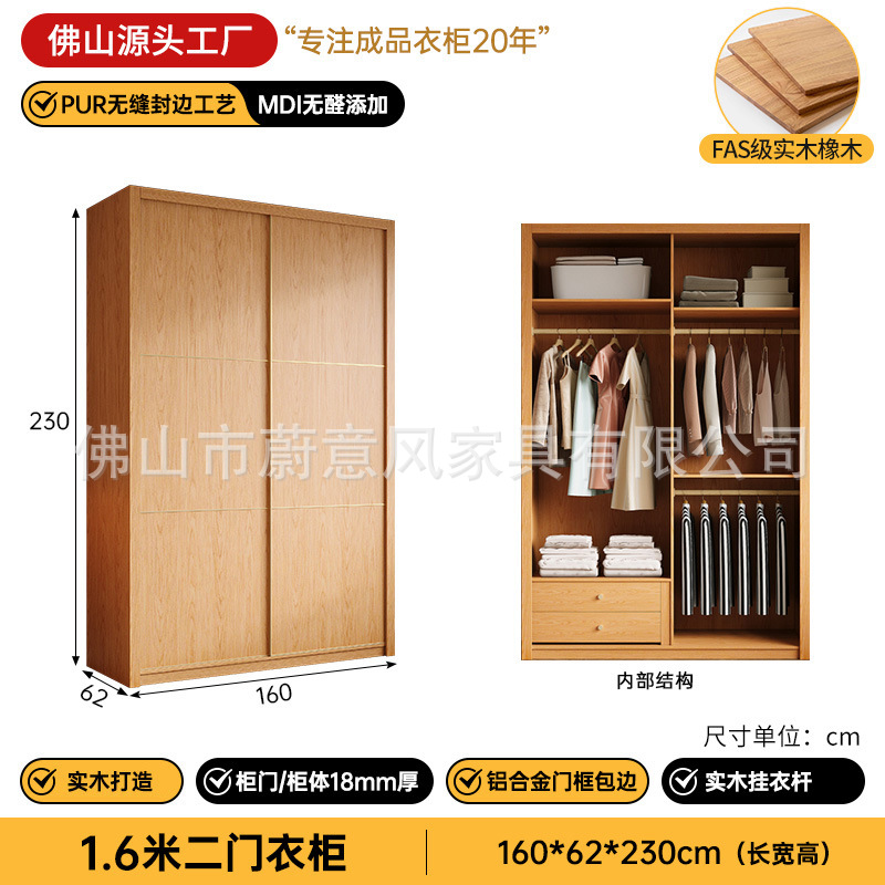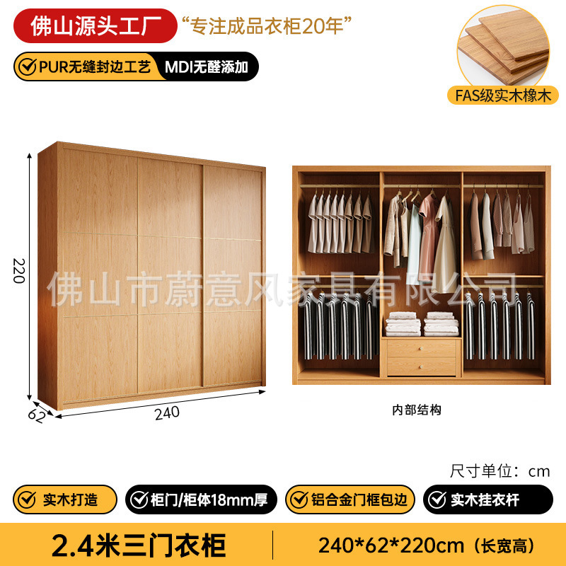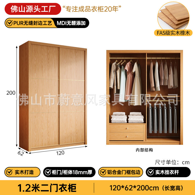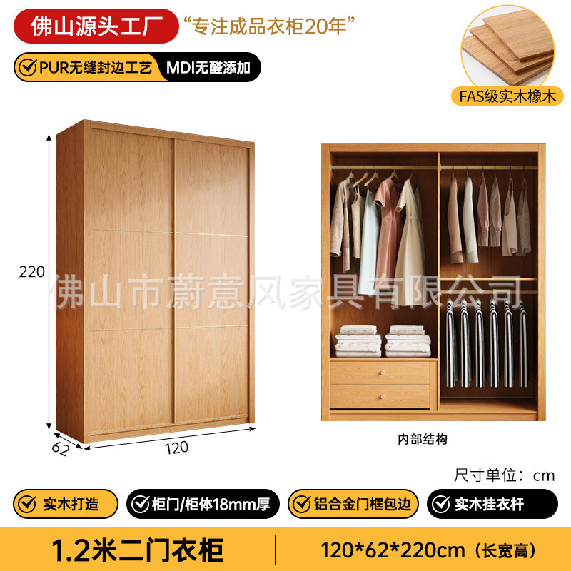 가정용 침실을 위한 오크 푸시 도어 옷장 작은 슬라이딩 도어 캐비닛 현대적인 미니멀리스트 스타일 슬라이딩 도어 완성 옷장