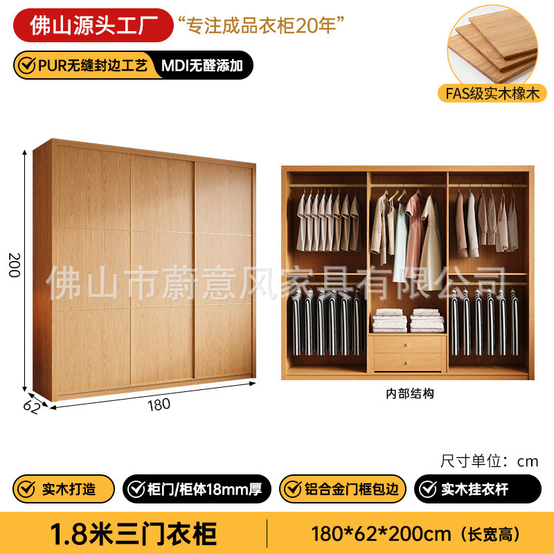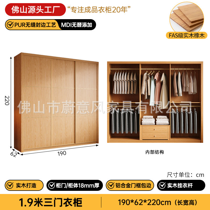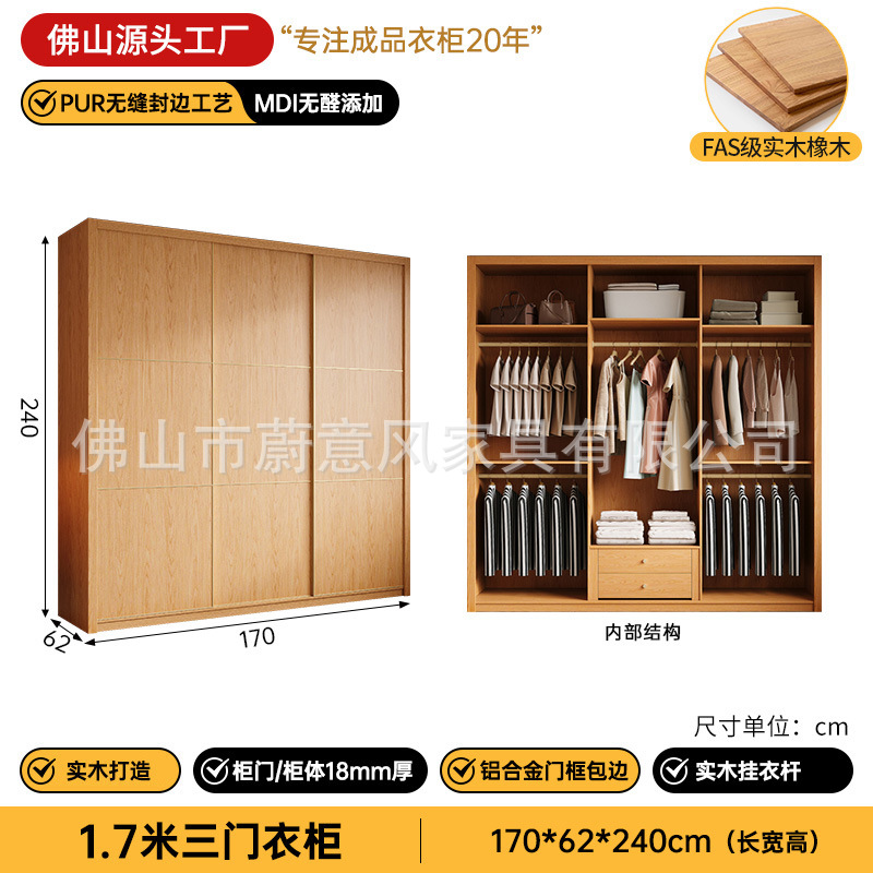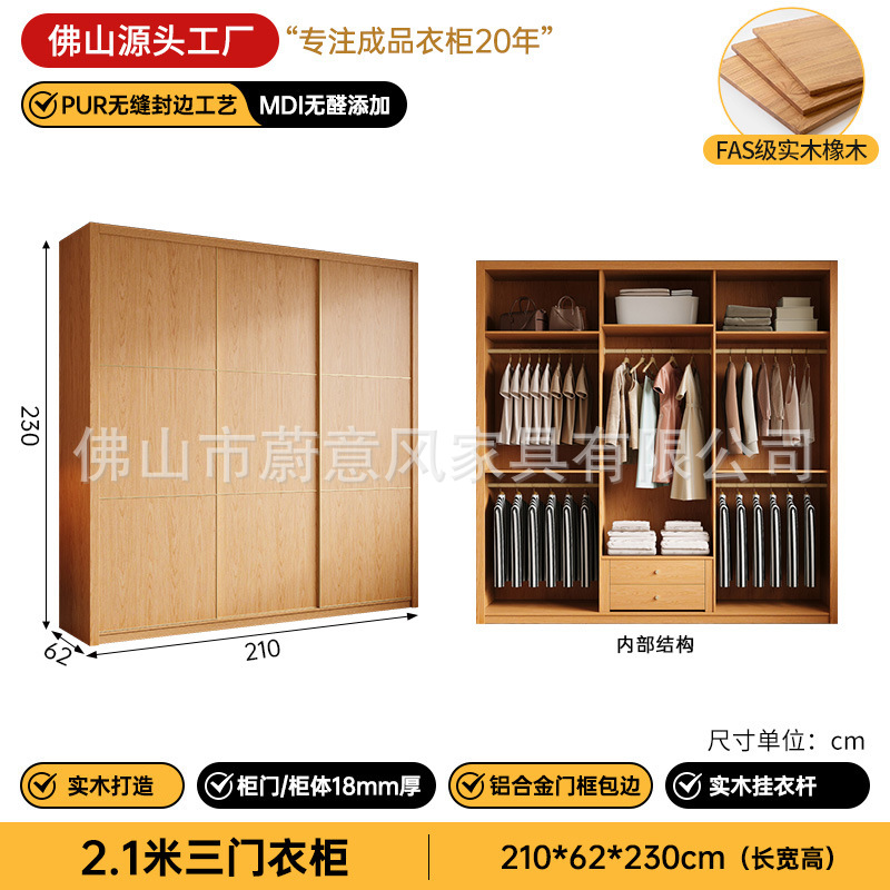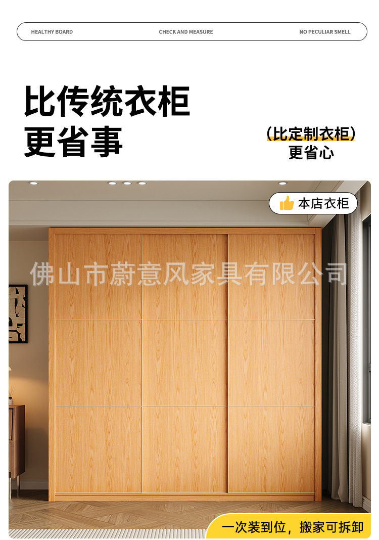 가정용 침실을 위한 오크 푸시 도어 옷장 작은 슬라이딩 도어 캐비닛 현대적인 미니멀리스트 스타일 슬라이딩 도어 완성 옷장