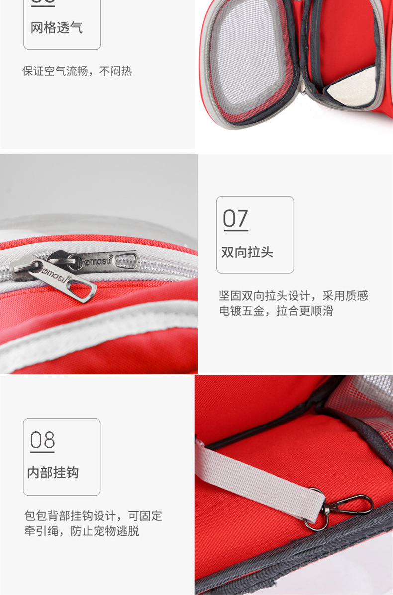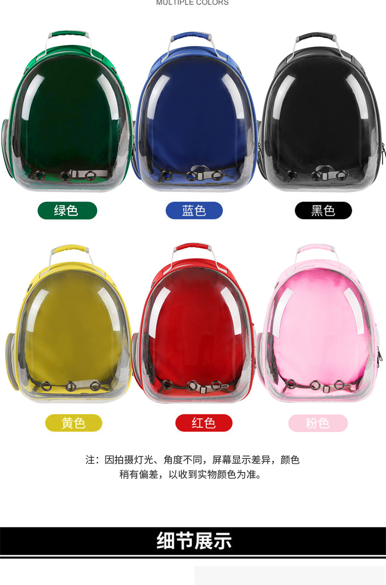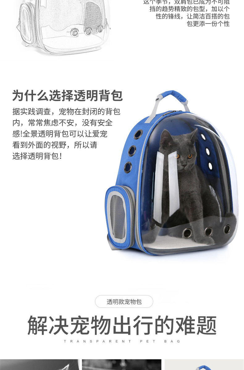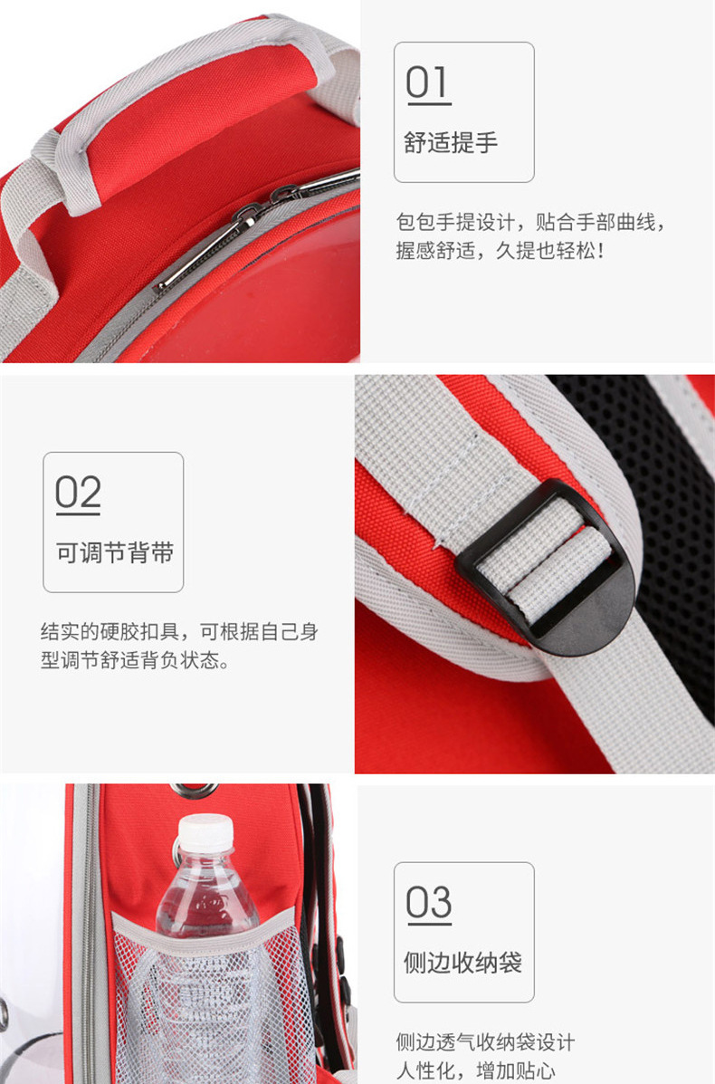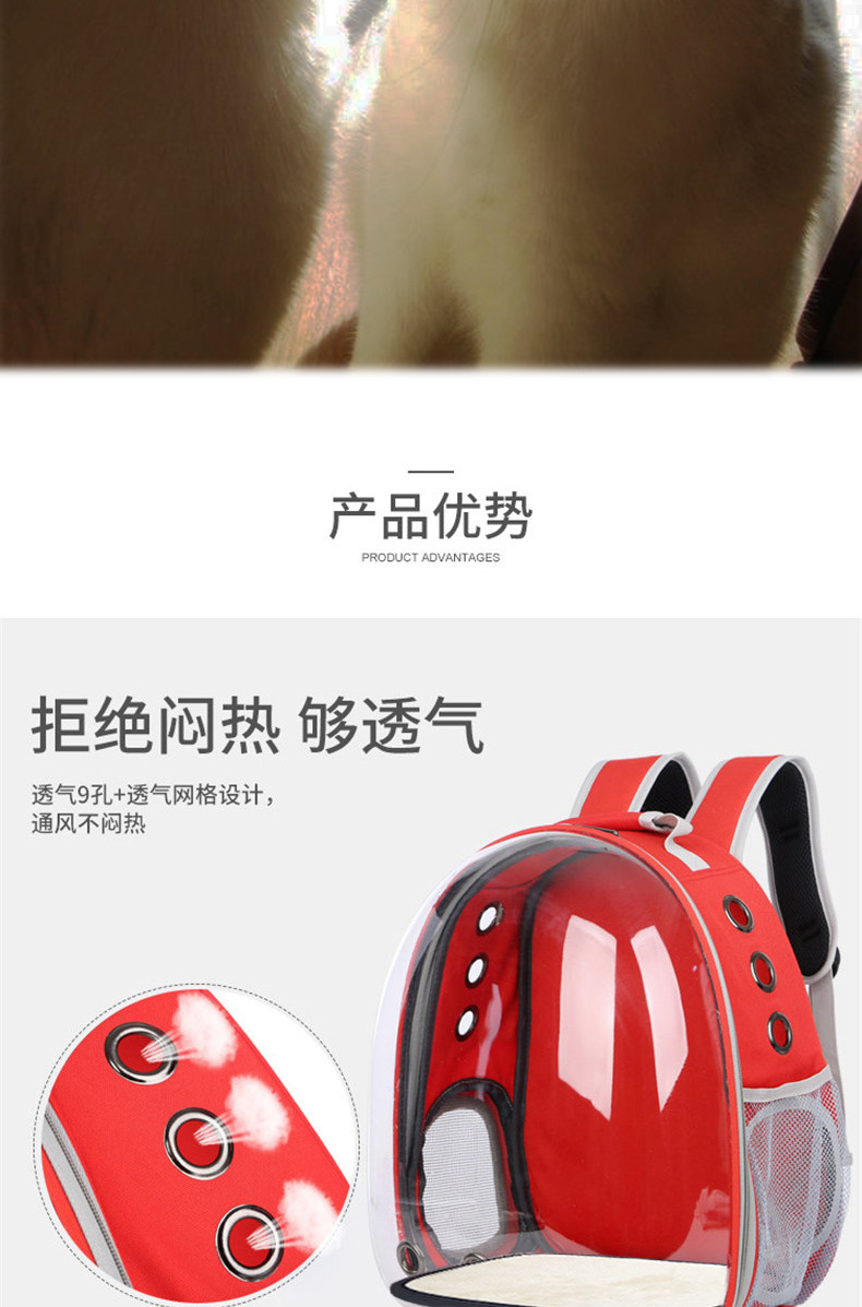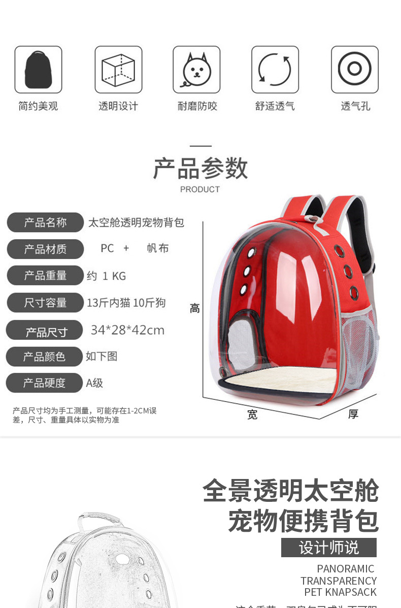 产品特点:全景透明大视野,让爱宠有安全感。安全舒适透气摆脱闷热。