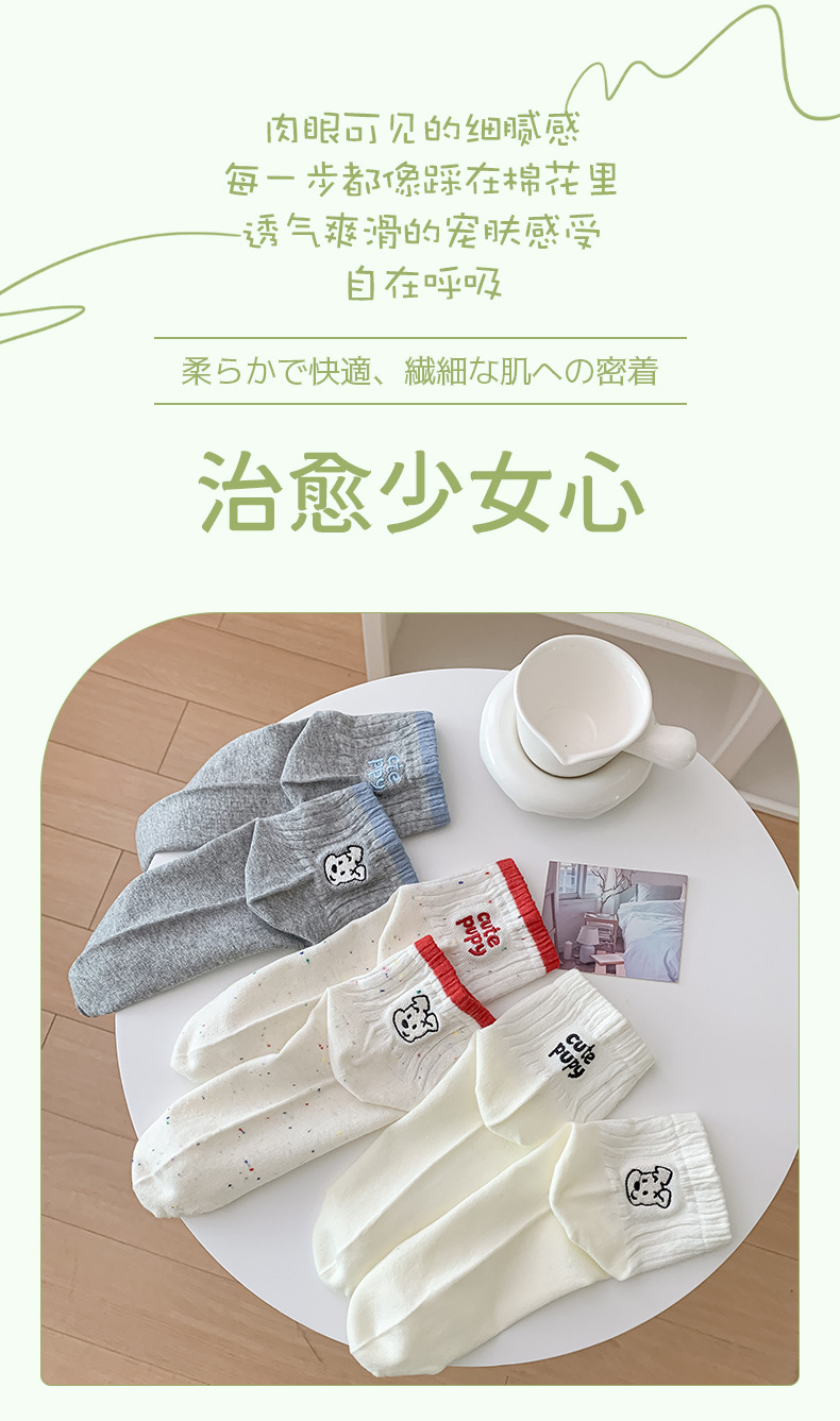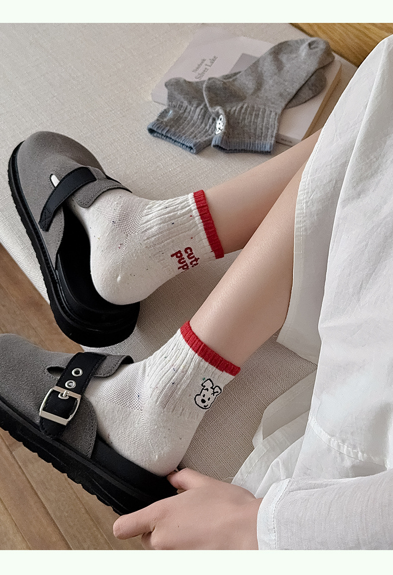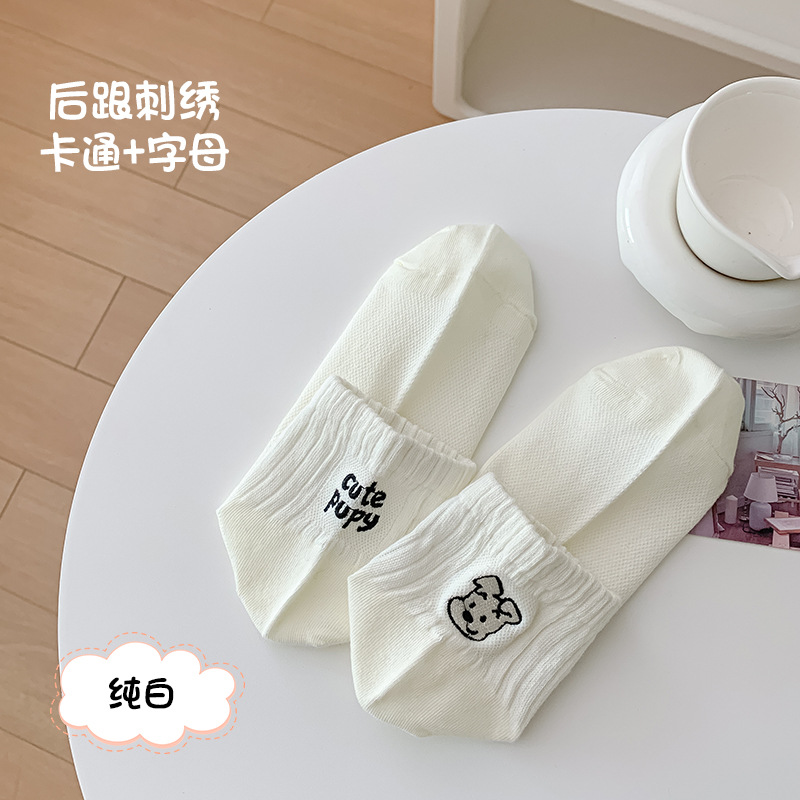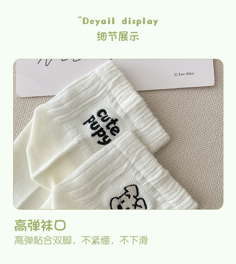 흰색 양말 여성 짧은 양말 여름 얇은 귀여운 만화 일본 ins 유행 강아지 아이디어 거즈 메쉬 통기성