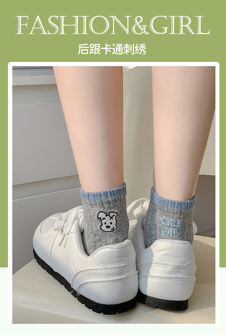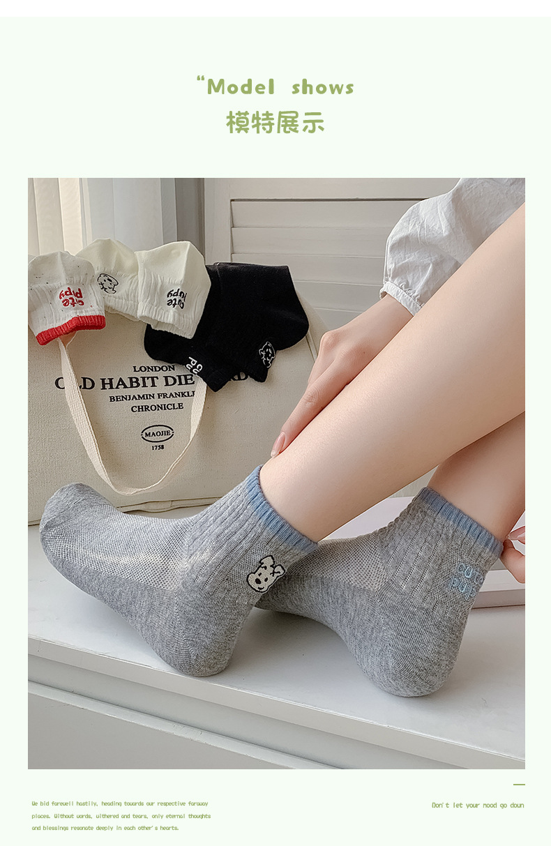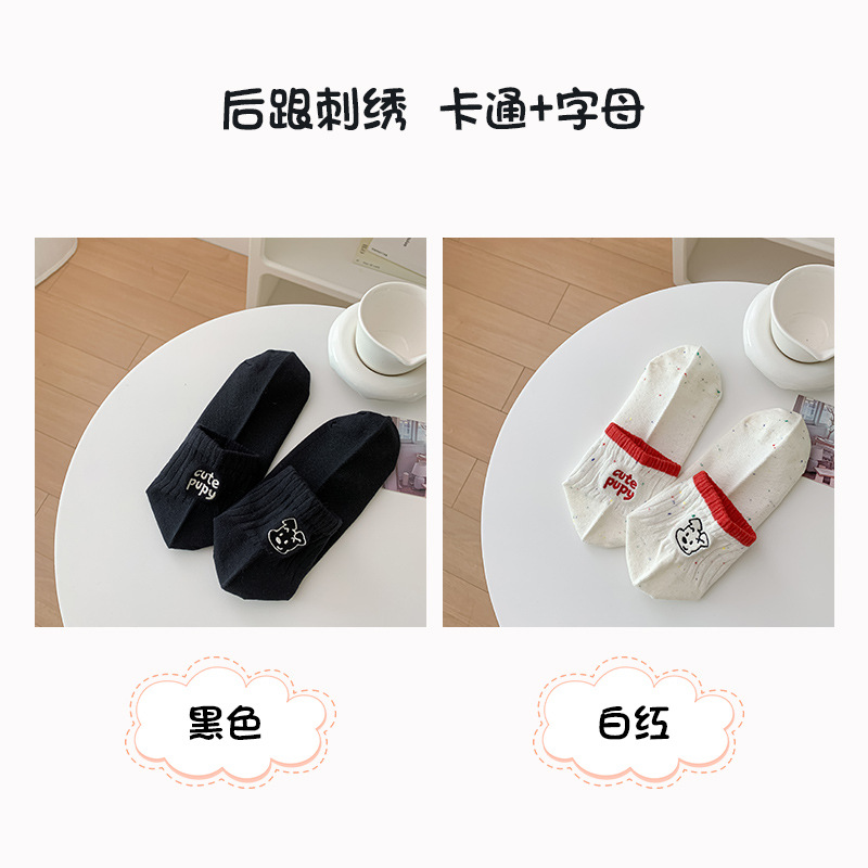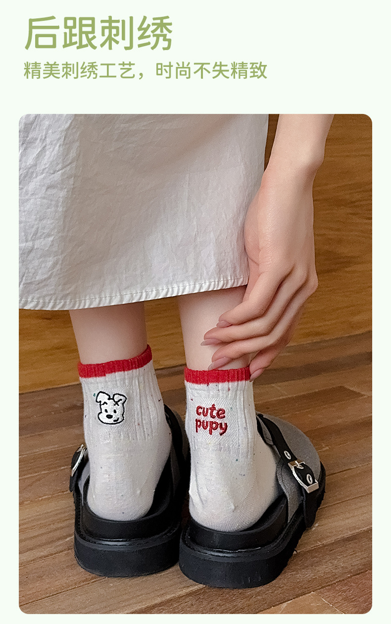 흰색 양말 여성 짧은 양말 여름 얇은 귀여운 만화 일본 ins 유행 강아지 아이디어 거즈 메쉬 통기성