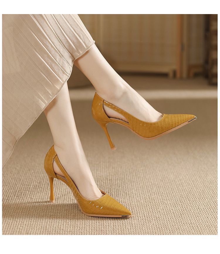 크로스보더 속이 빈 하이힐 2026 봄 여름 신상 패션 샌들 포인티드 토 스틸레토 사이드 컷아웃 얕은 입구 싱글 슈즈 여성 도매스토어 가기