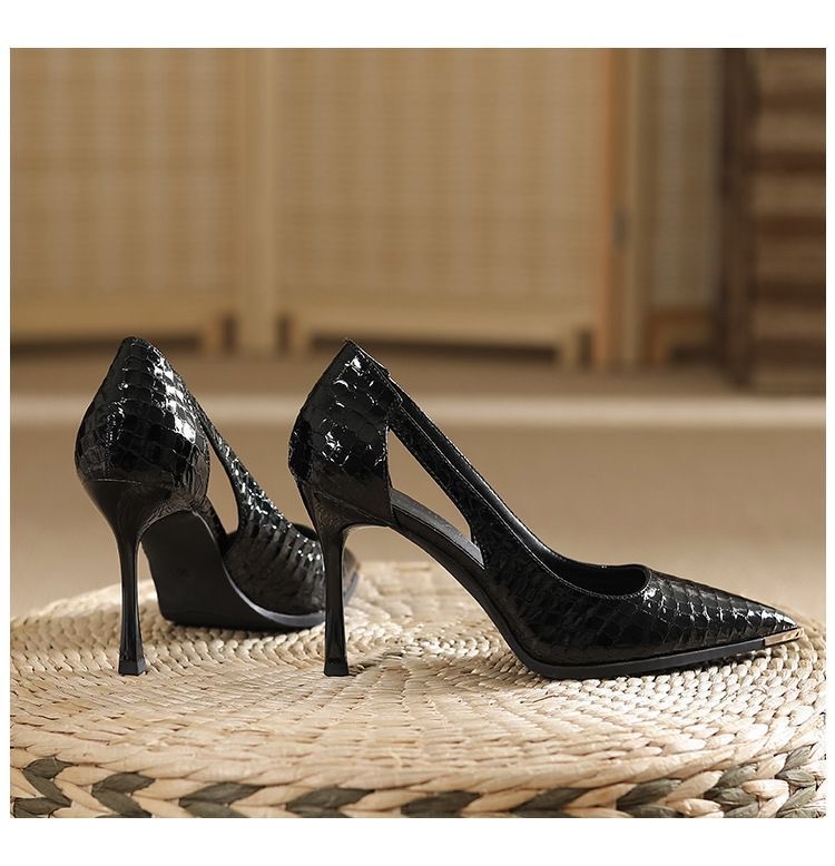 크로스보더 속이 빈 하이힐 2026 봄 여름 신상 패션 샌들 포인티드 토 스틸레토 사이드 컷아웃 얕은 입구 싱글 슈즈 여성 도매