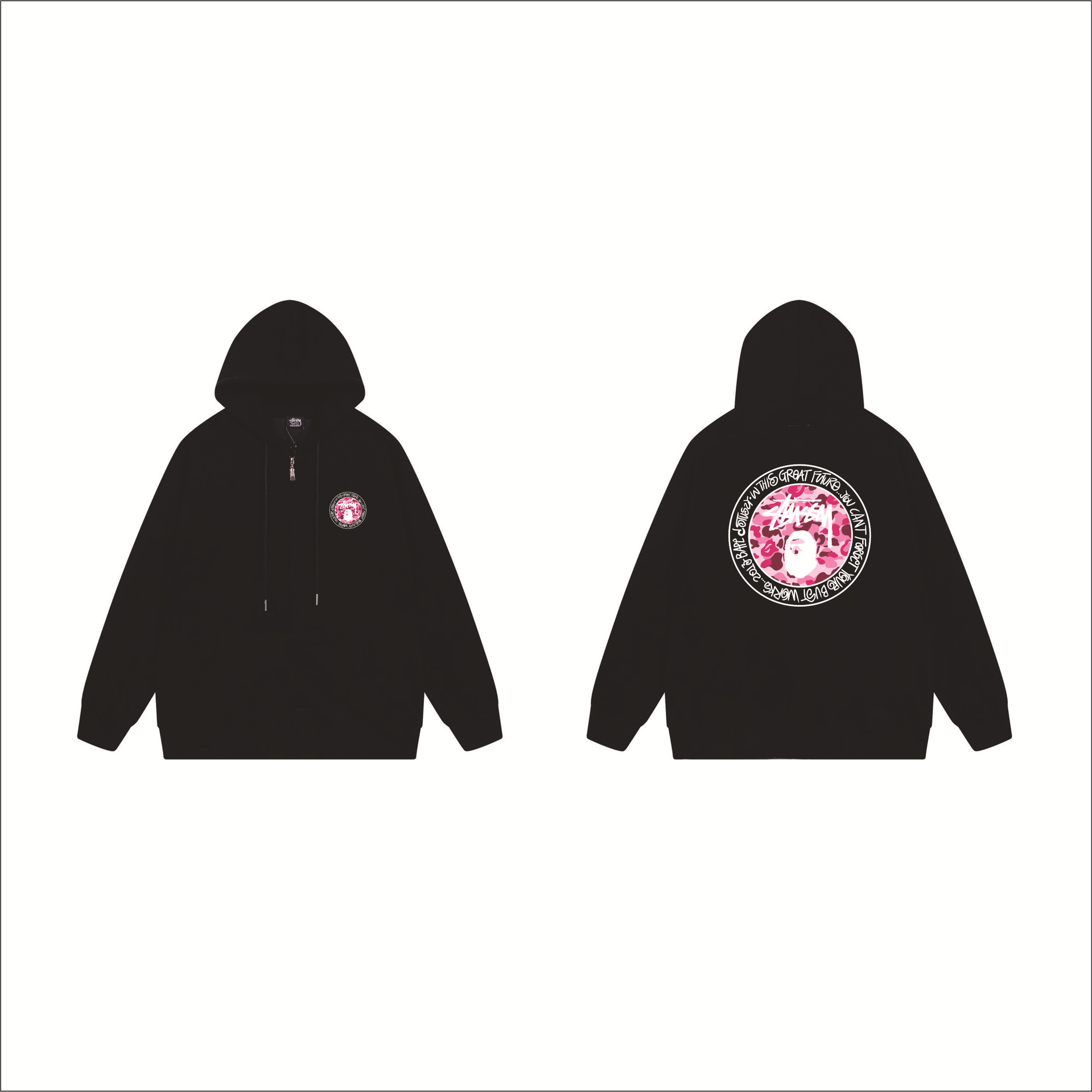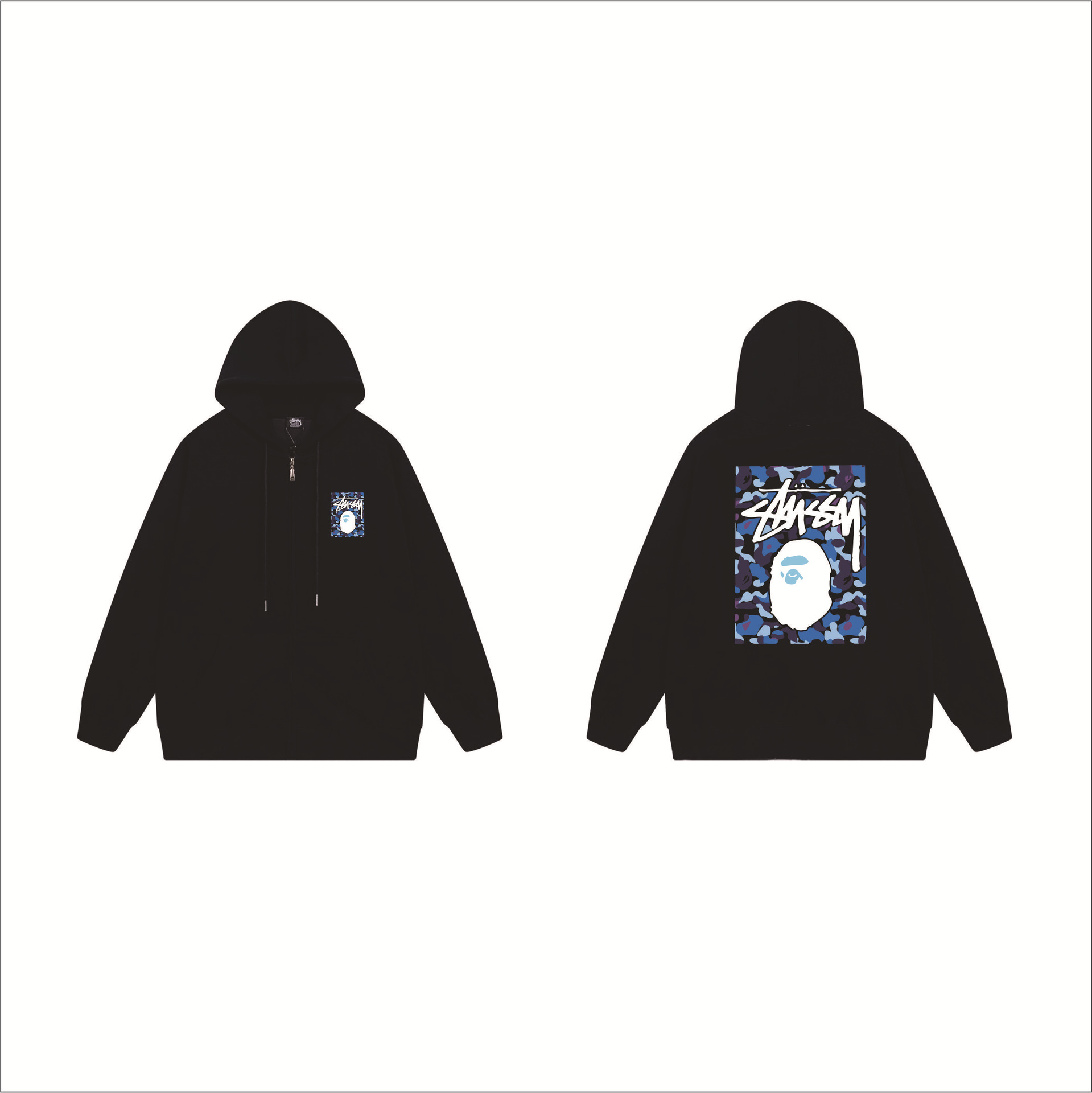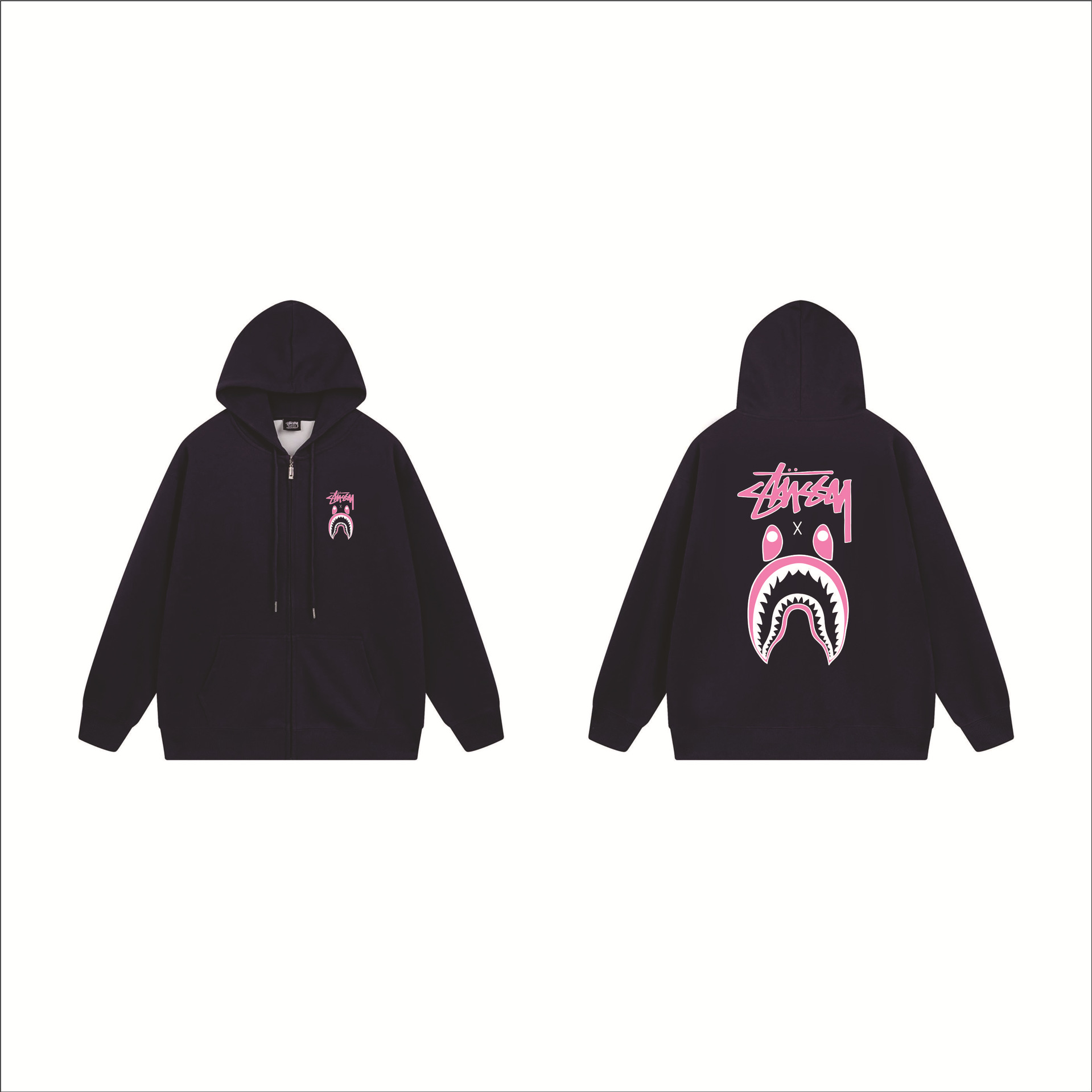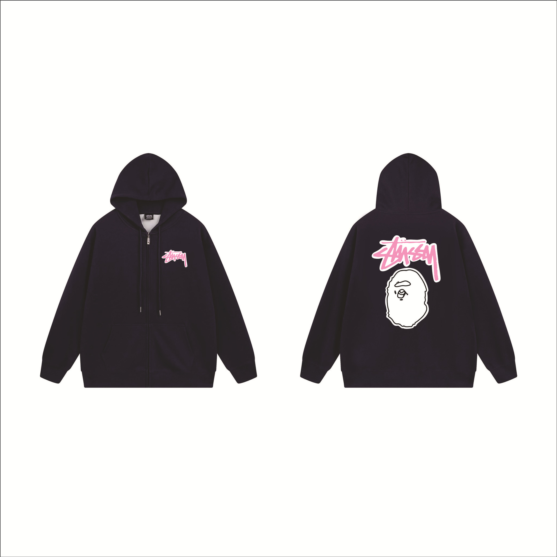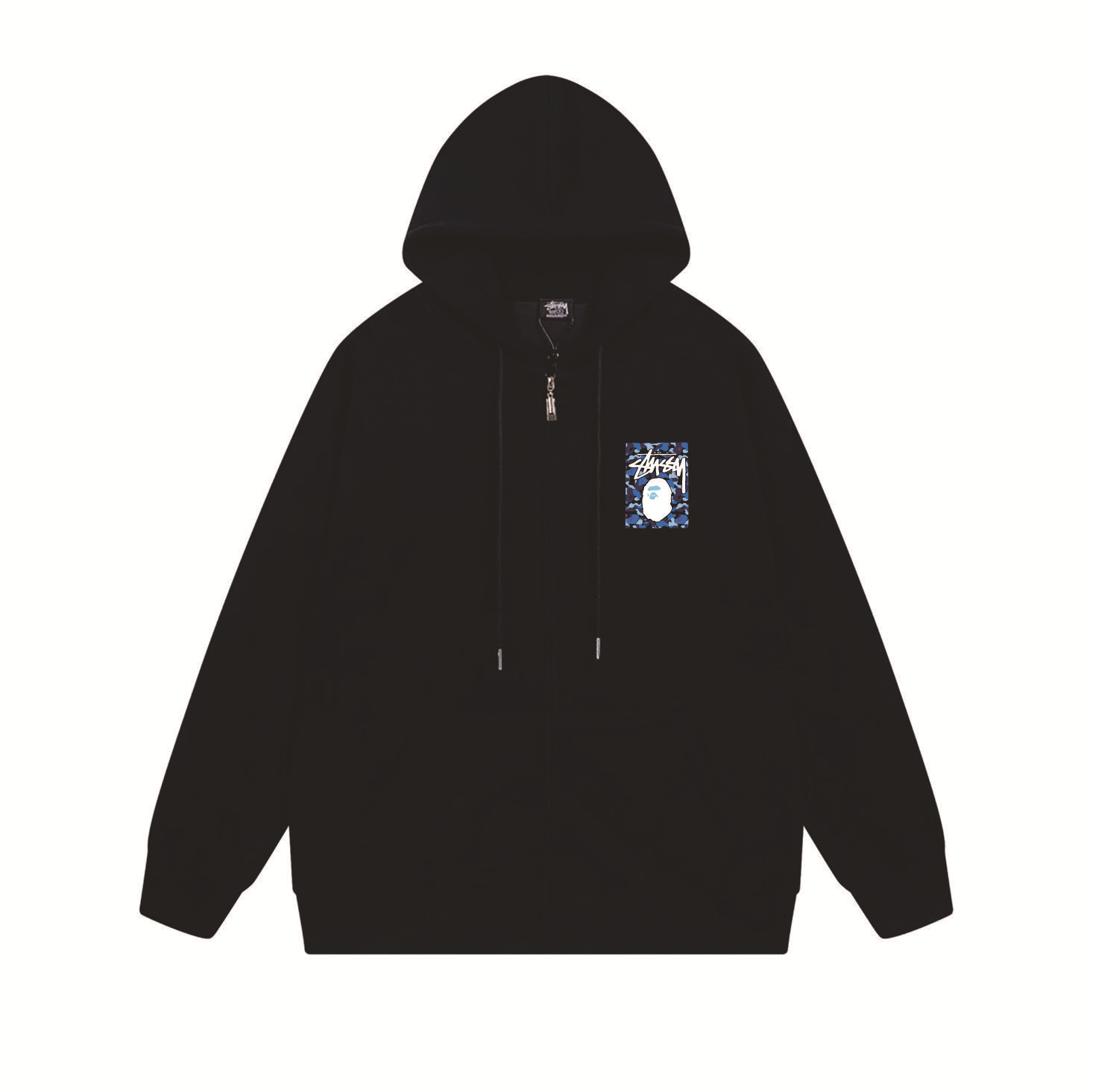 크로스보더 STU 스투자 브랜드 문자 패턴 프린트 블랙 8자 지퍼 후드 티셔츠 가을/겨울 남녀공용스토어 가기