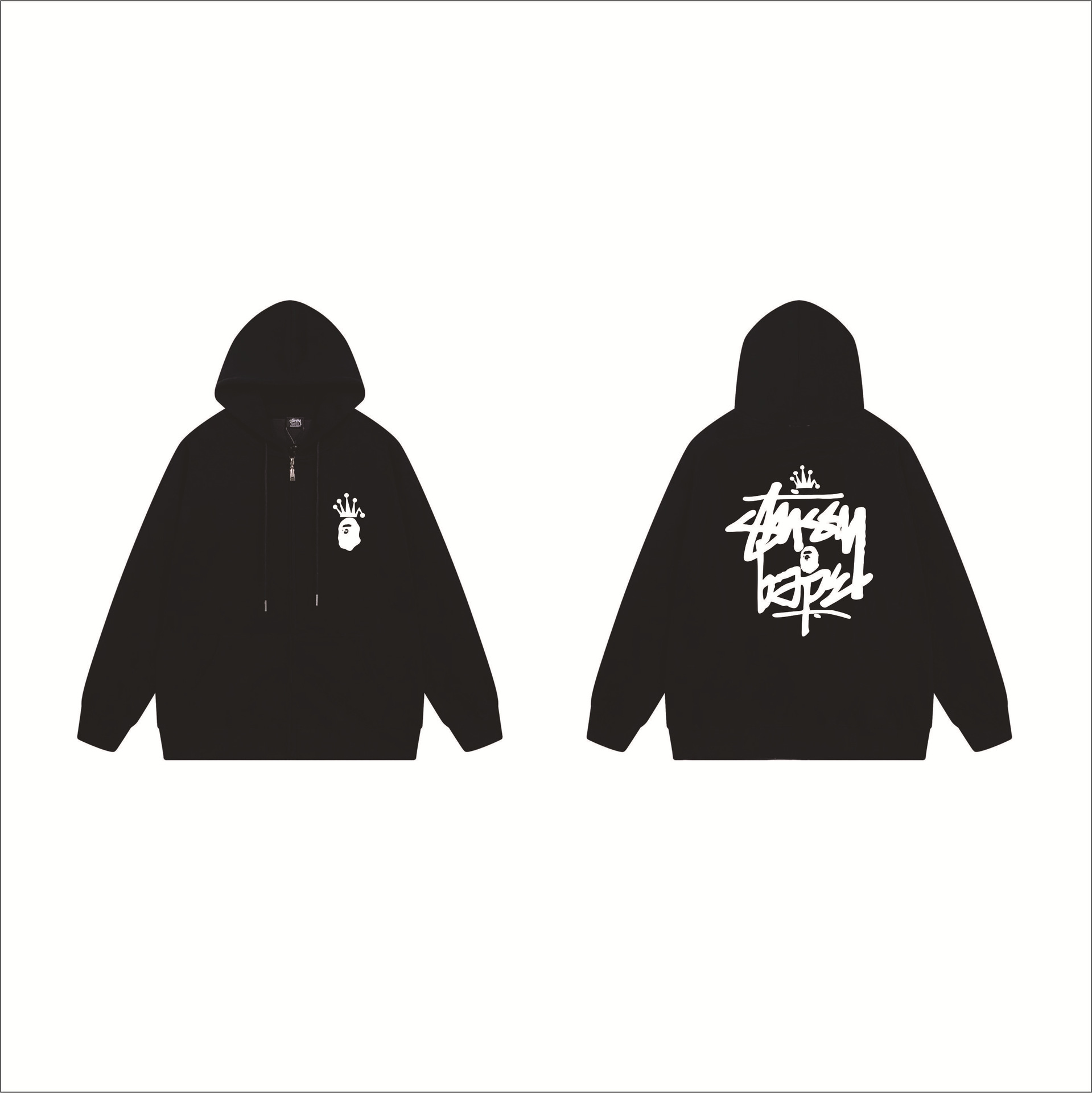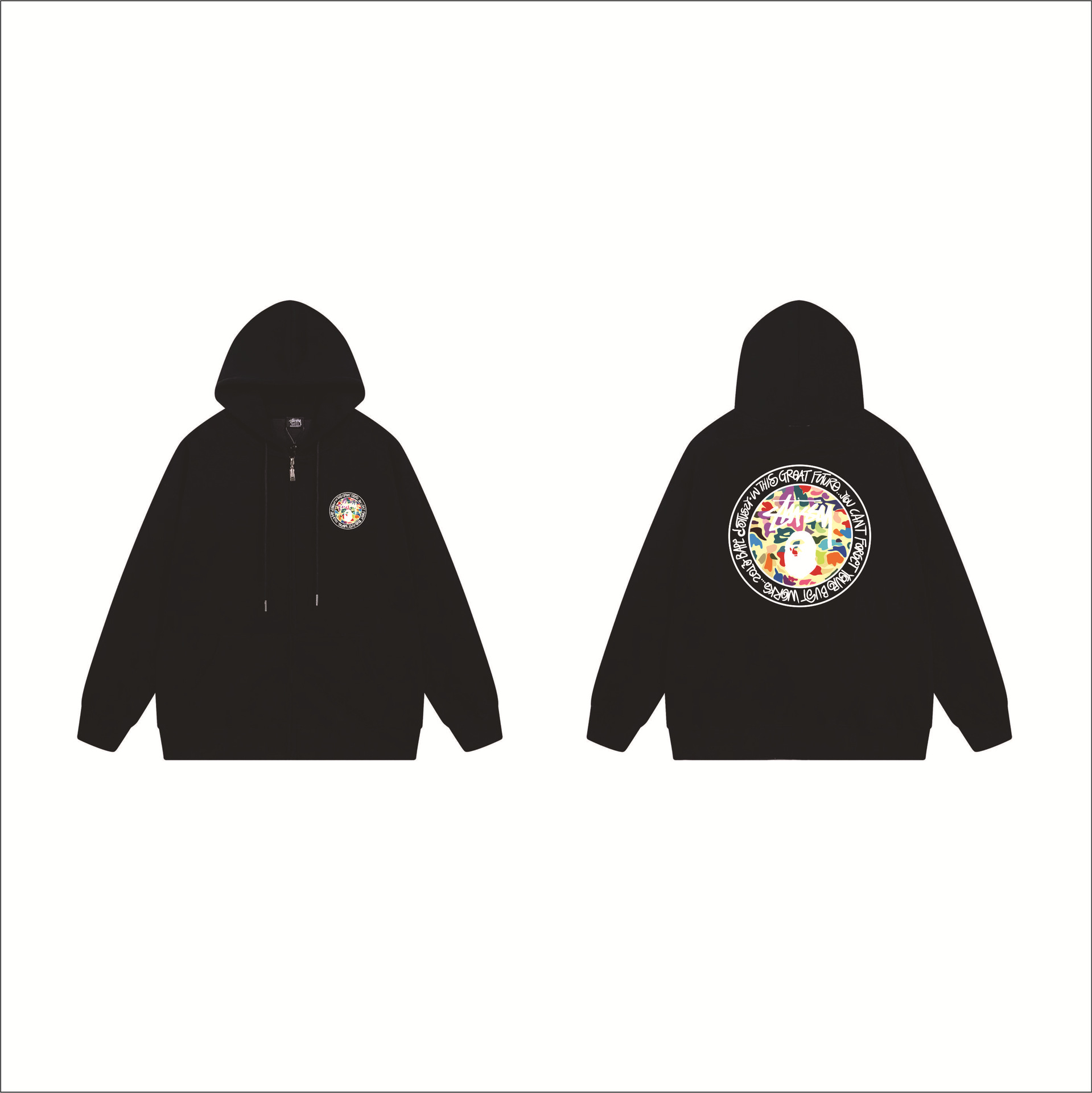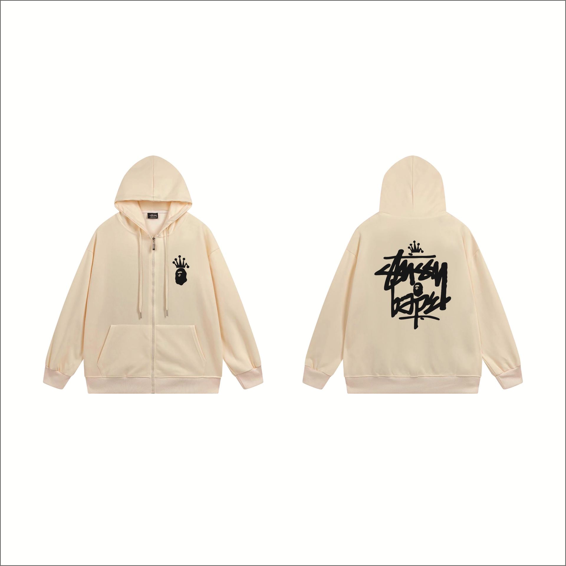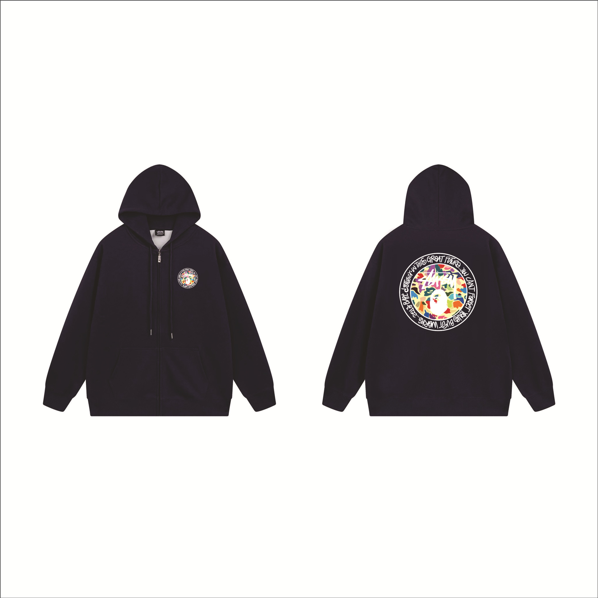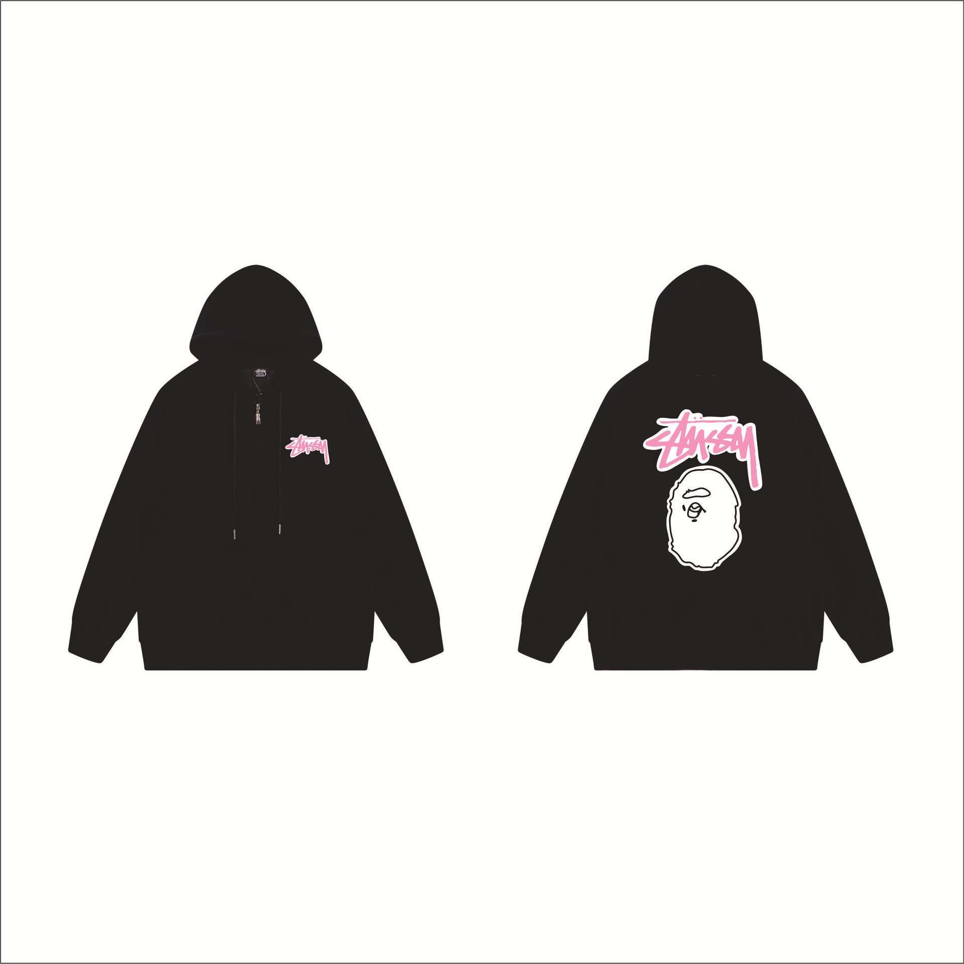 크로스보더 STU 스투자 브랜드 문자 패턴 프린트 블랙 8자 지퍼 후드 티셔츠 가을/겨울 남녀공용스토어 가기