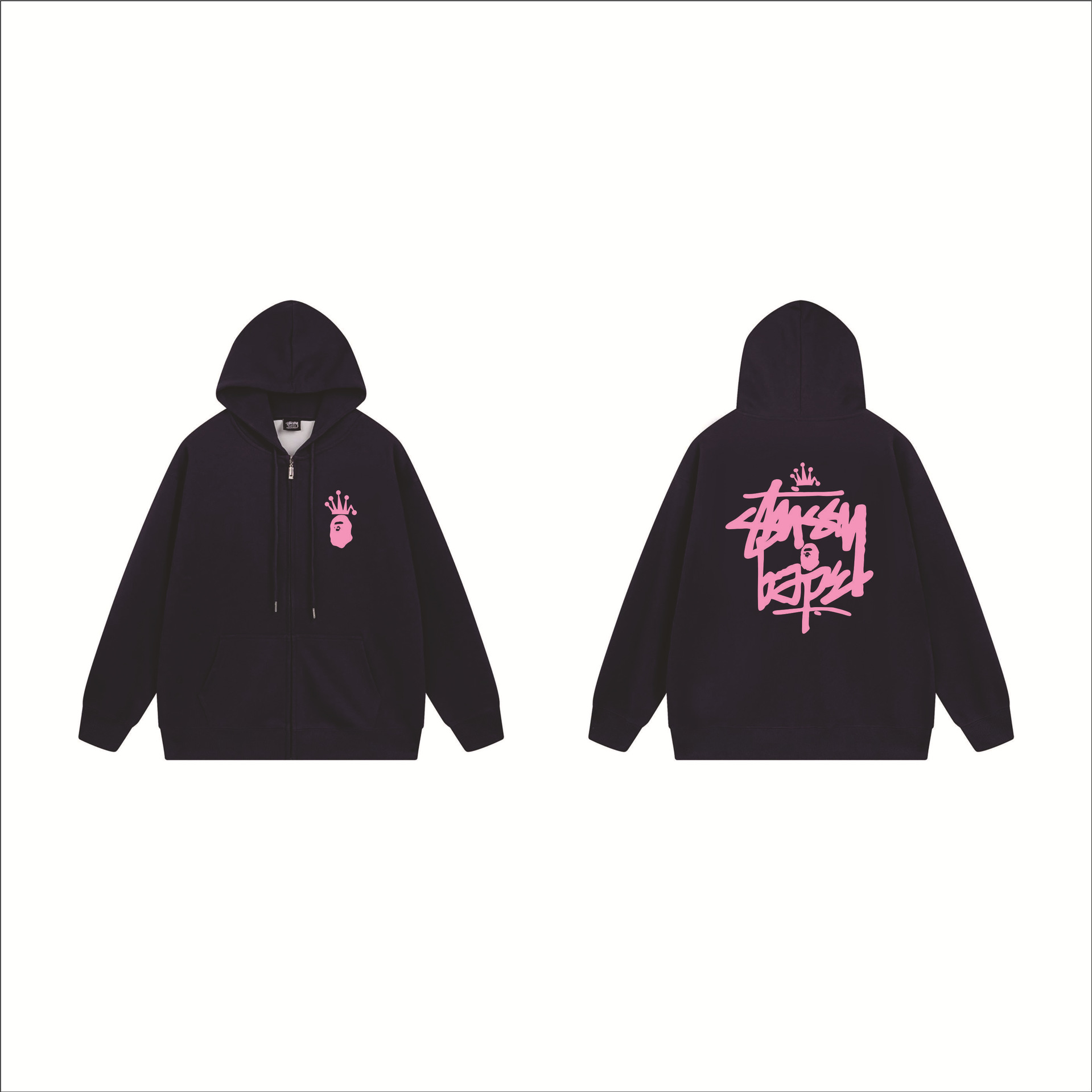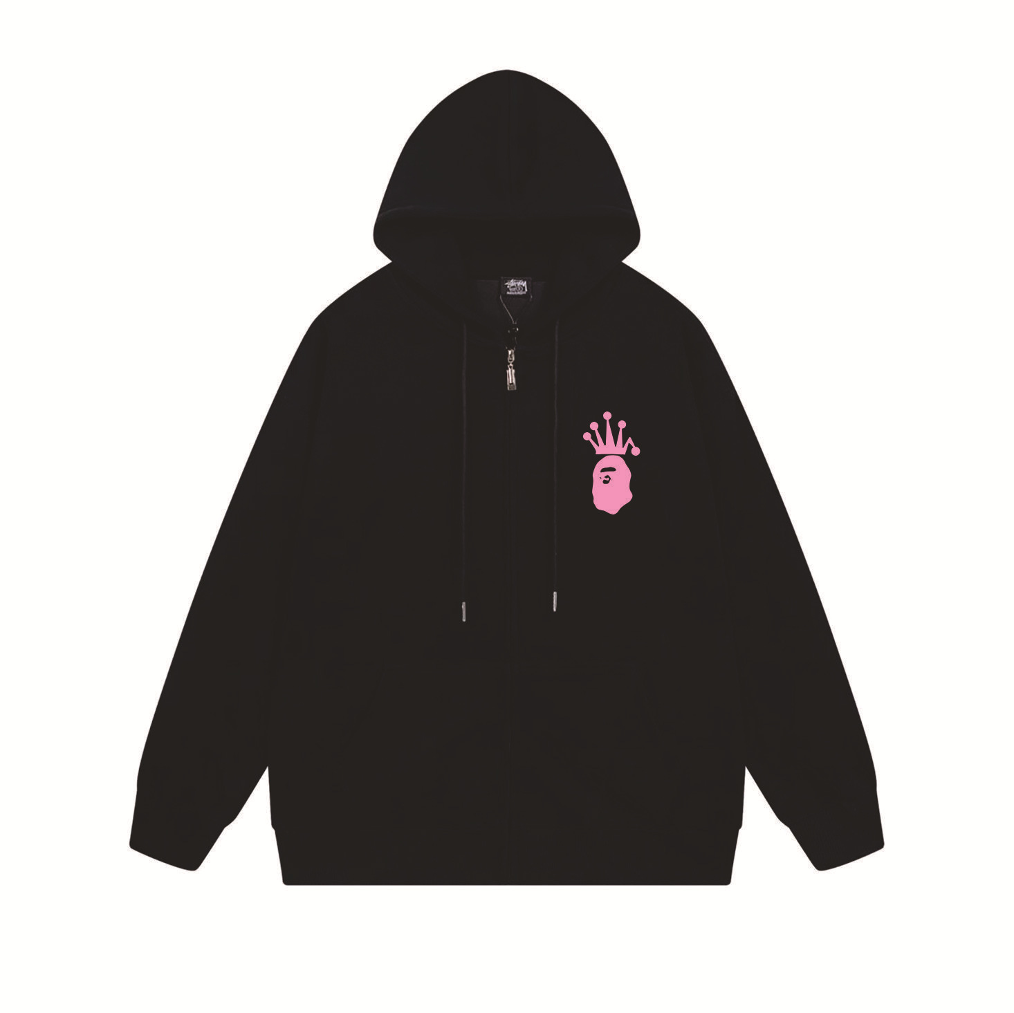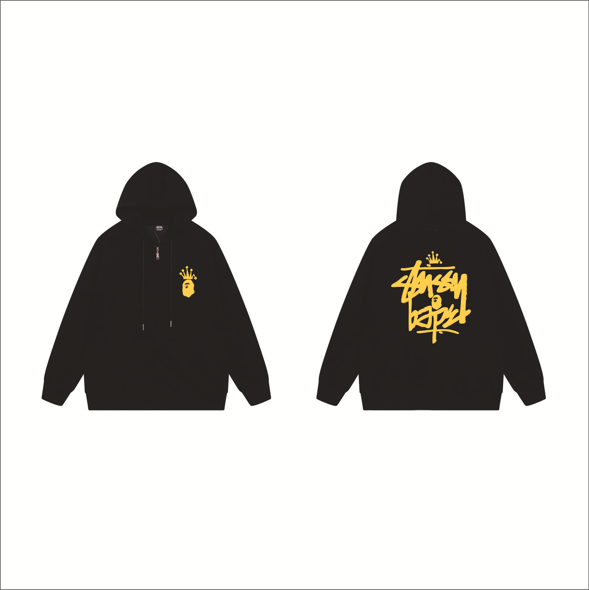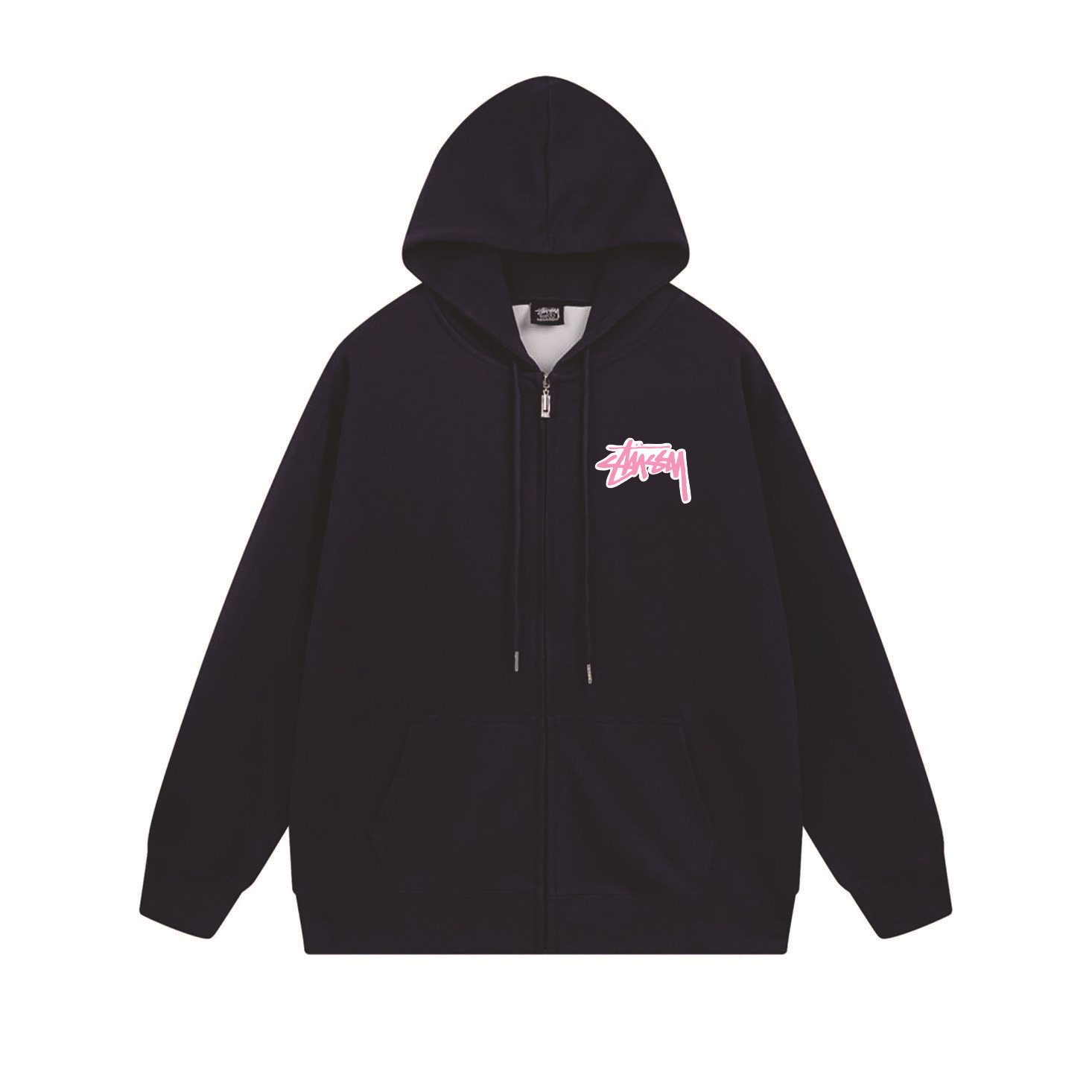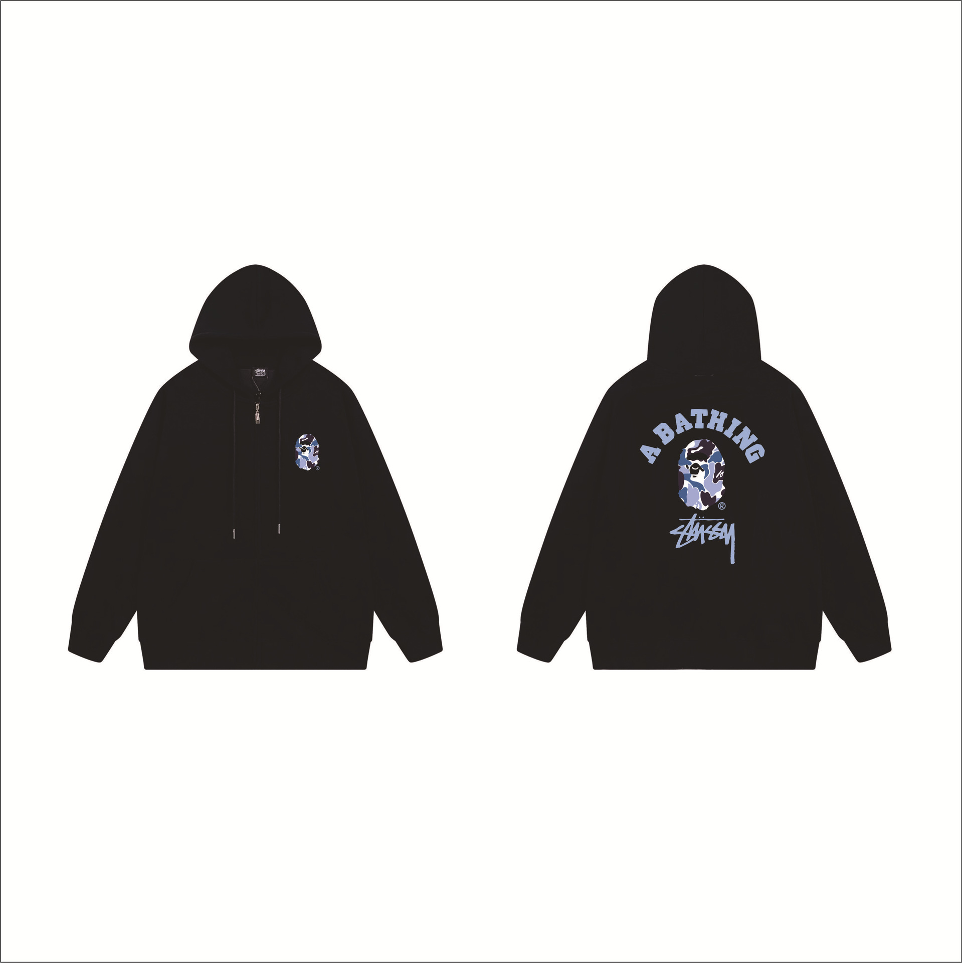 크로스보더 STU 스투자 브랜드 문자 패턴 프린트 블랙 8자 지퍼 후드 티셔츠 가을/겨울 남녀공용스토어 가기