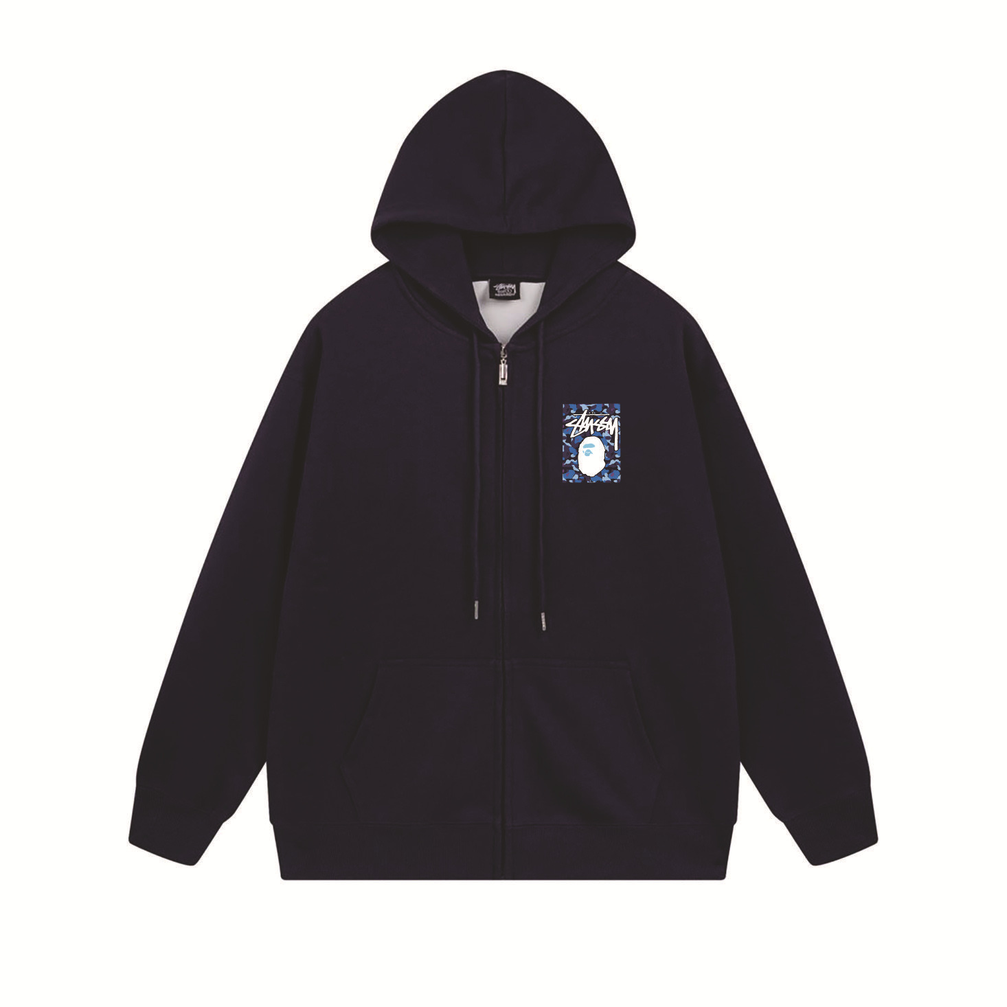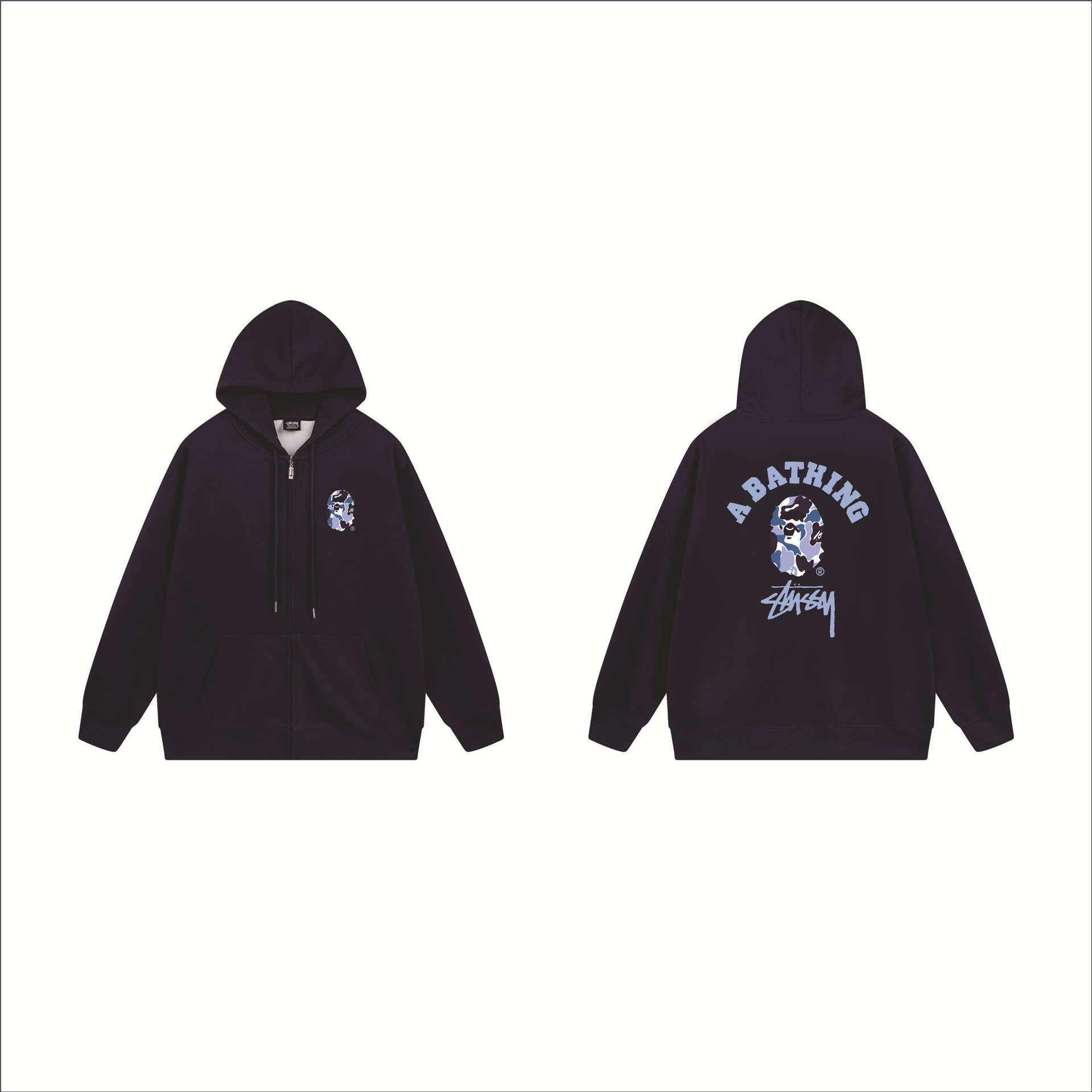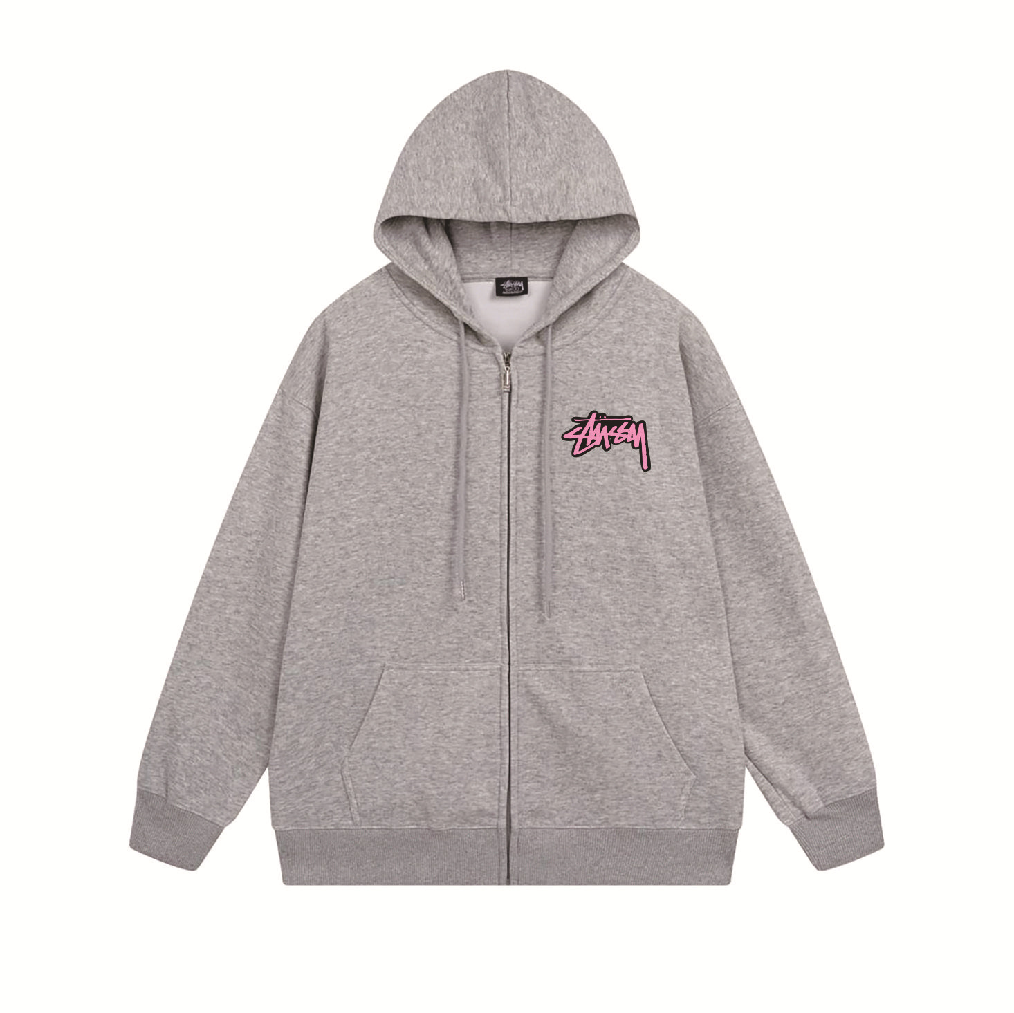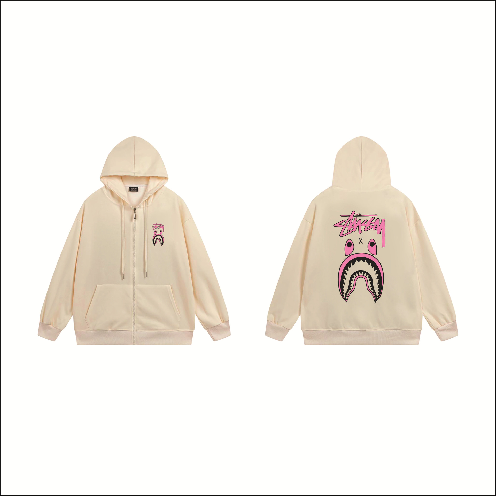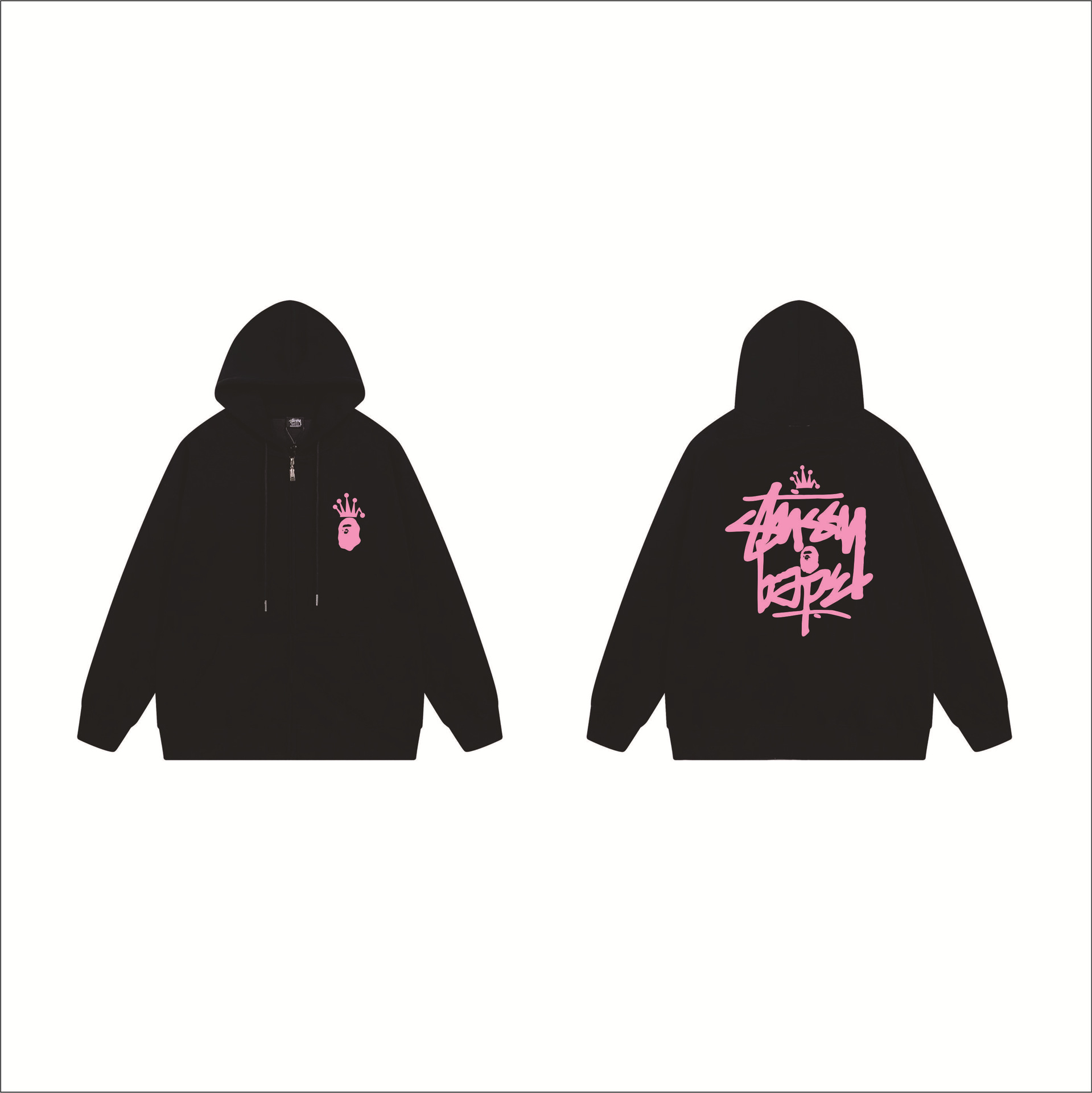크로스보더 STU 스투자 브랜드 문자 패턴 프린트 블랙 8자 지퍼 후드 티셔츠 가을/겨울 남녀공용스토어 가기