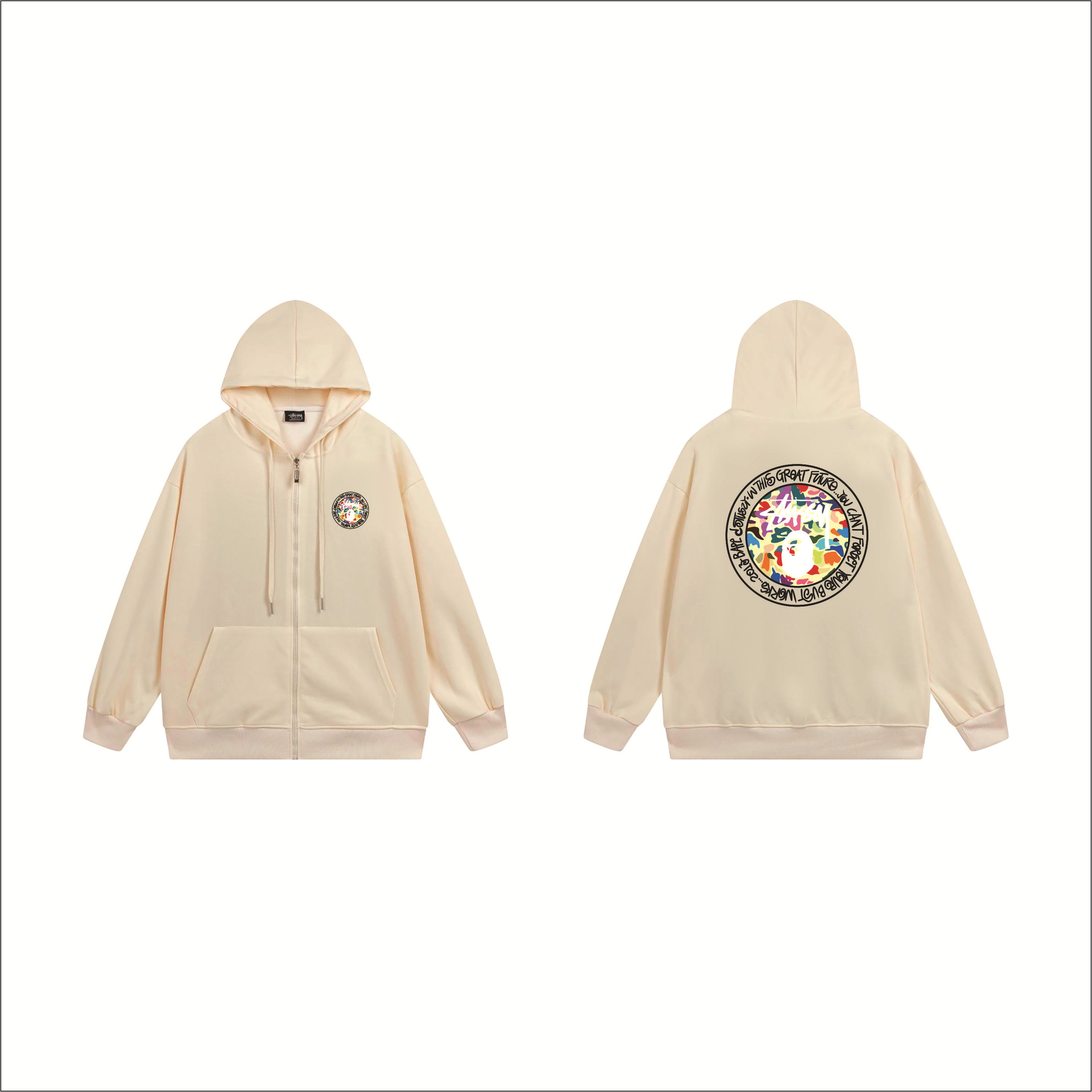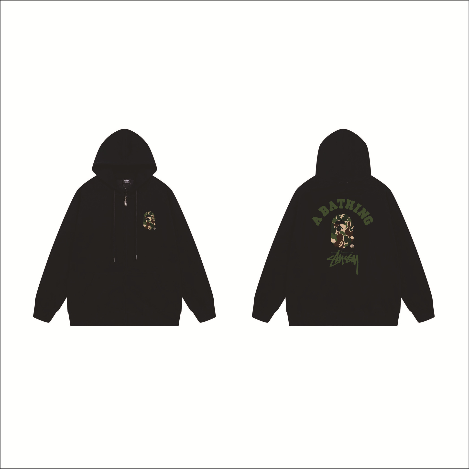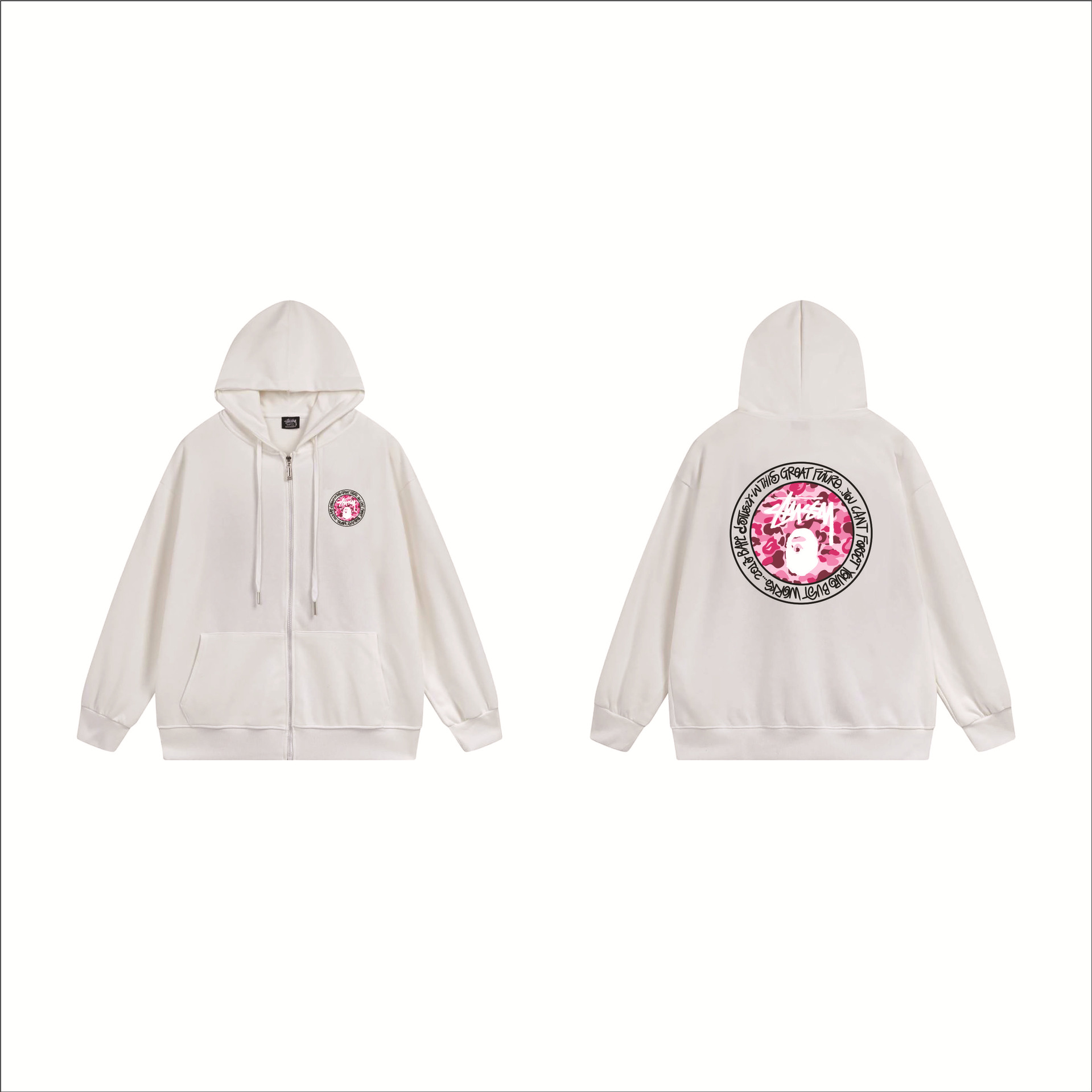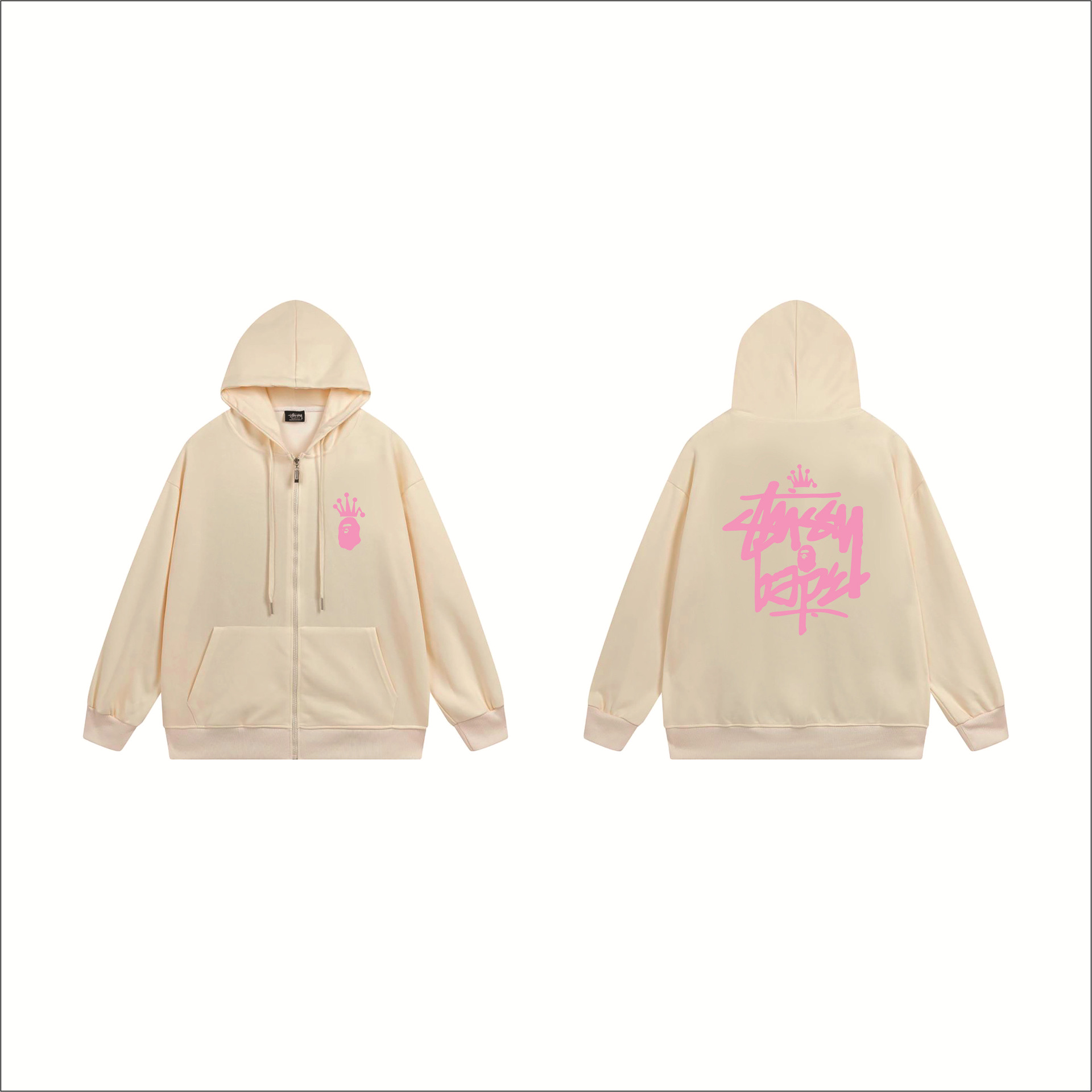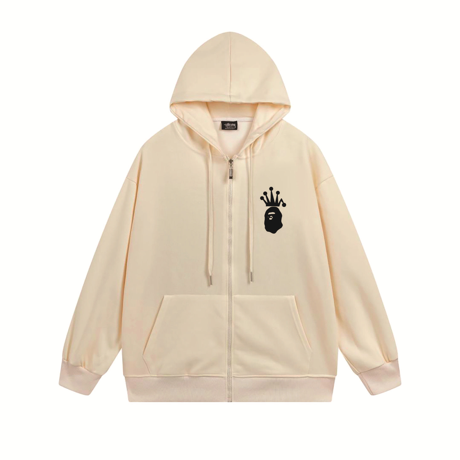 크로스보더 STU 스투자 브랜드 문자 패턴 프린트 블랙 8자 지퍼 후드 티셔츠 가을/겨울 남녀공용스토어 가기