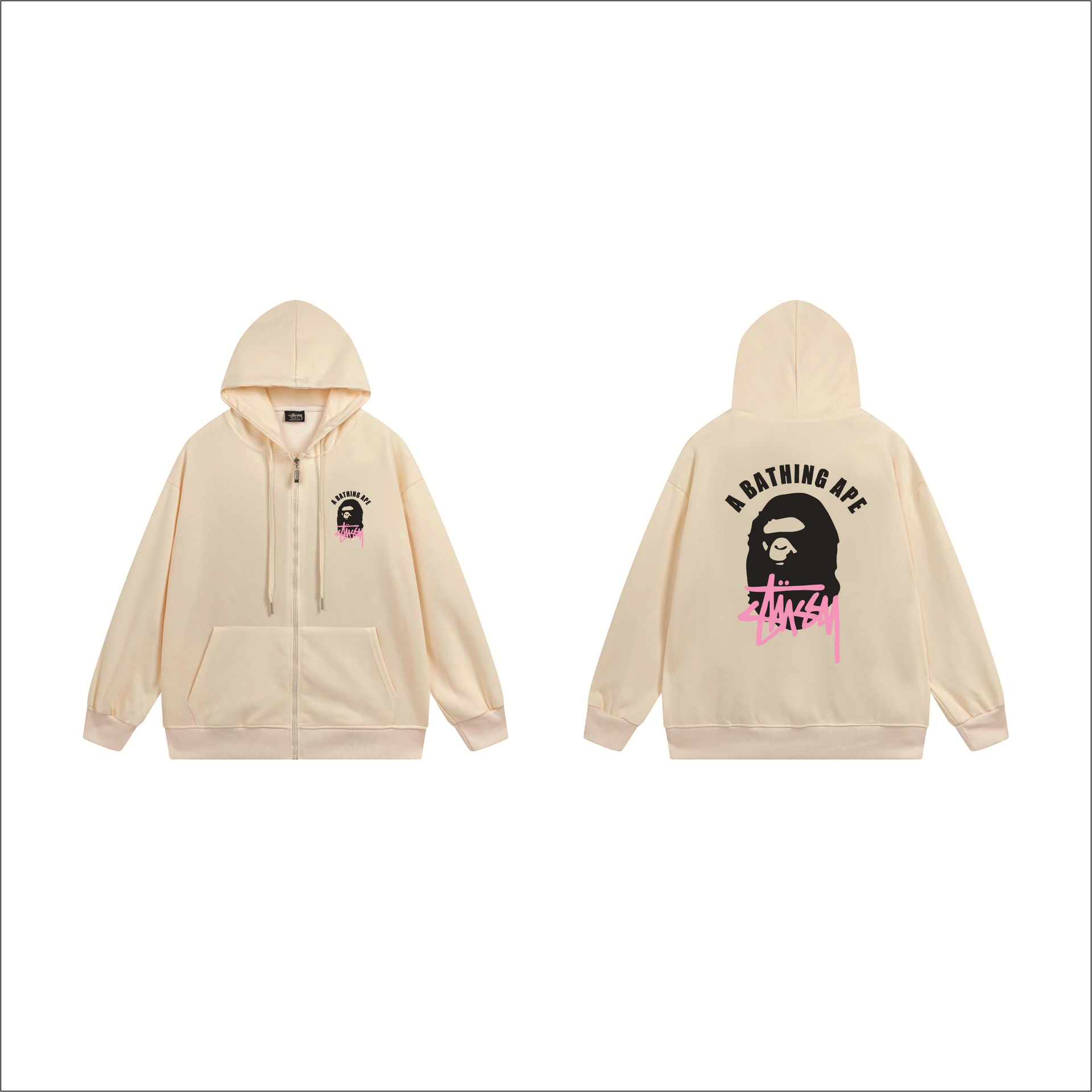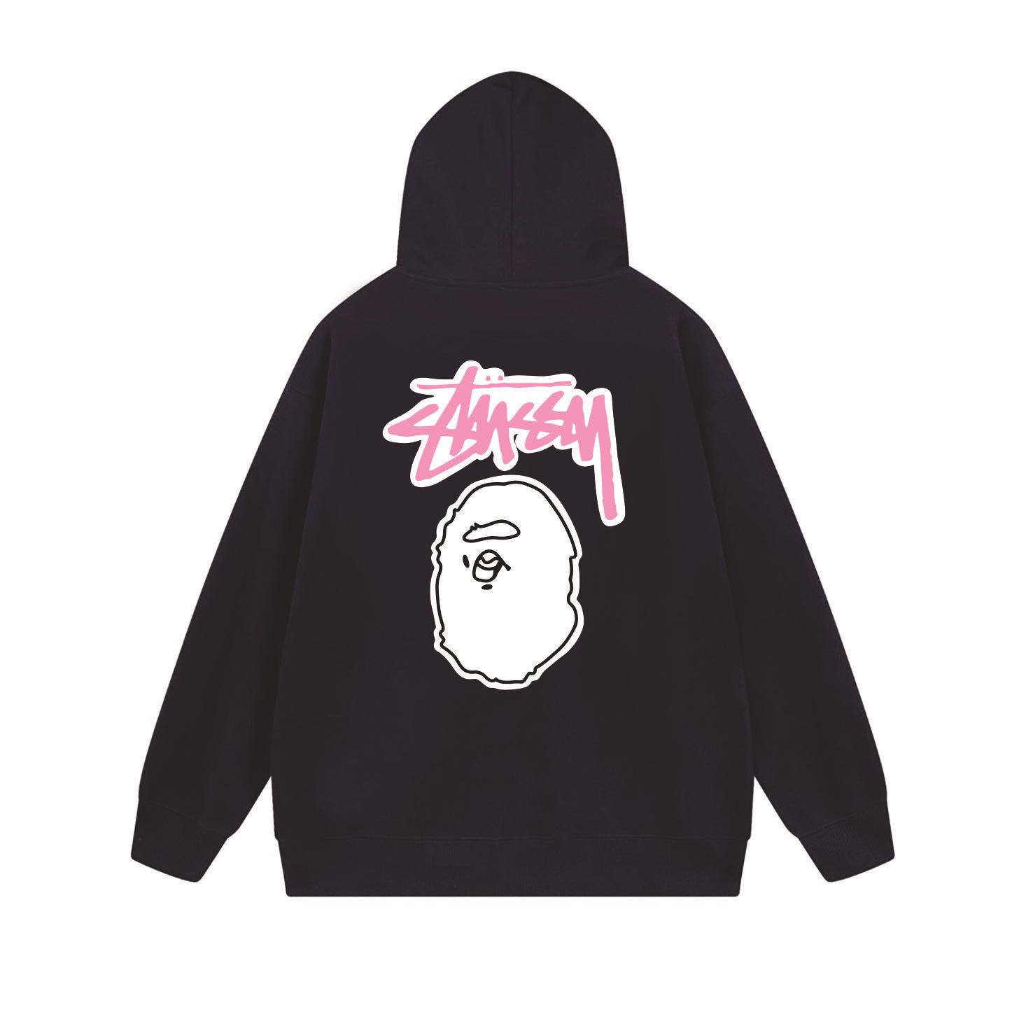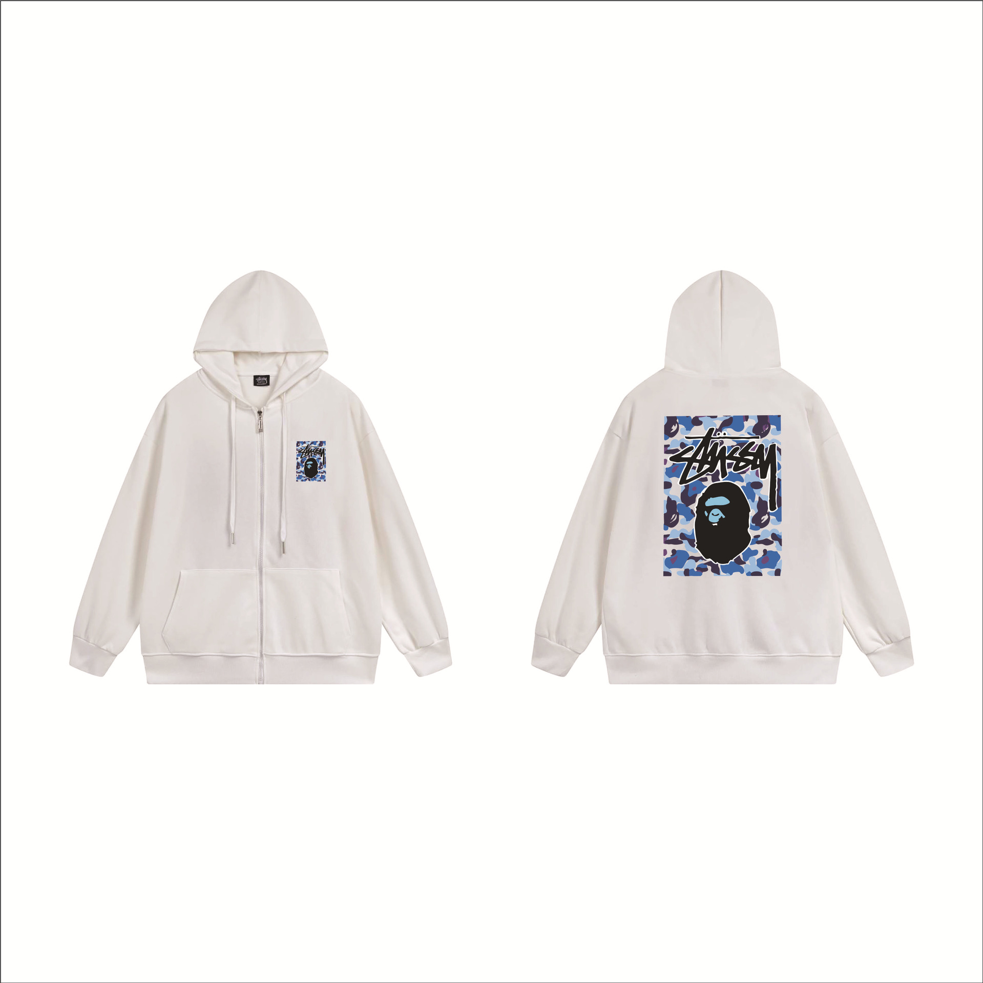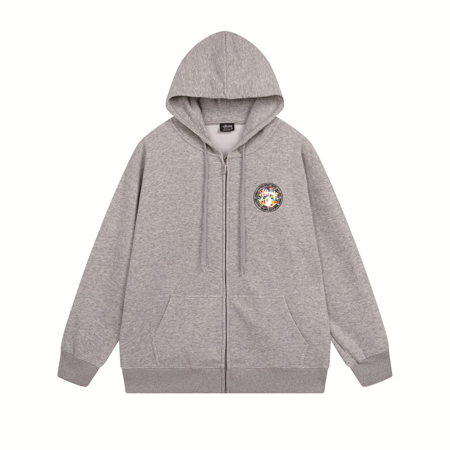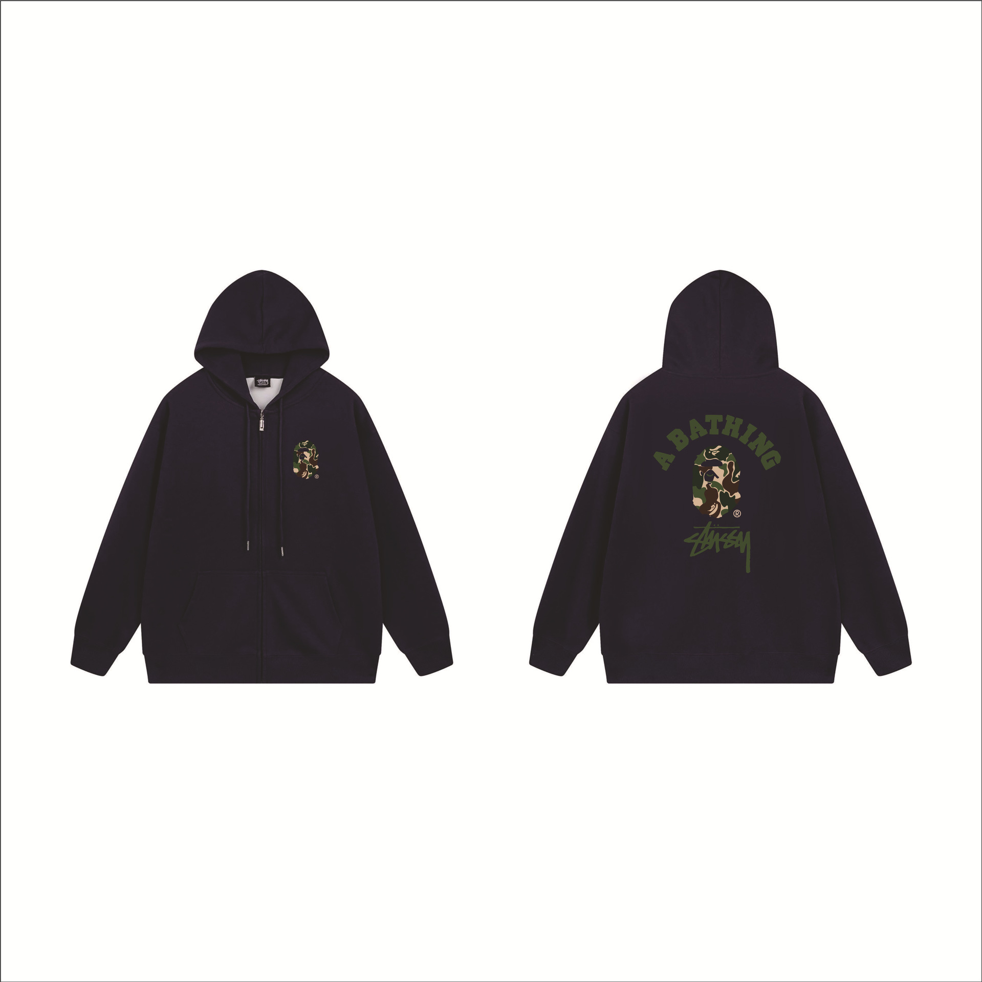 크로스보더 STU 스투자 브랜드 문자 패턴 프린트 블랙 8자 지퍼 후드 티셔츠 가을/겨울 남녀공용스토어 가기