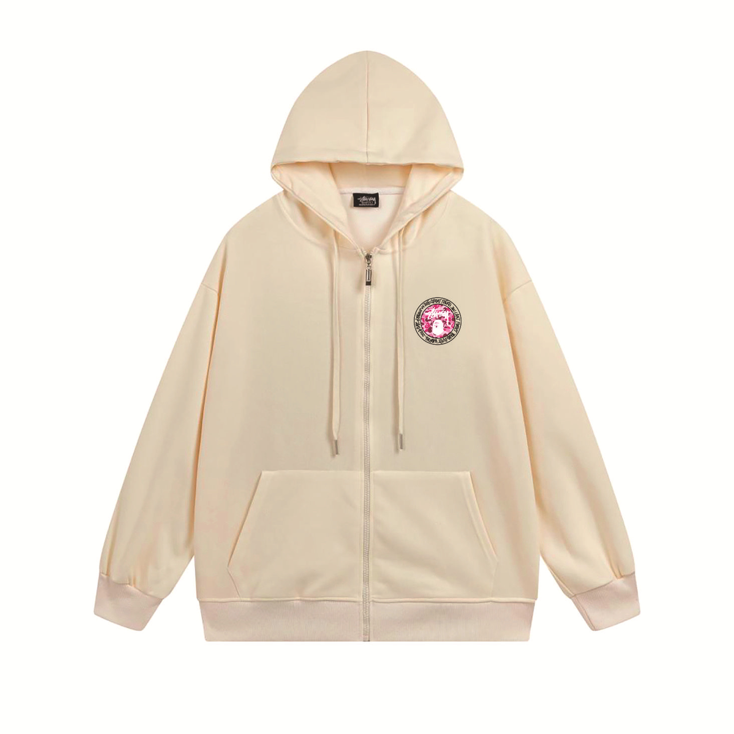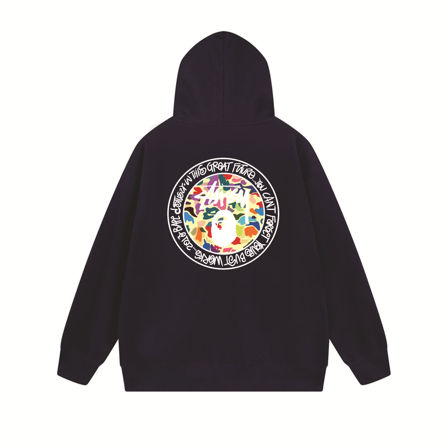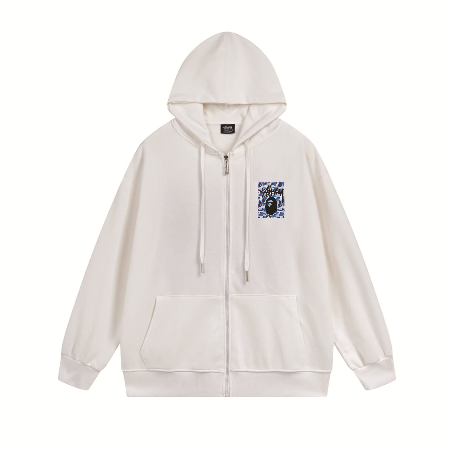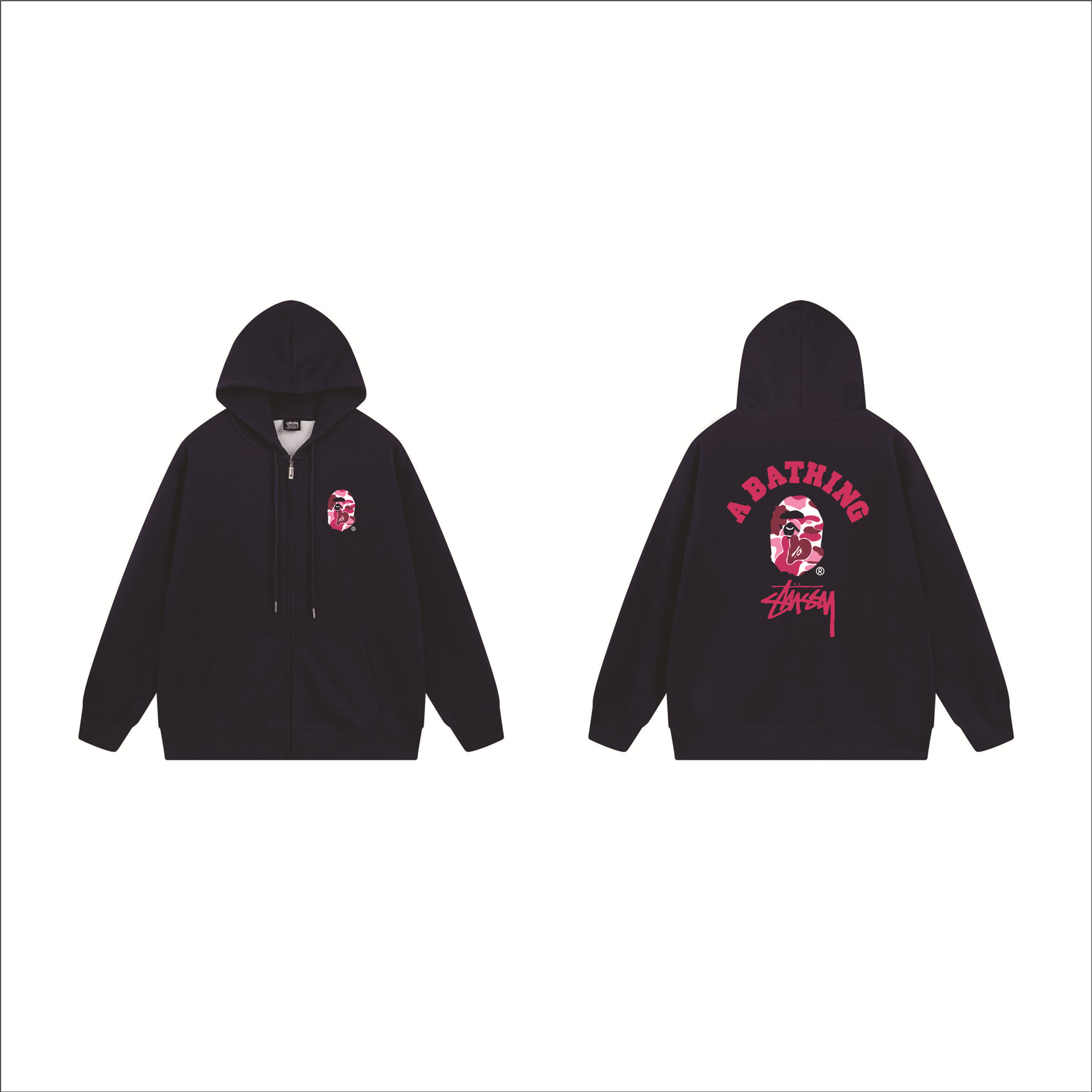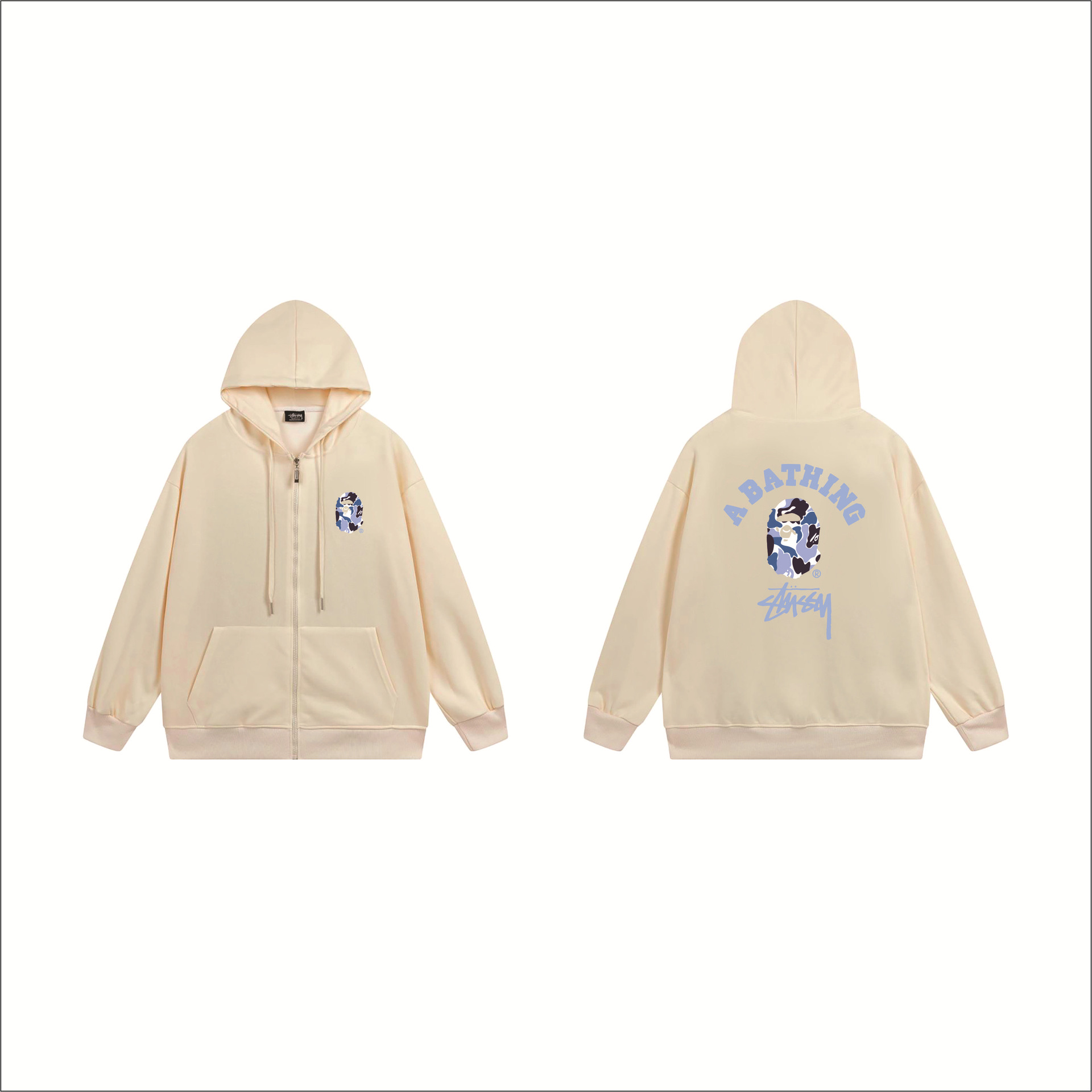 크로스보더 STU 스투자 브랜드 문자 패턴 프린트 블랙 8자 지퍼 후드 티셔츠 가을/겨울 남녀공용스토어 가기