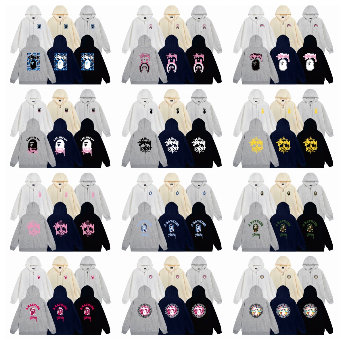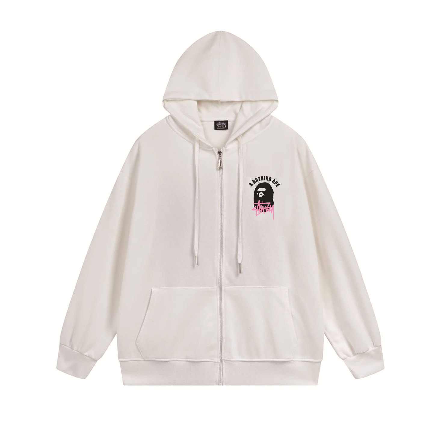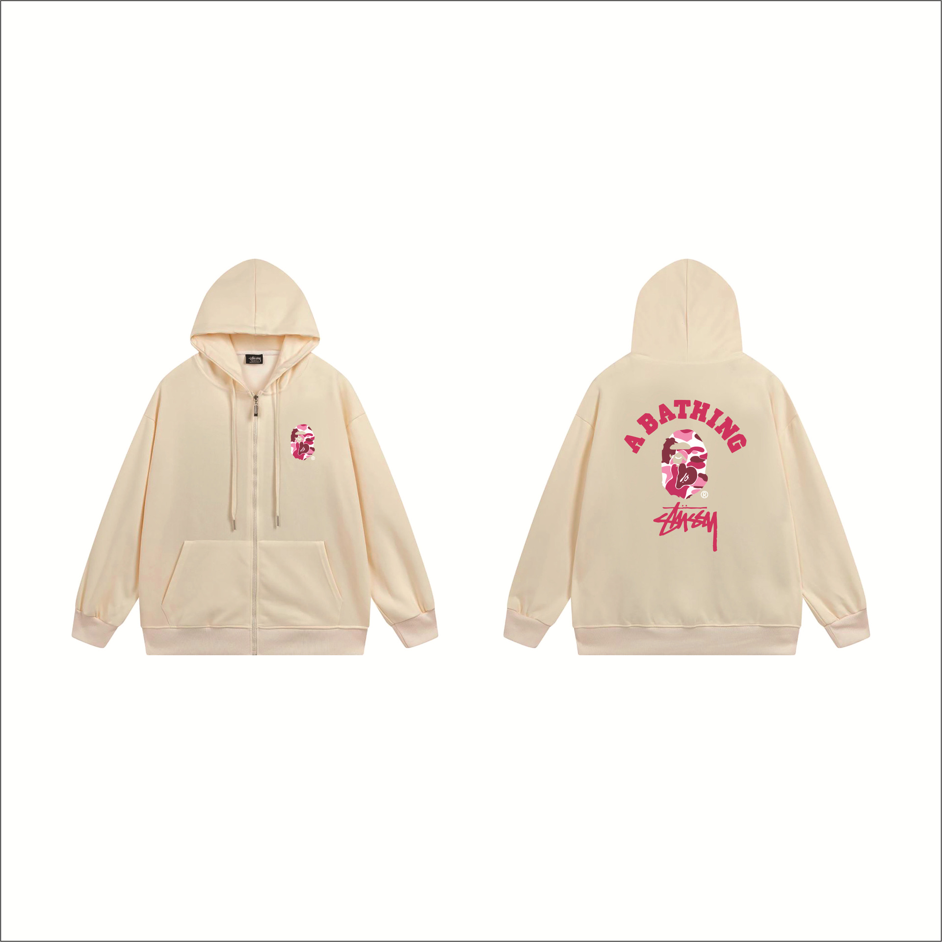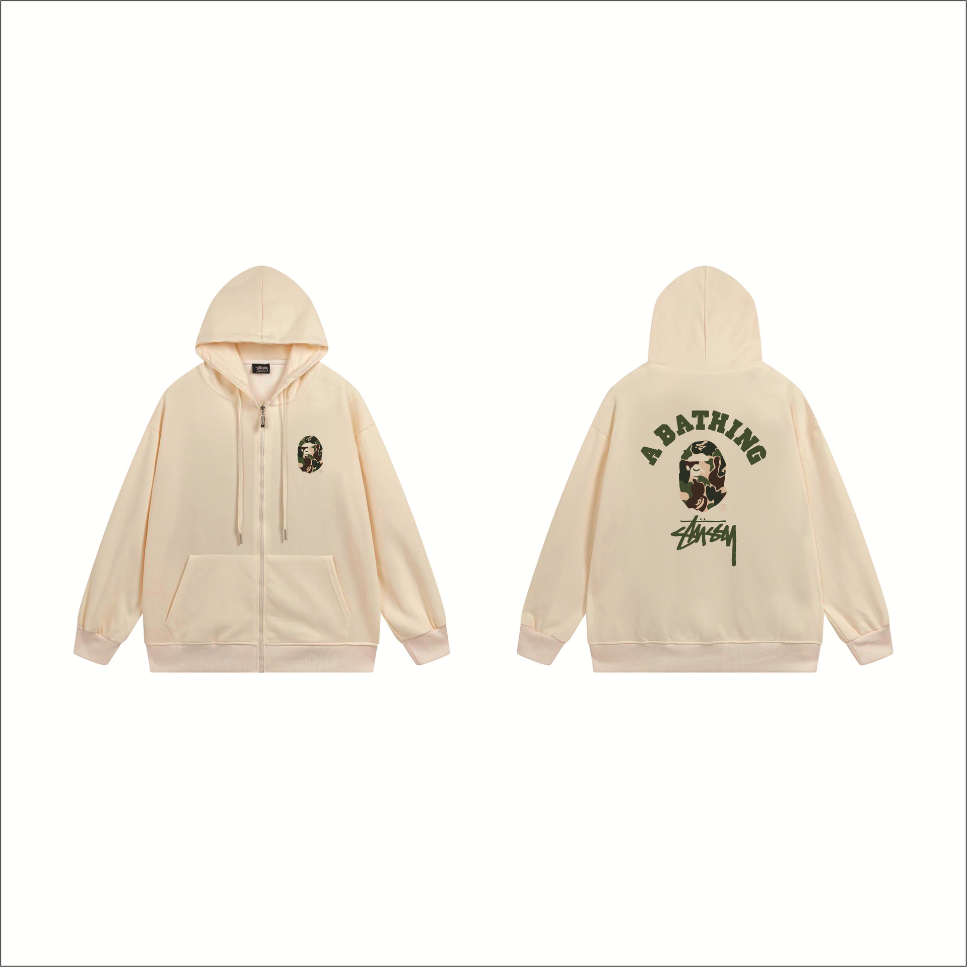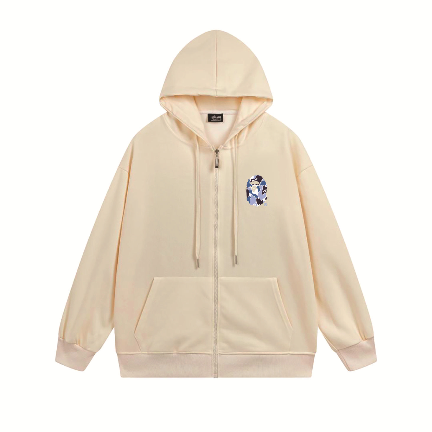 크로스보더 STU 스투자 브랜드 문자 패턴 프린트 블랙 8자 지퍼 후드 티셔츠 가을/겨울 남녀공용스토어 가기