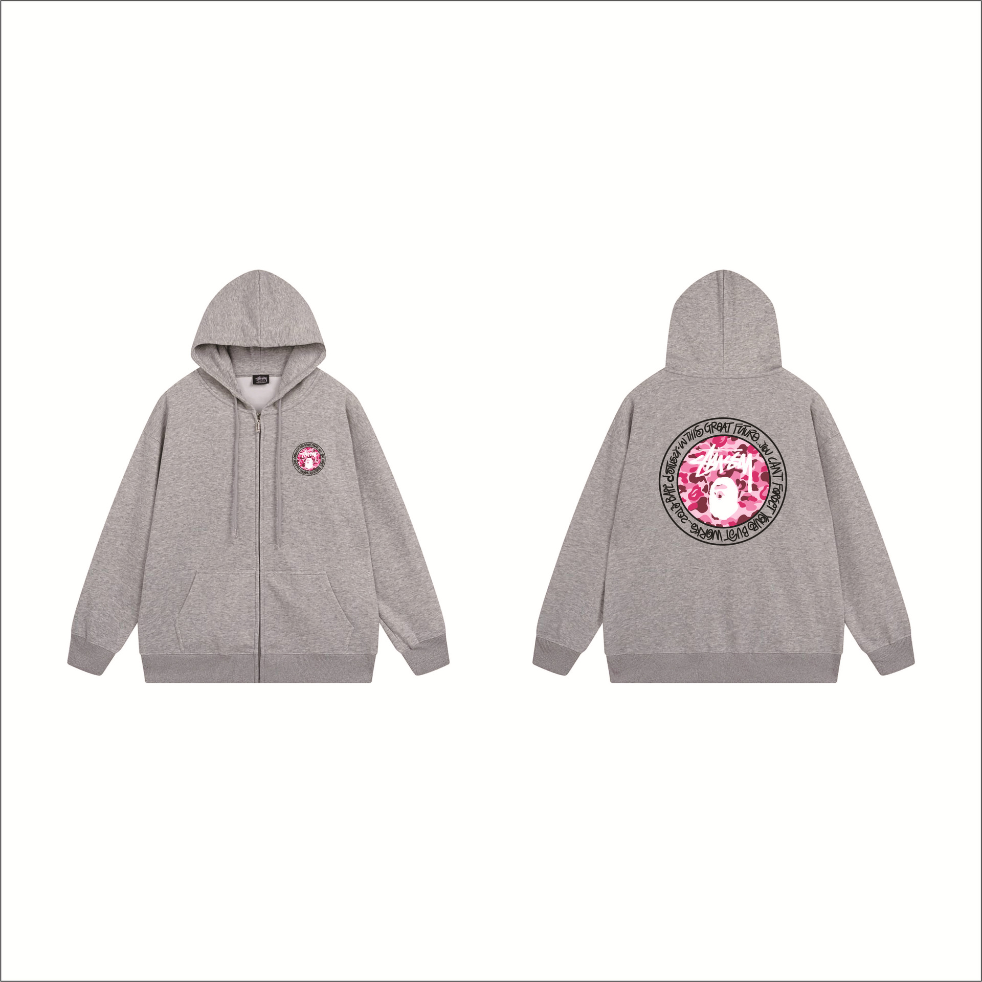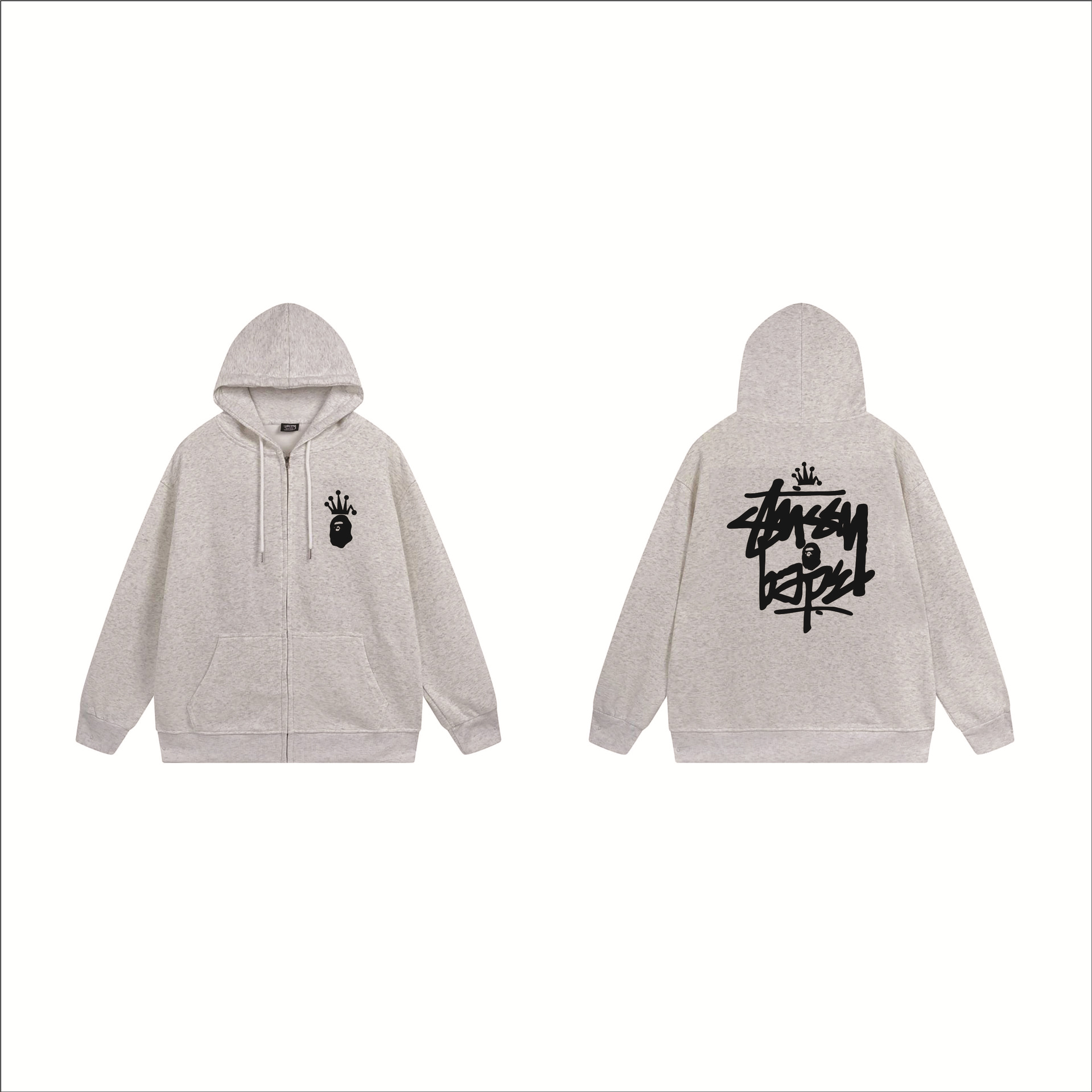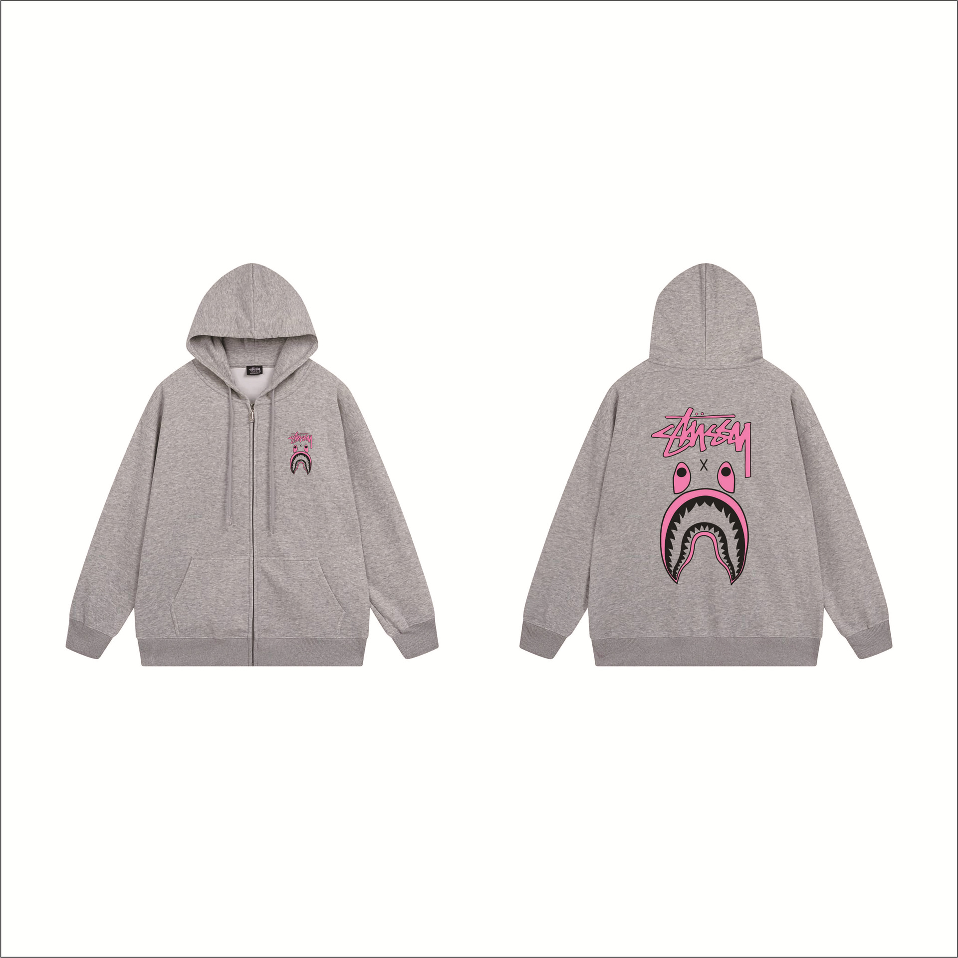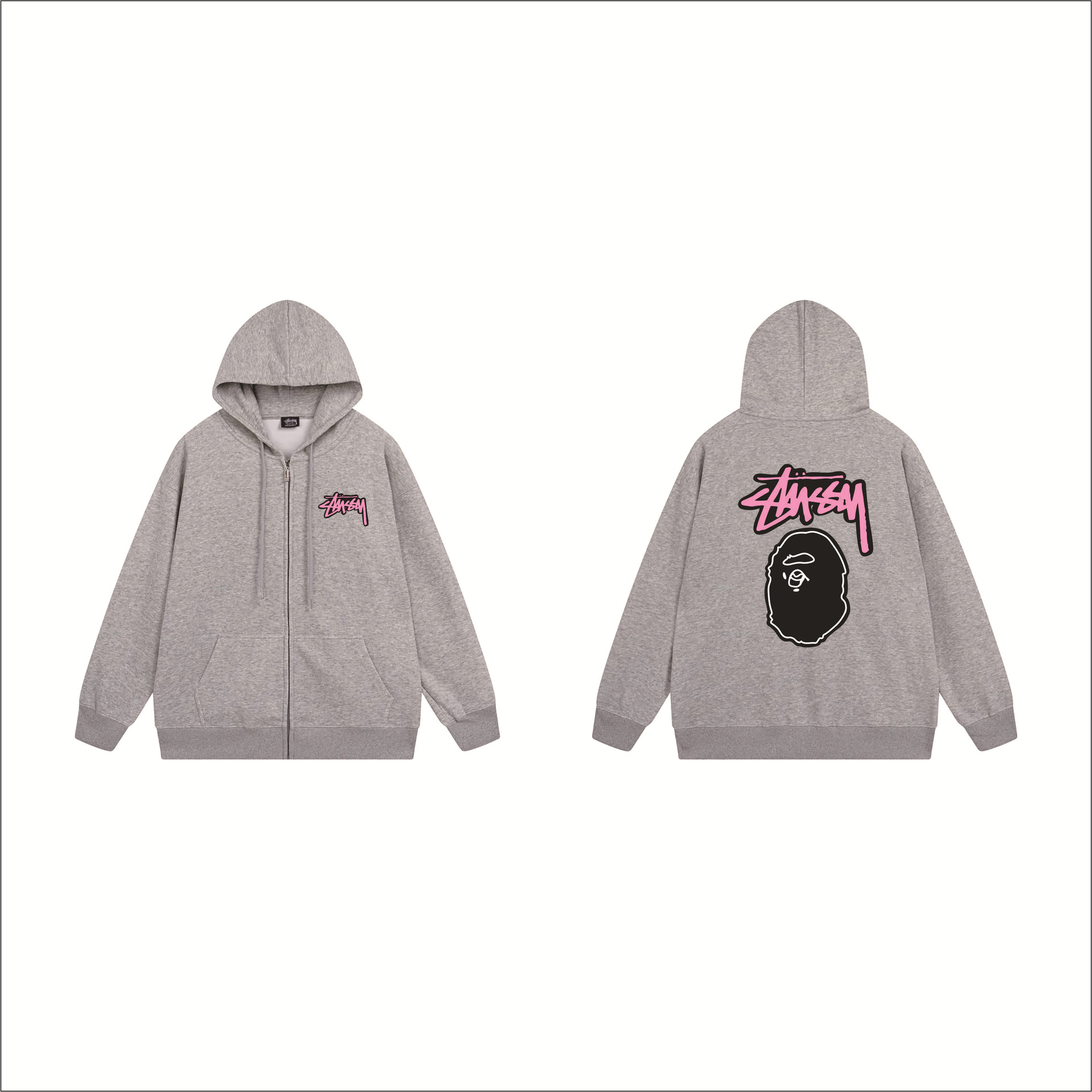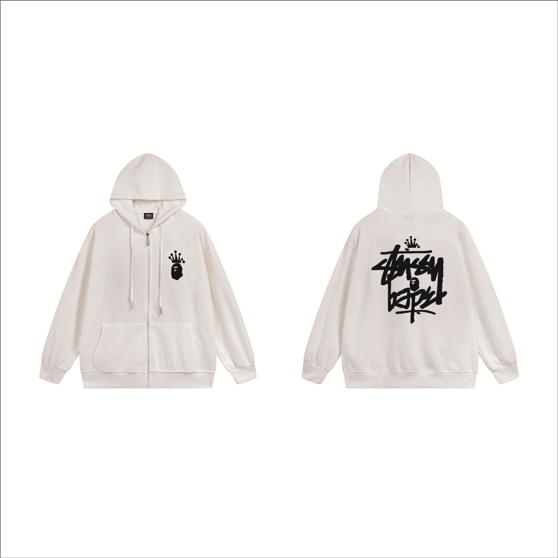 크로스보더 STU 스투자 브랜드 문자 패턴 프린트 블랙 8자 지퍼 후드 티셔츠 가을/겨울 남녀공용