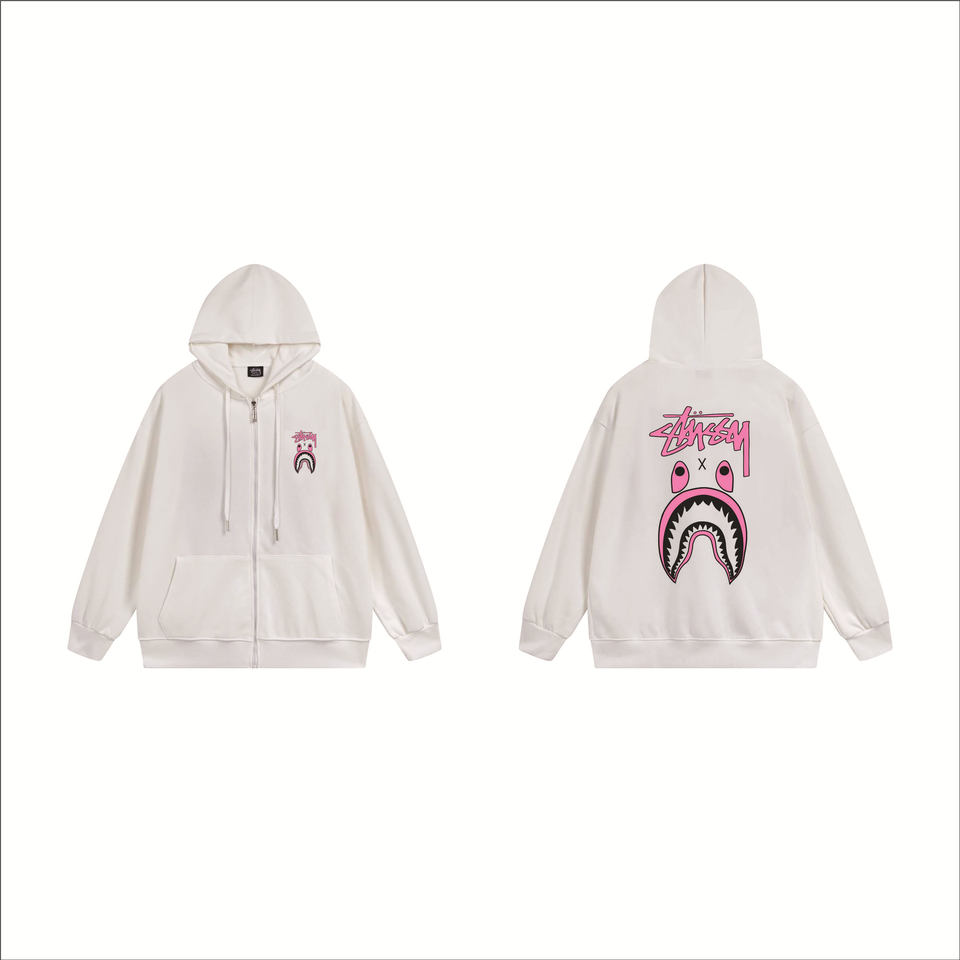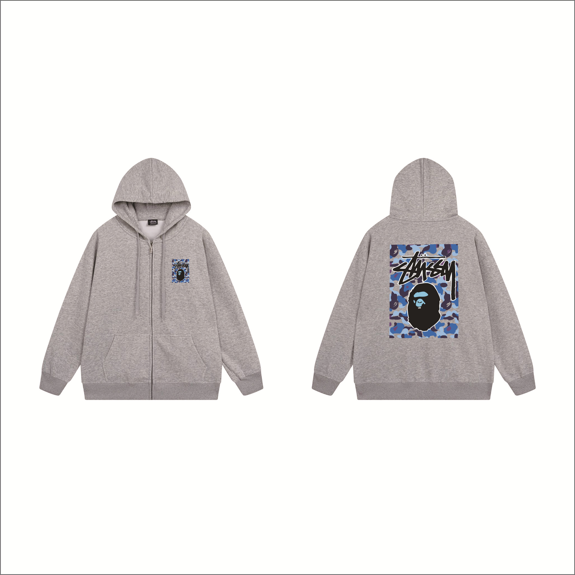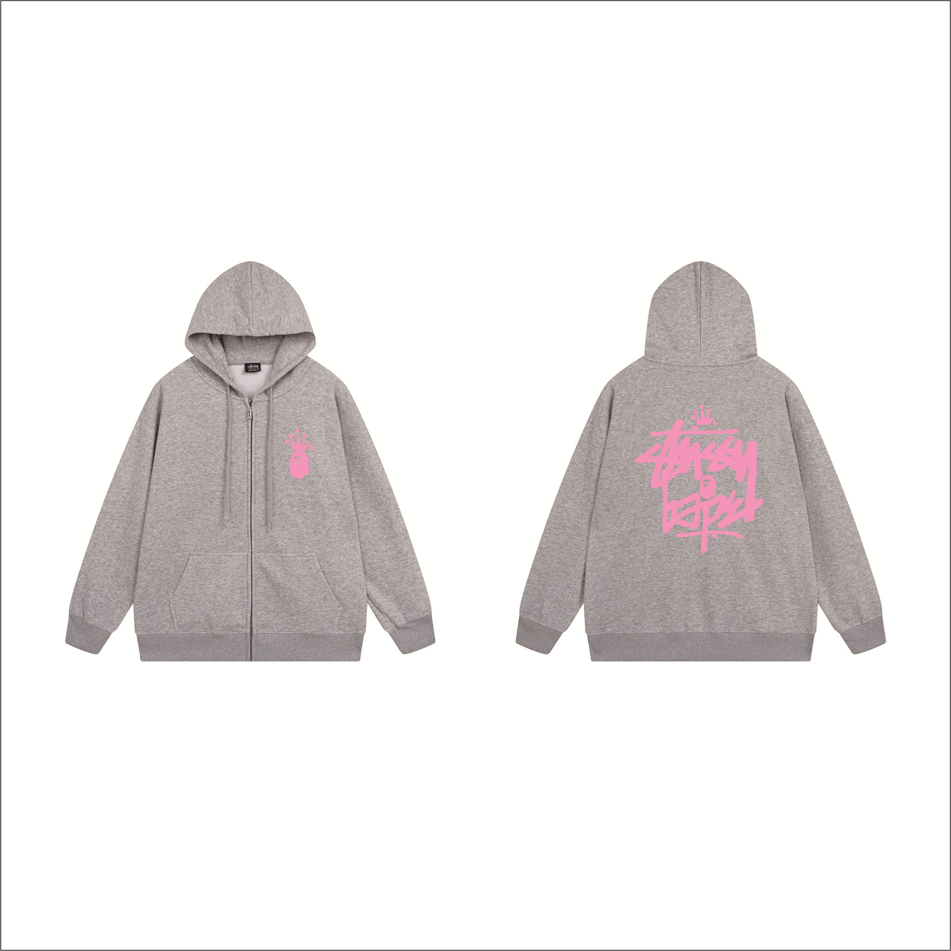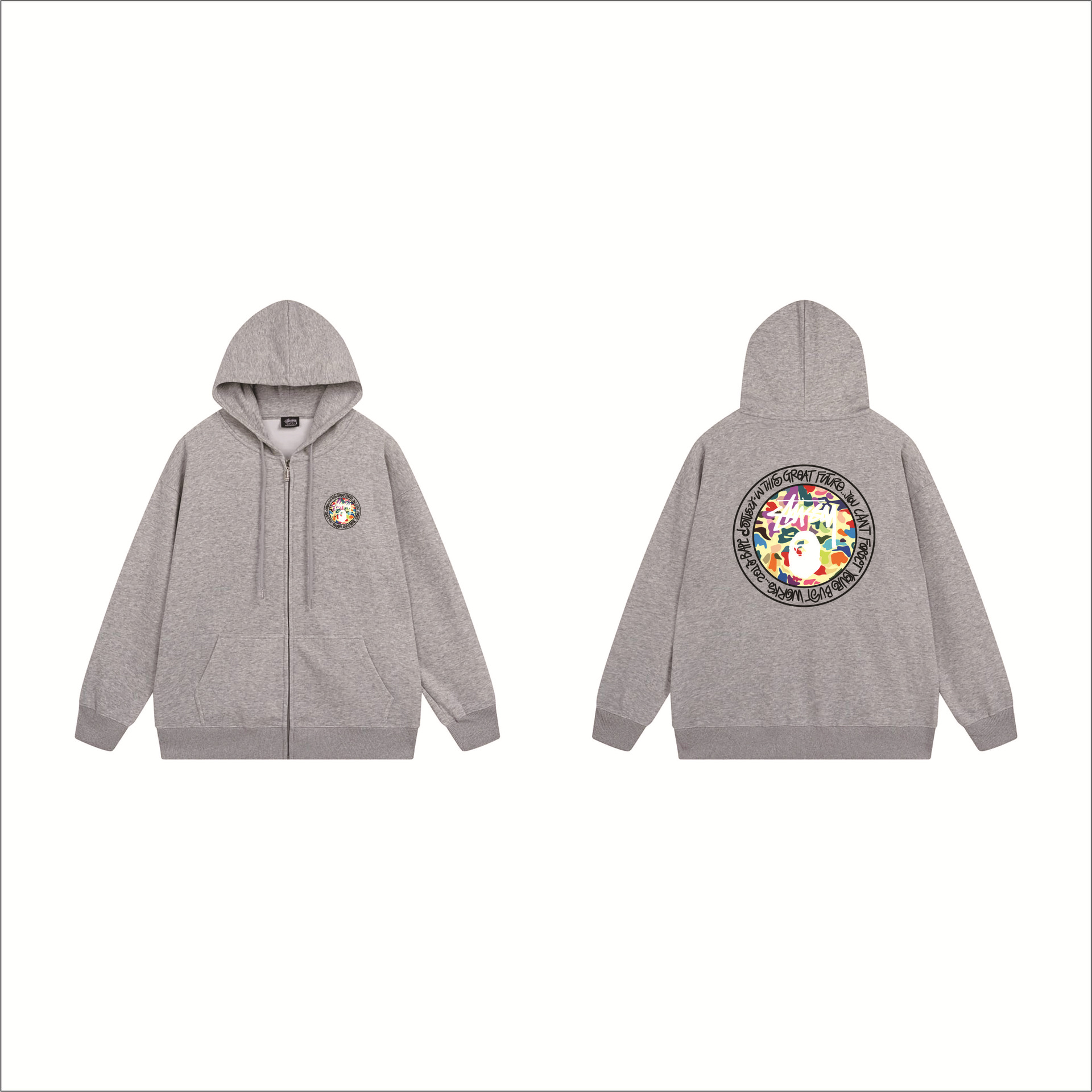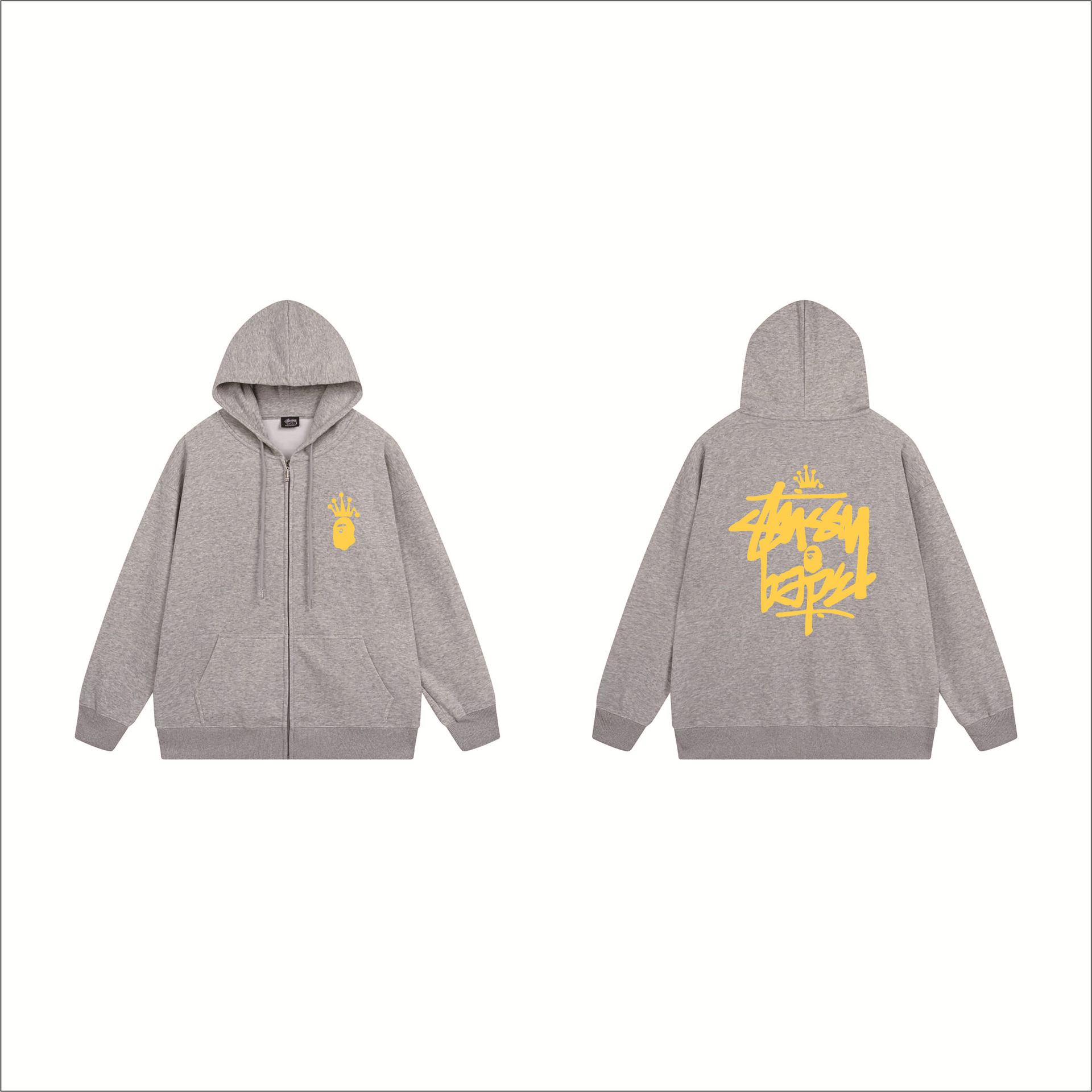 크로스보더 STU 스투자 브랜드 문자 패턴 프린트 블랙 8자 지퍼 후드 티셔츠 가을/겨울 남녀공용